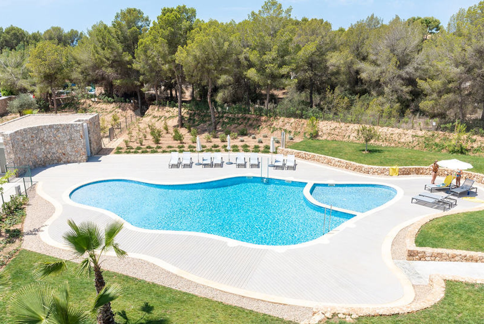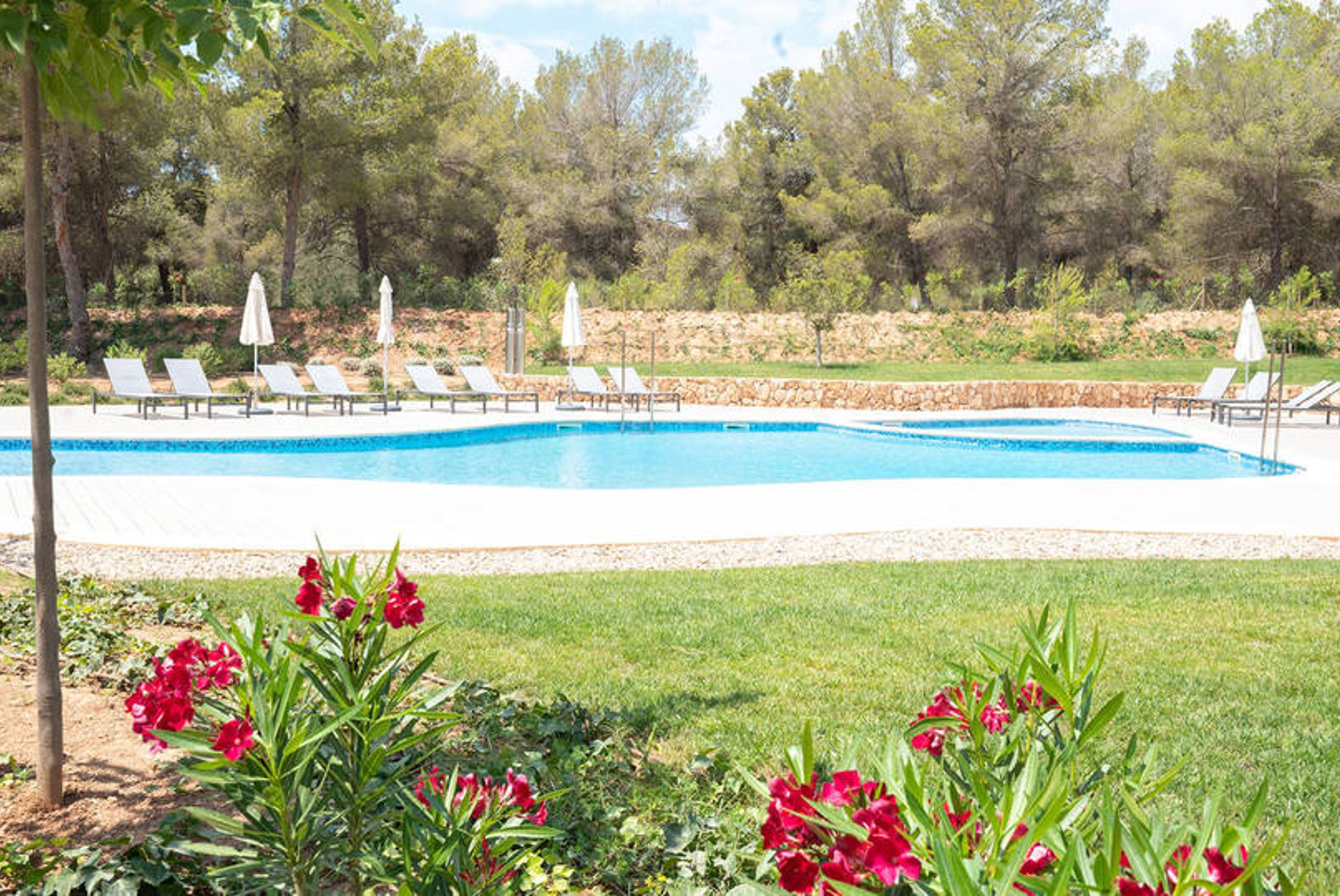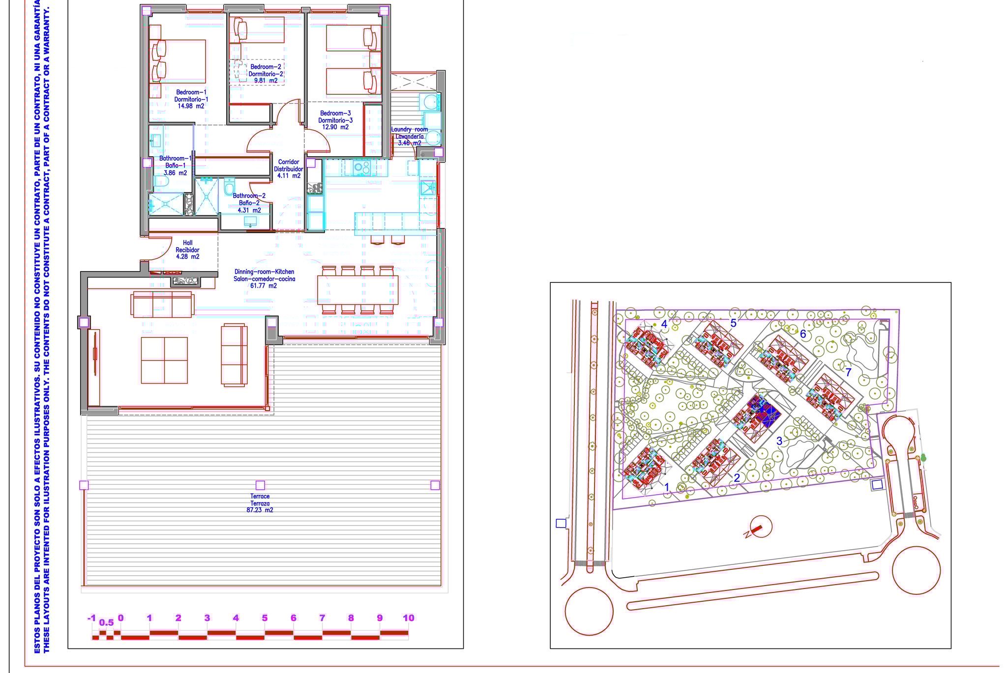 Bostaden är rymlig, ljus och har en boyta på 122 m2 som består av 3 sovrum, 2 badrum, varav ett en suite, ett fullt utrustat kök samt ett väldigt stort vardagsrum som har utgång till den härliga stora privata terrassen. Terrassen, som är på 87 m2, vätter mot sydväst och erbjuder sol i stort sett hela dagen. Det finns även en täckt del av terrassen där man har skugga hela dagen . På området finns två gemensamma pooler och en härlig stor gemensam trädgård. I priset ingår en garageplats och ett förrådsutrymme. Utmärkt val av bostad för den som vill ha tillgång till flertalet golfbanor, vackra stränder och exklusiva hamnar. Palma ligger bara 20 minuter bort med bil.