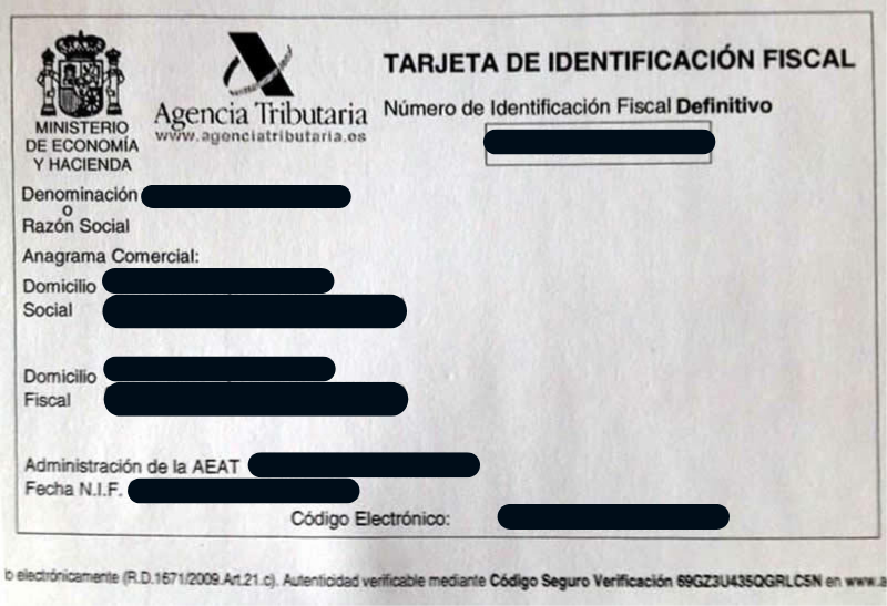 Da ein Unternehmen vor dem Gesetz eine eigenständige juristische Person ist, benötigen Sie einen spezifischen Steueridentifikationscode (CIF). Dieser (CIF) code ist die formelle Registrierung für das Unternehmenssteuersystem in Spanien und ist auch die Umsatzsteuer-Identifikationsnummer. Mit dieser Steuer-ID können Sie mit Ihrem spanischen Unternehmen überall in der EU Geschäfte tätigen.