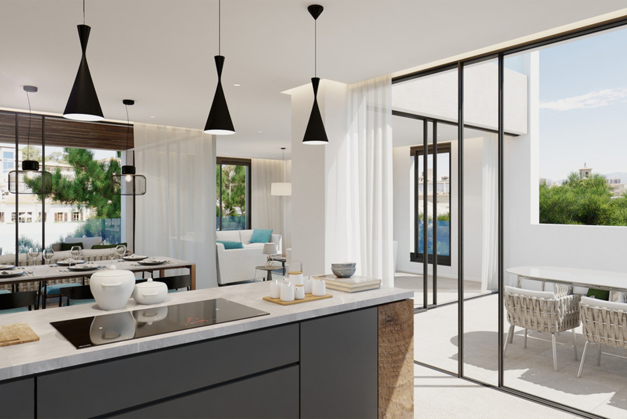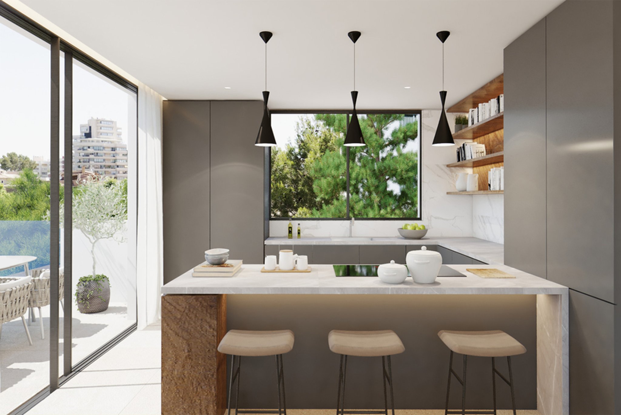 Dieses neue Bauprojekt, welches aus 7 hochwertigen Wohnungen besteht, wird in der Gegend Son Armadams in Palma erbaut. Die Location ist umgeben von wunderschönen Grünflächen und in der Nähe von allen Annehmlichkeiten und der Bucht von Palma. Ziel des Projekts war es, möglichst viel Tageslicht durch die großen raumhohen Fenster und Türen einzufangen. Die Terrassen ermöglichen es den Bewohnern, die meiste Zeit des Jahres draußen zu verbringen, da das Klima auf der Insel angenehm ist. Es wird einen schönen Gemeinschaftspool mit Sonnendeck geben.
