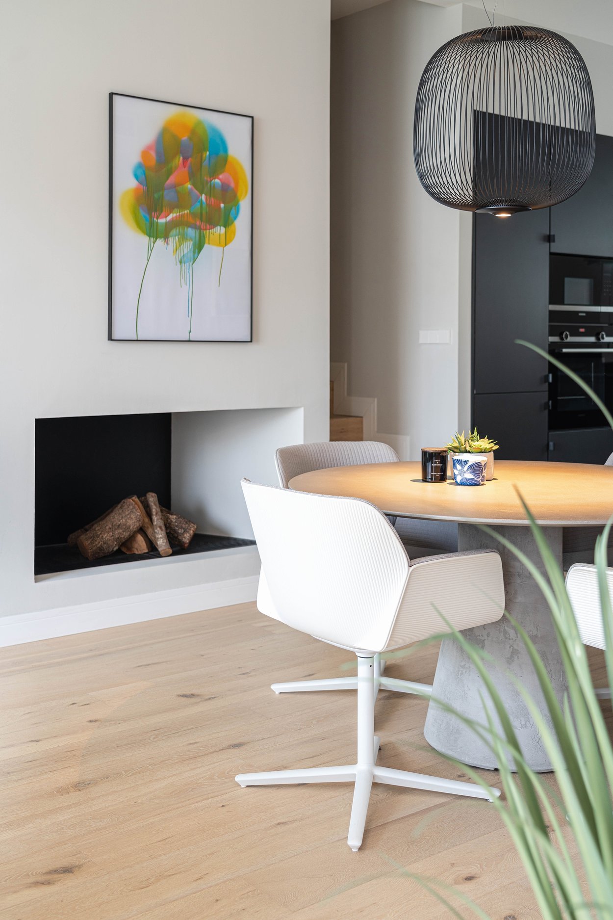 The apartment is spacious and modern, with a fully equipped kitchen in an open-plan layout connected to the living room with a fireplace. Large windows throughout the apartment allow plenty of natural light. On this floor, you will also find two double bedrooms, one with an en-suite bathroom.