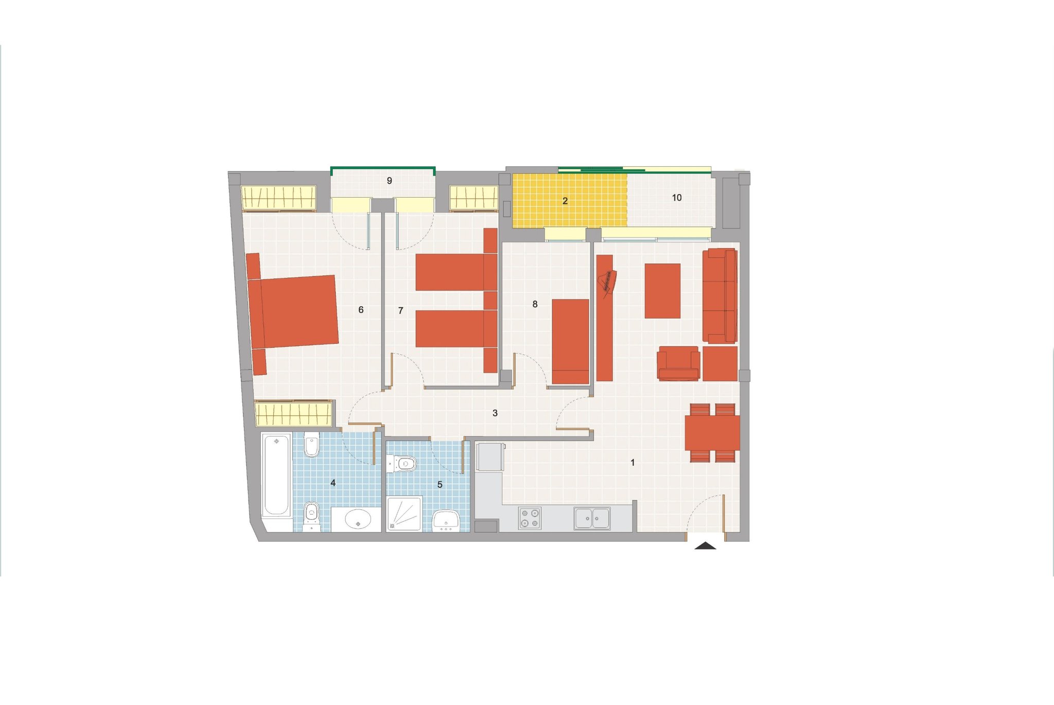 Geräumiges Appartement mit Pool, Parkplatz und Dachterrasse in der Nähe vom Strand