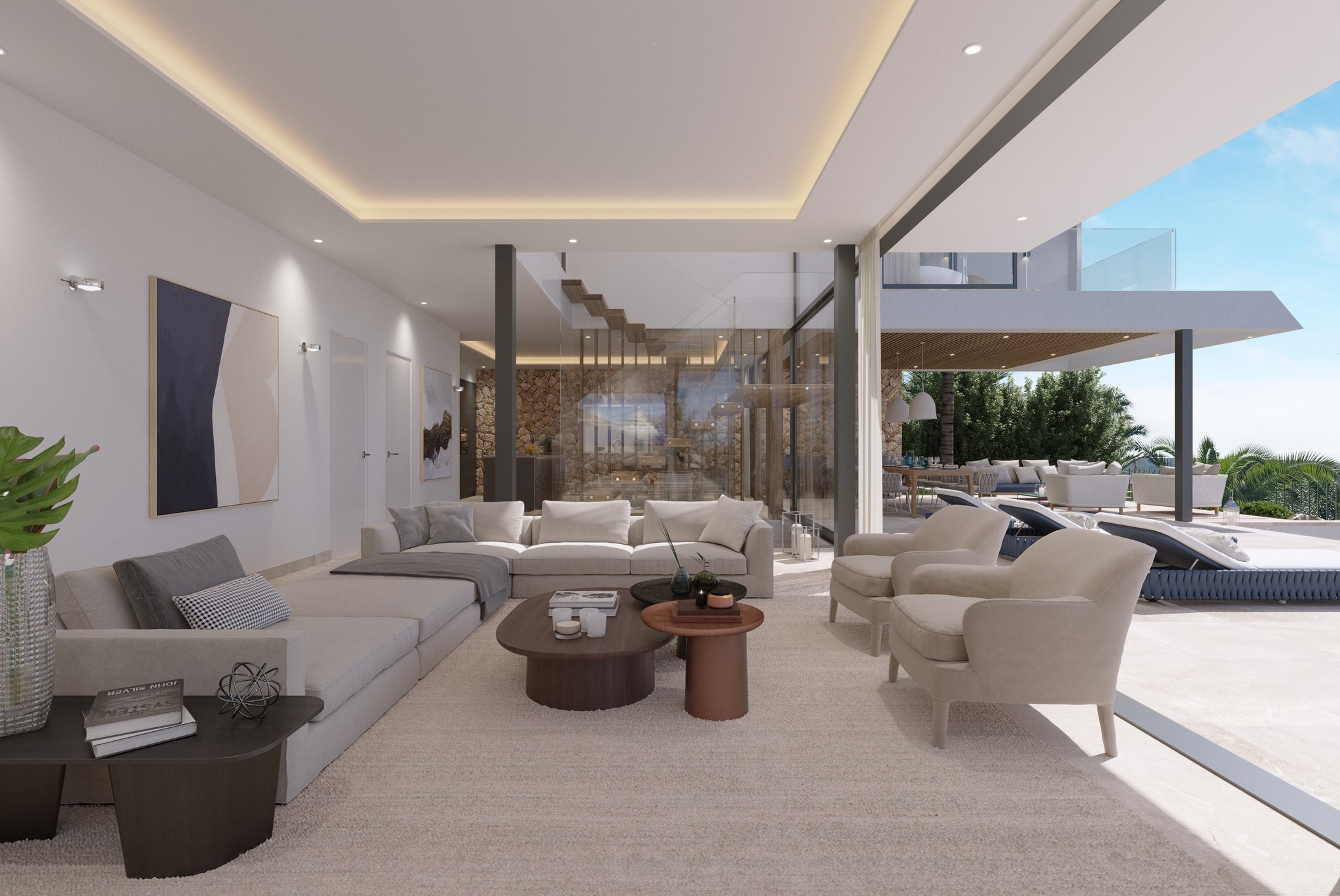 Denne supermoderne og eksklusive villa er i øjeblikket under opførelse og skal efter planen stå færdig i midten af 2026. Denne unikke bolig ligger i det prestigefyldte Nova Santa Ponsa og tilbyder en magisk panoramaudsigt over Middelhavet og en livsstil ud over det sædvanlige. Her bor du tæt på den sofistikerede lystbådehavn Port Adriano, Santa Ponsa Country Club og tre af øens mest eksklusive golfbaner.