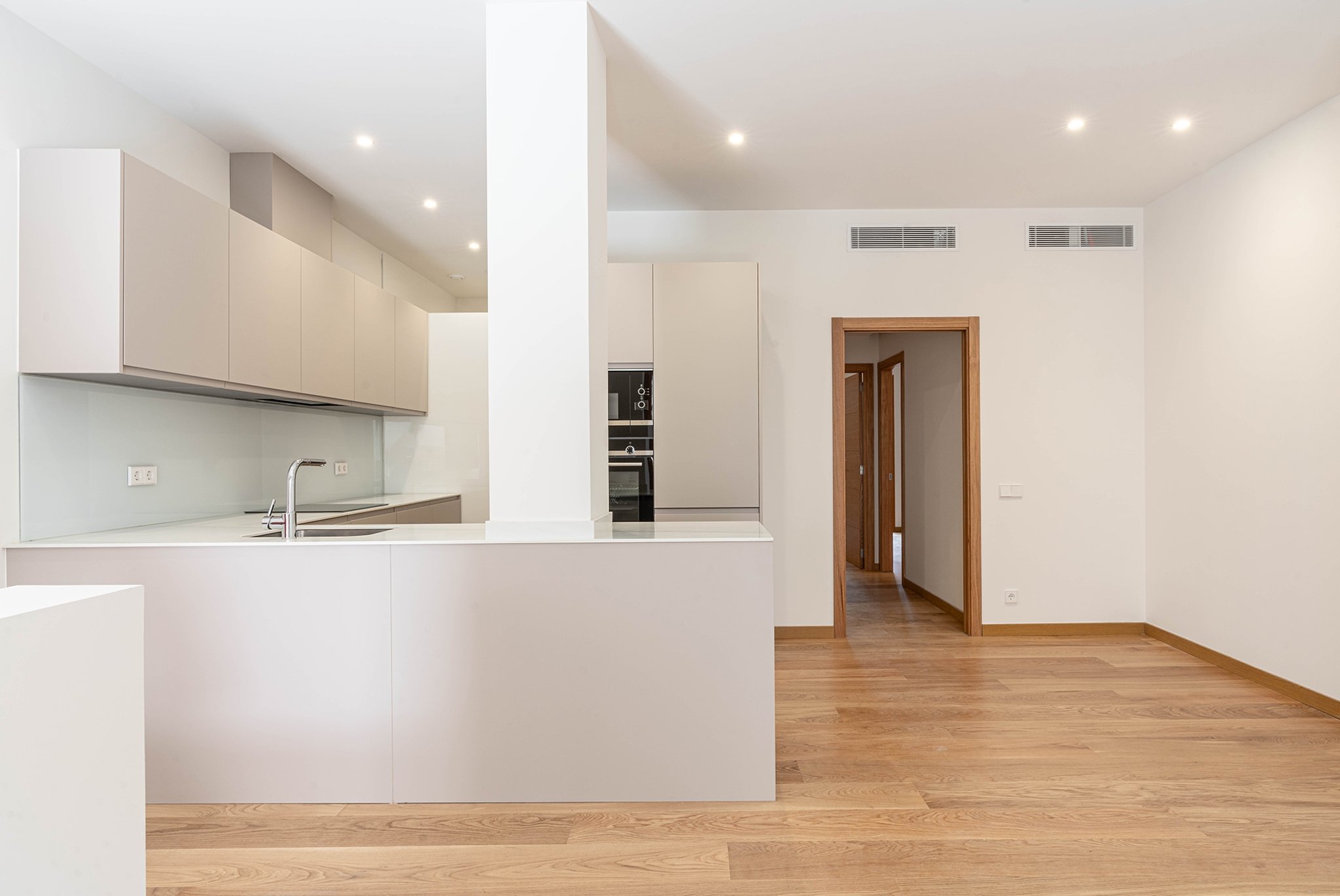 This ground floor apartment has its own entrance from the street and will have a living area of 95 m2 divided into 3 bedrooms and 2 bathrooms, one of which is en-suite. The living room and kitchen have  an open floor plan concept.