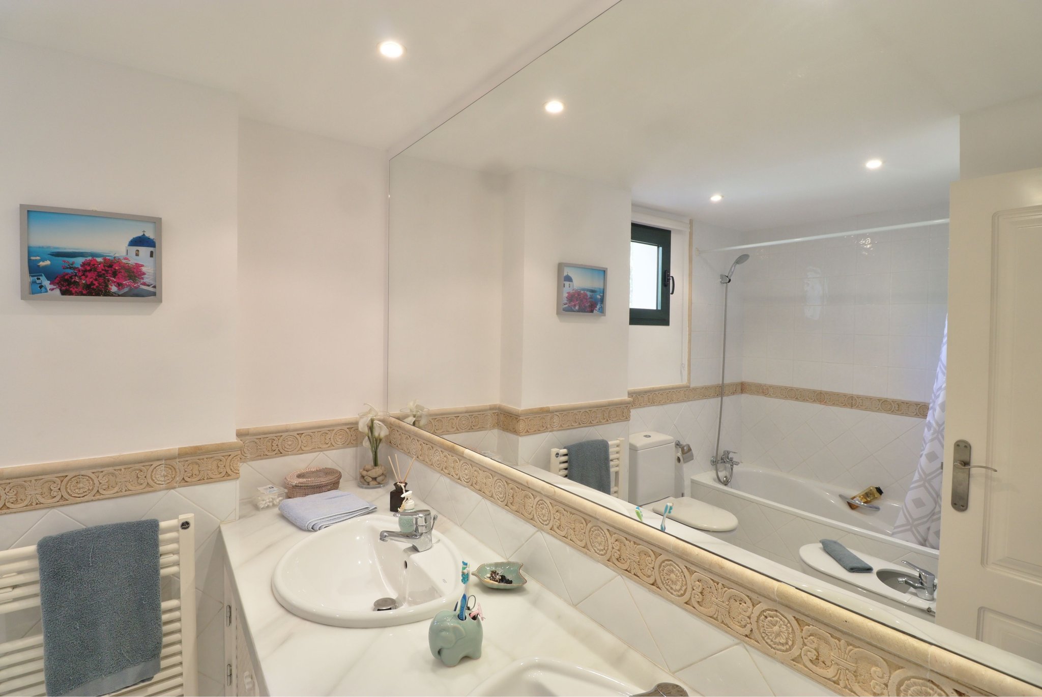 Denne penthouse har en fantastisk beliggenhed lige ved golfbanen og tilbyder et boligareal på 208 m² med en 30 m² stor terrasse samt en yderligere generøs privat tagterrasse. Der er tre rummelige soveværelser, et med havudsigt, og tre badeværelser. Ejendommen har et fuldt udstyret køkken og et åbent opholds- og spiseområde, der skaber en lys og luftig atmosfære.