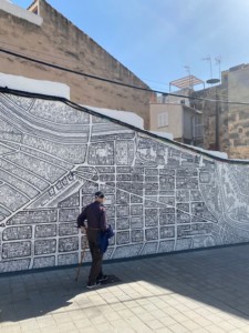 Mallorcan artist Joan Aguiló often reflects childhood memories from his summers in Mallorca. He is the artist behind the almost 100 m2 large wall in the Mercat del l’Olivar, which pays homage to Mallorcan farmers and fishermen who make it possible to consume local produce. Other famous creations are for example the large mural at the train station in Palma of a child with a train, the large wall at the Hotel Whala in Arenal of a typical mallorquin afternoon snack in the summer.
