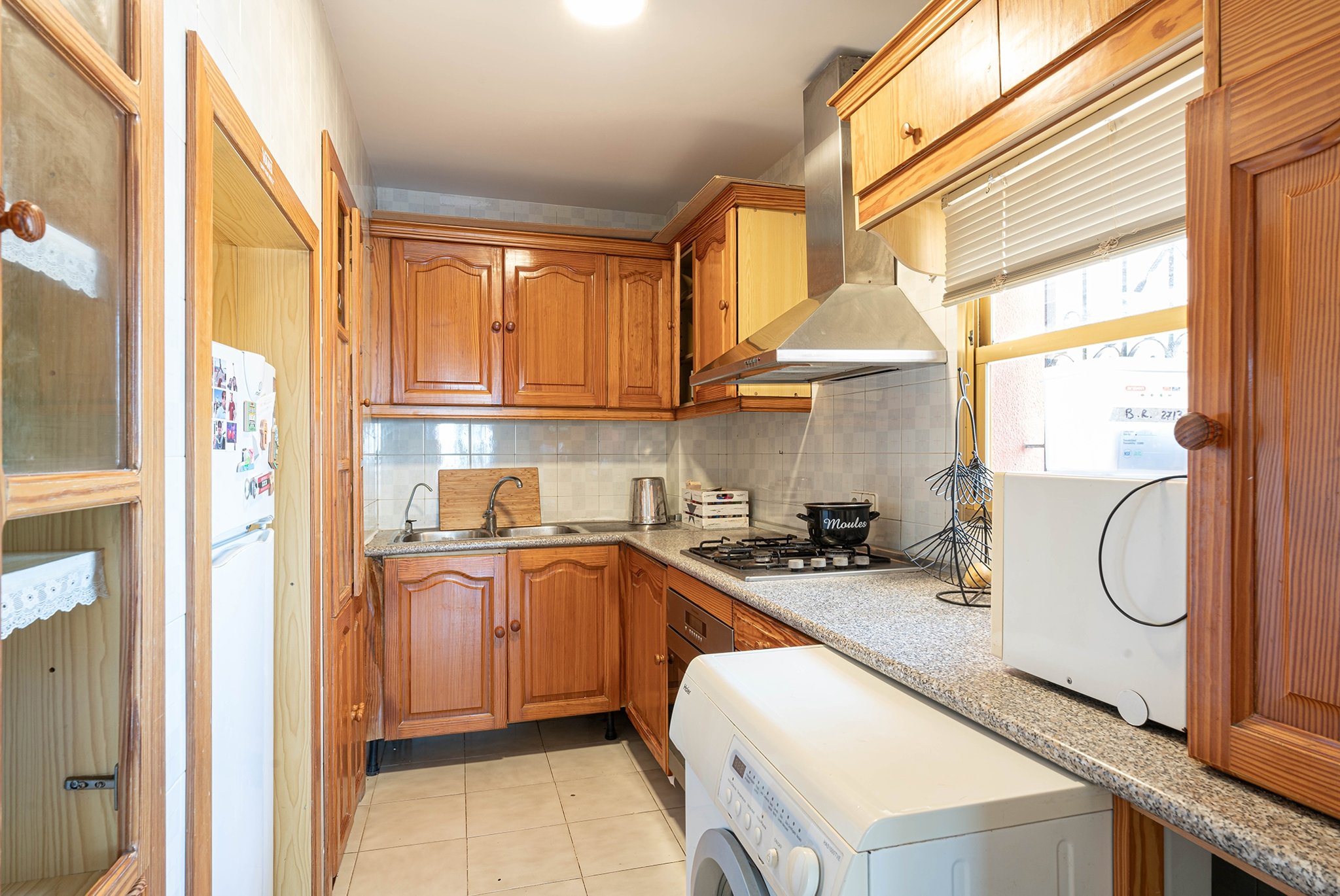 The property has a living area of 103 m2. It consists of a living room, a kitchen, 3 bedrooms and 2 bathrooms. From the bedroom and from the living room you have a wonderful view of the sea. The balcony faces south and also has sea views. The apartment has two storage rooms and a private garage with space for two cars. Above the garaje there is a private terrace of 27m2. There is also communal pool area.