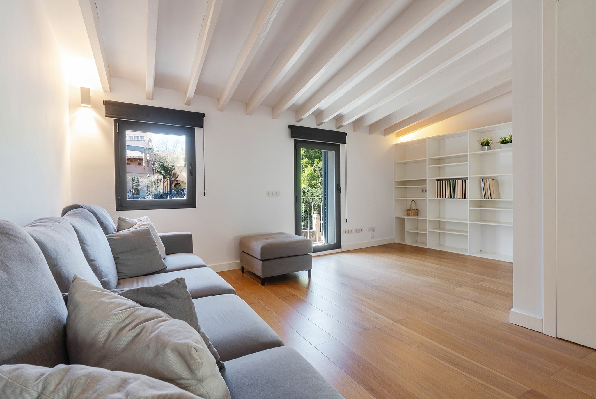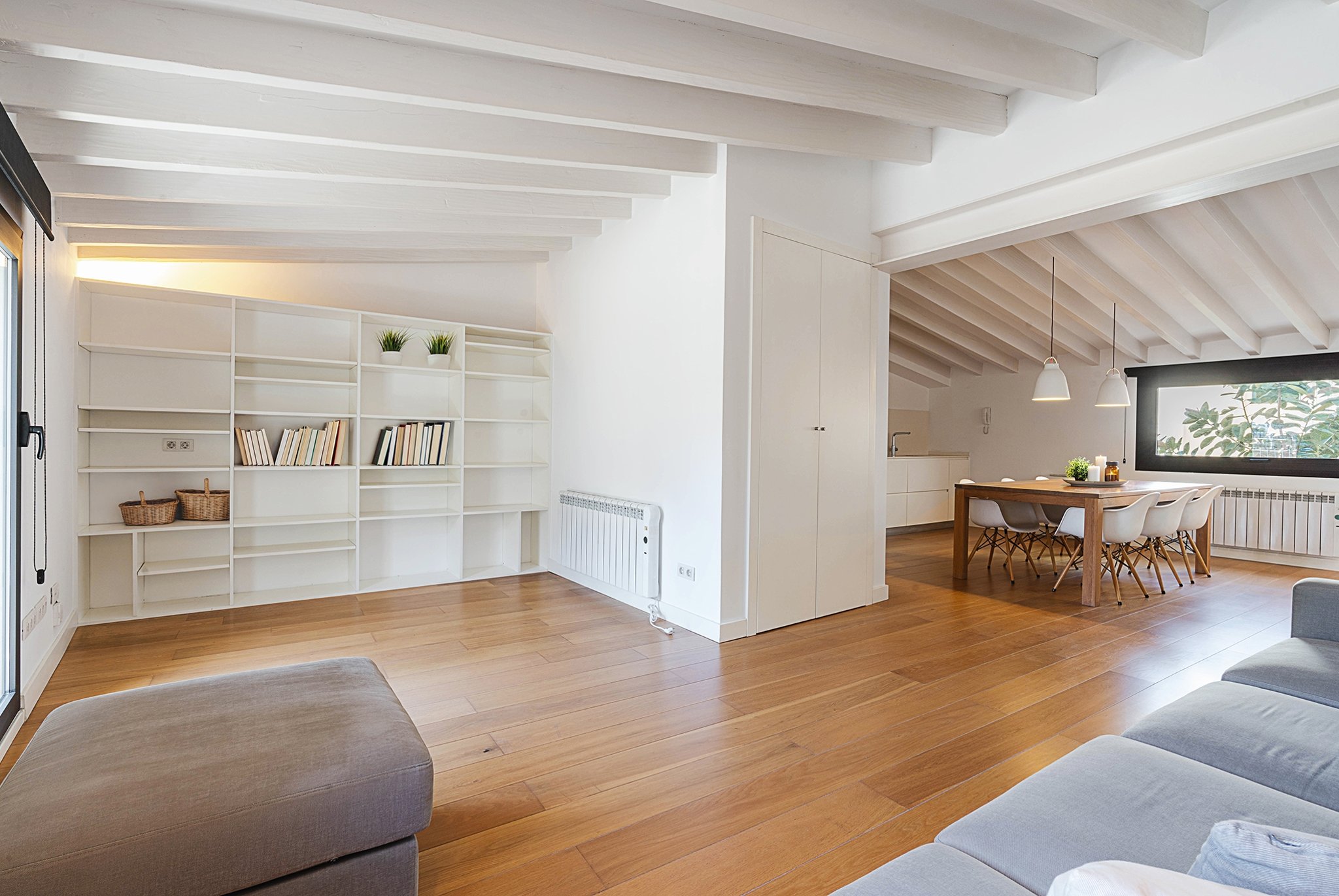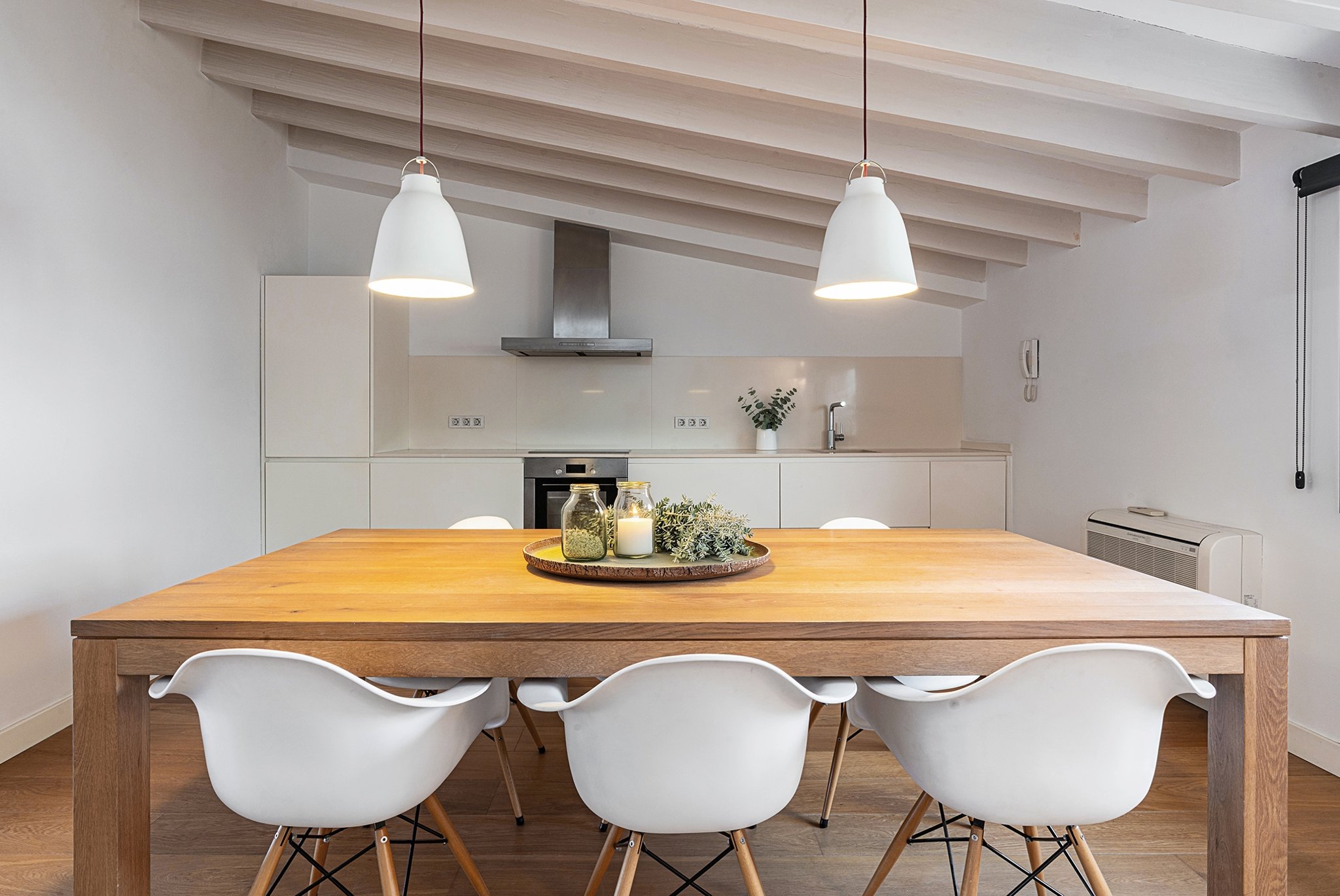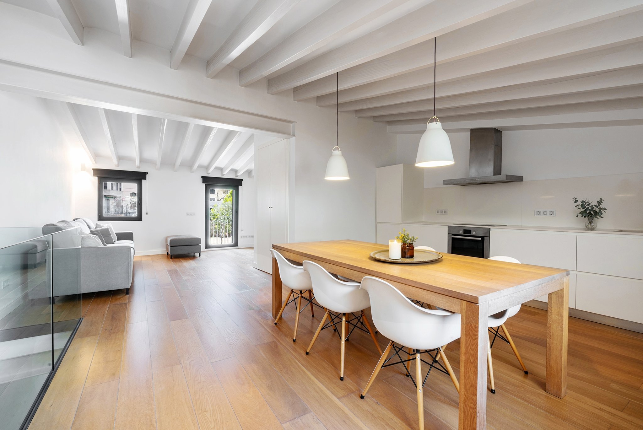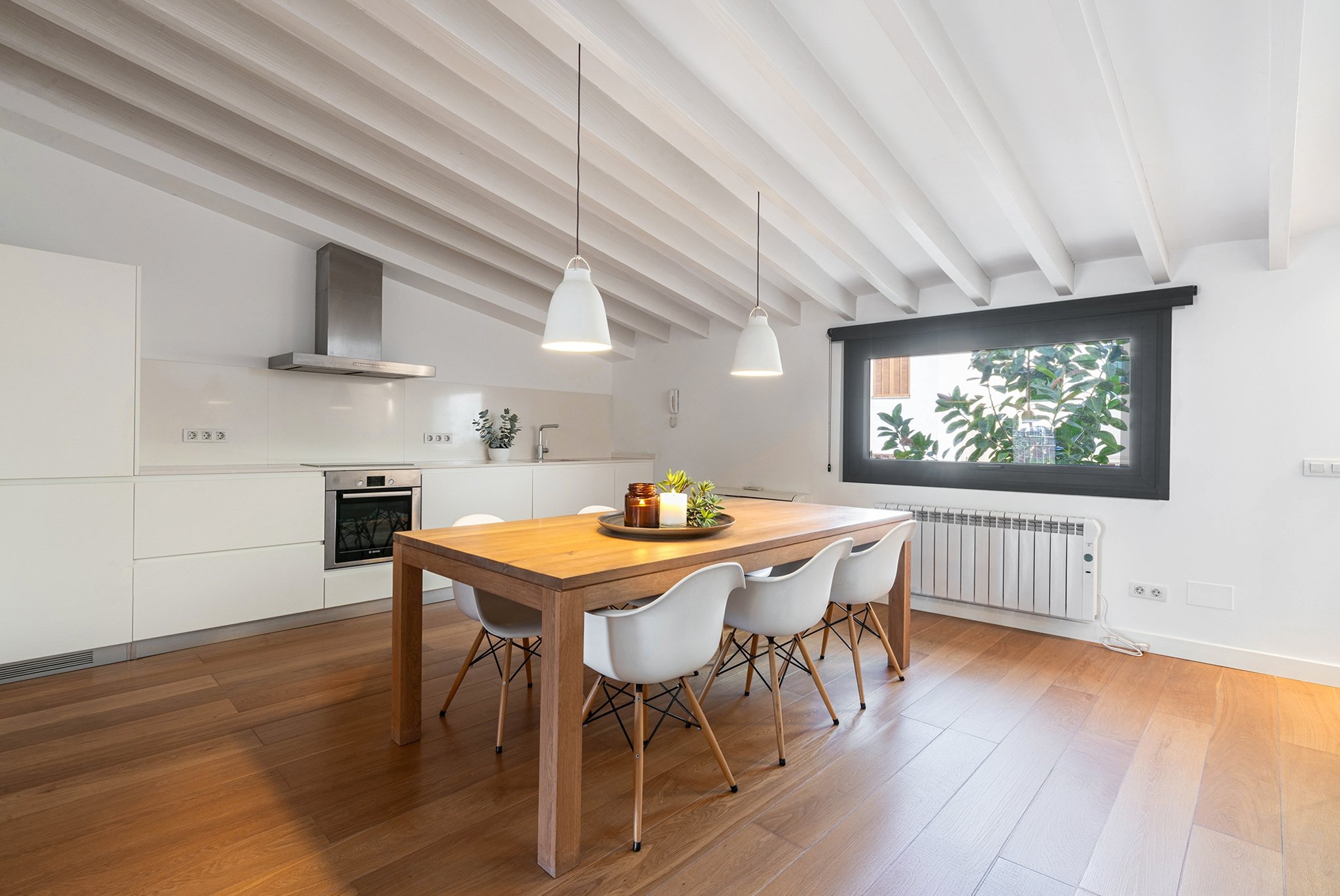 This renovated duplex apartment is located in a privileged and very quiet area near Calle San Jaime. With its own direct entrance from the street, it feels more like a house than an apartment.