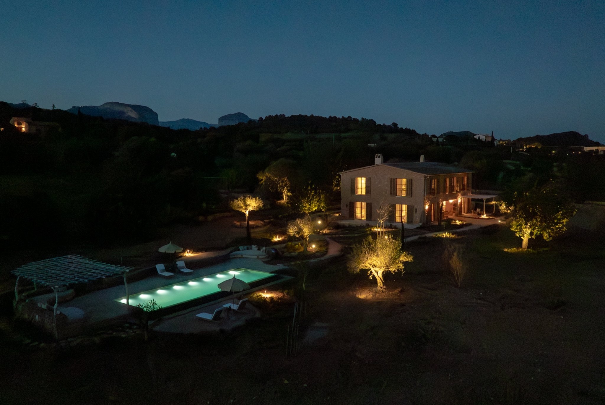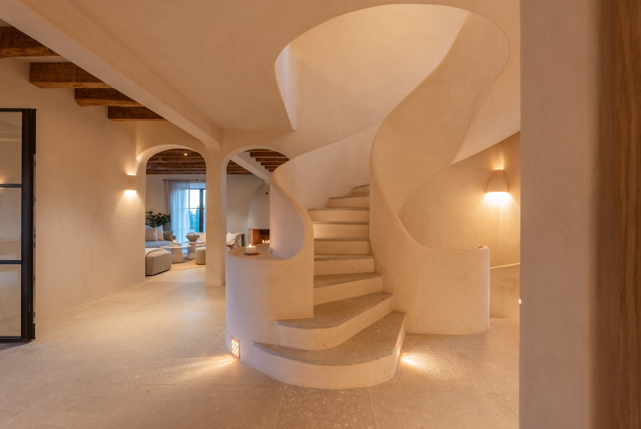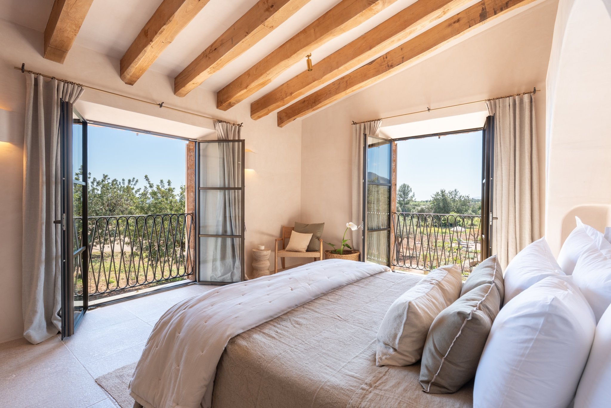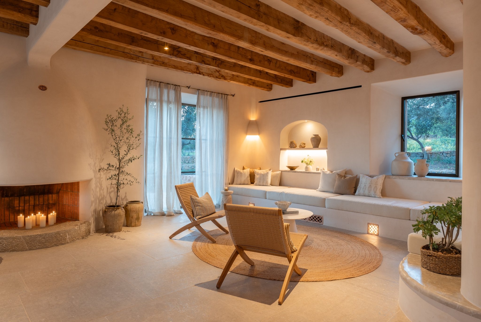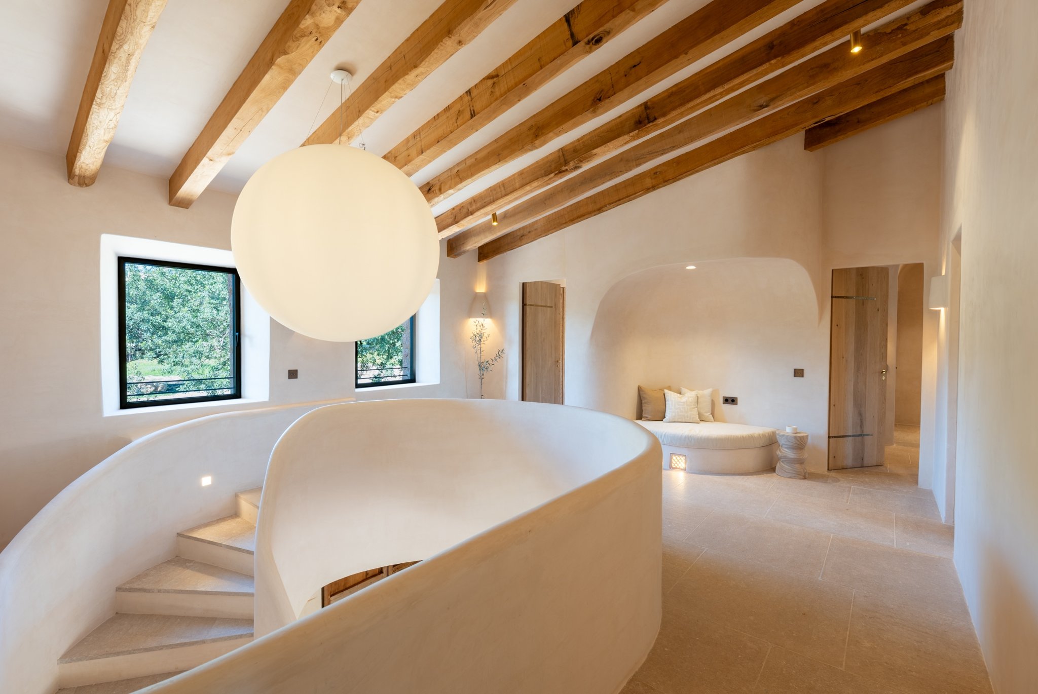 Set on a large plot of 15,191 m² in a beautiful natural setting, you'll find this newly built finca with stunning views of the castle and Puig de Alaró. The property combines modern architecture with a warm, Mallorcan feel and offers both privacy and generous living spaces.