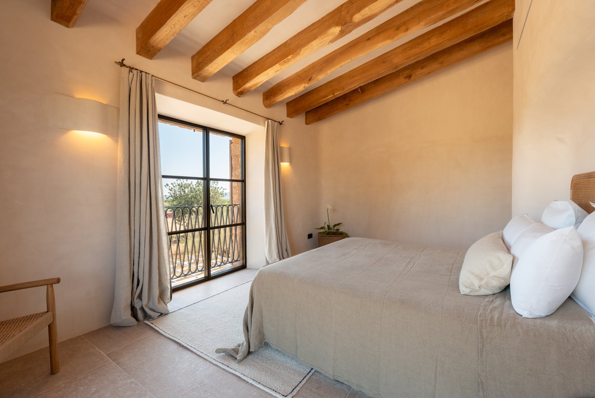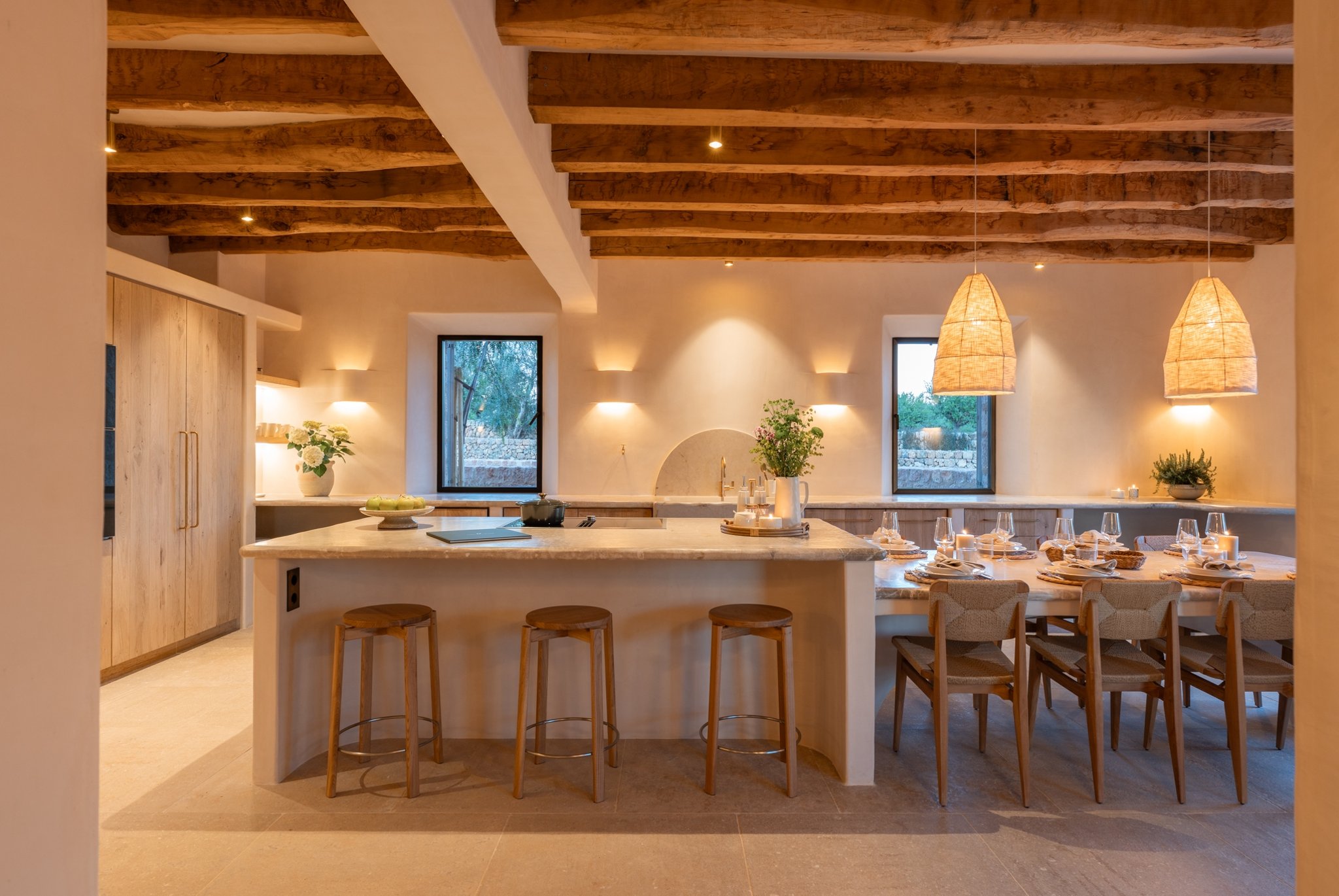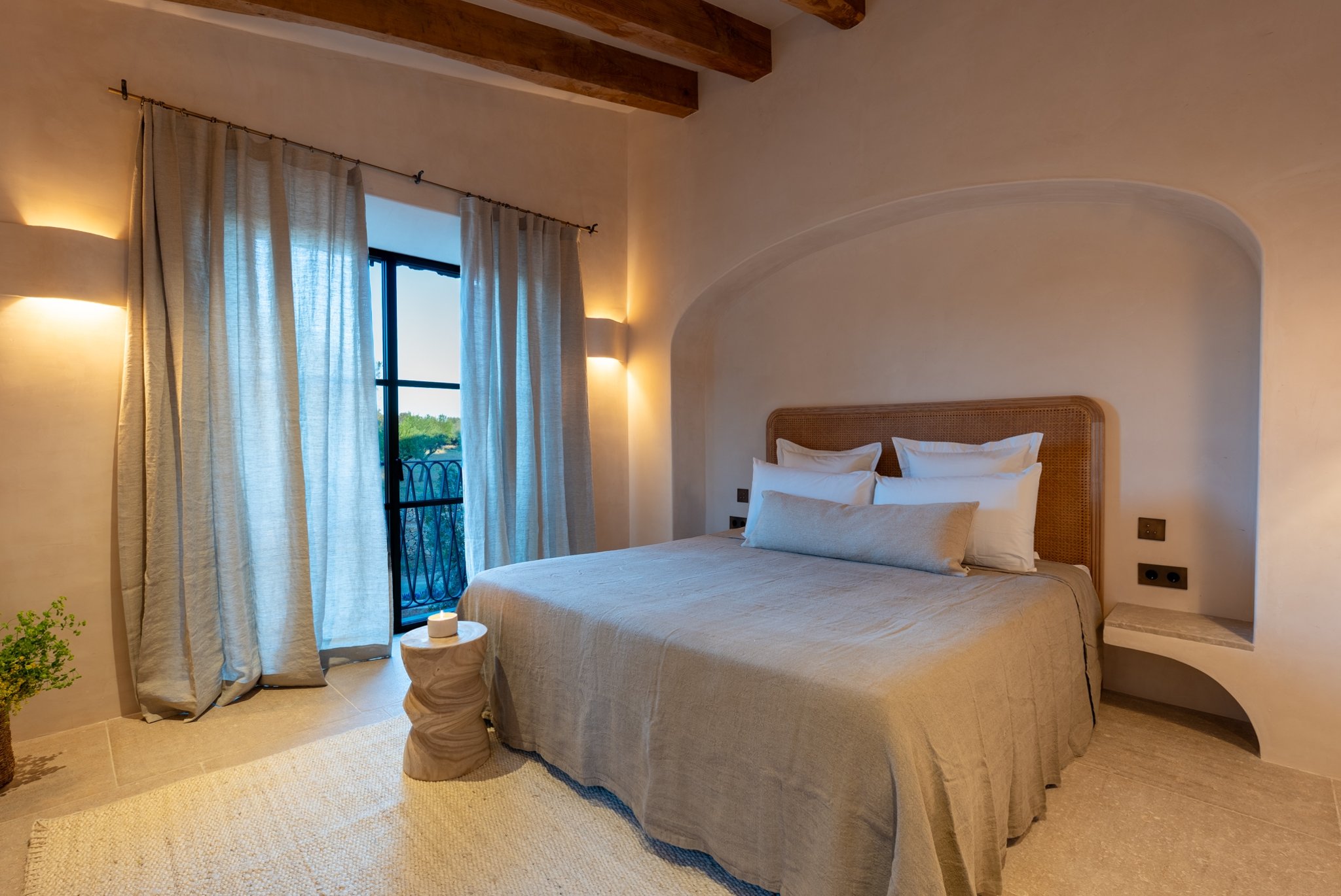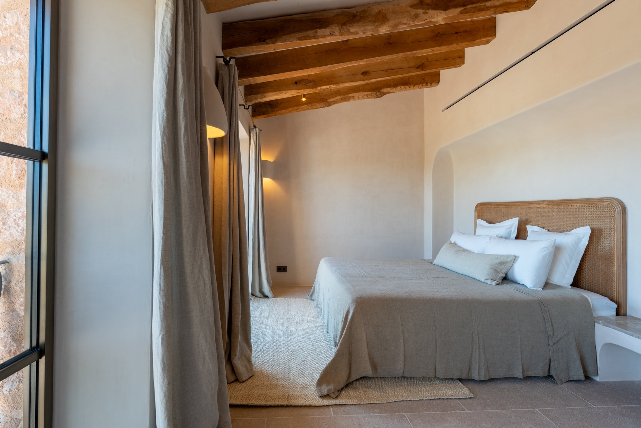 Set on a large plot of 15,191 m² in a beautiful natural setting, you'll find this newly built finca with stunning views of the castle and Puig de Alaró. The property combines modern architecture with a warm, Mallorcan feel and offers both privacy and generous living spaces.