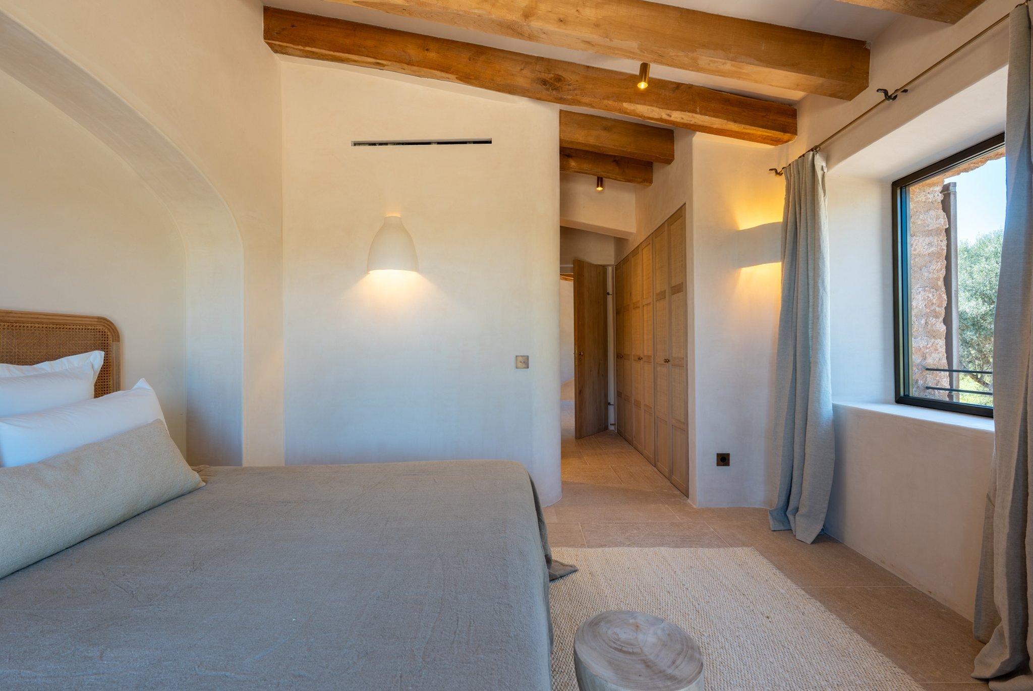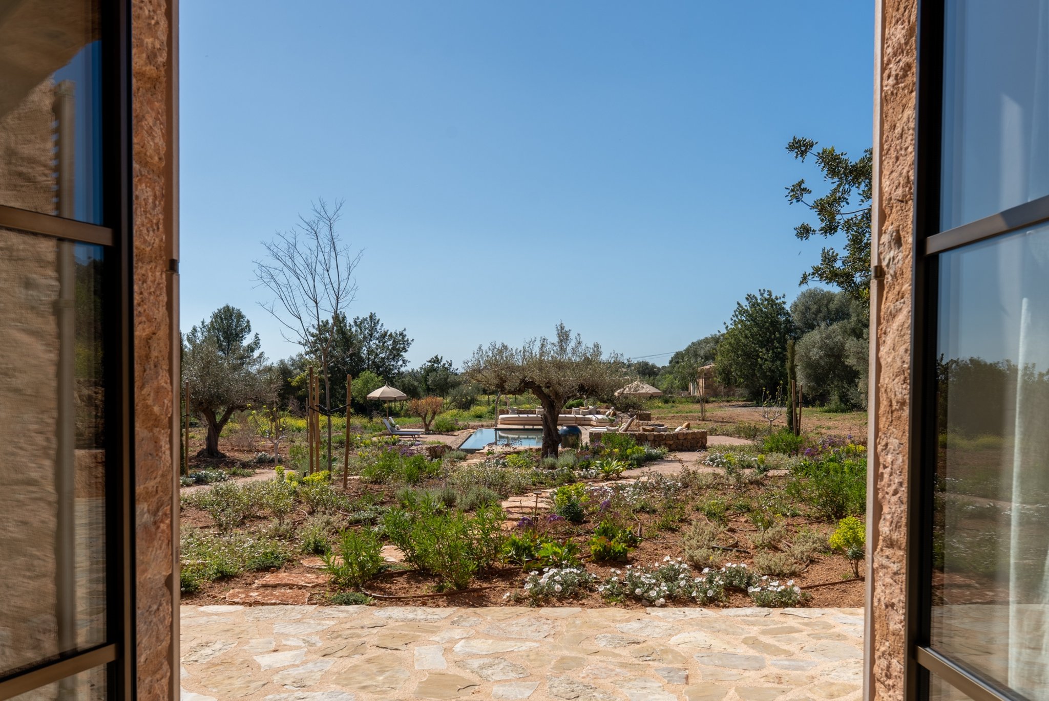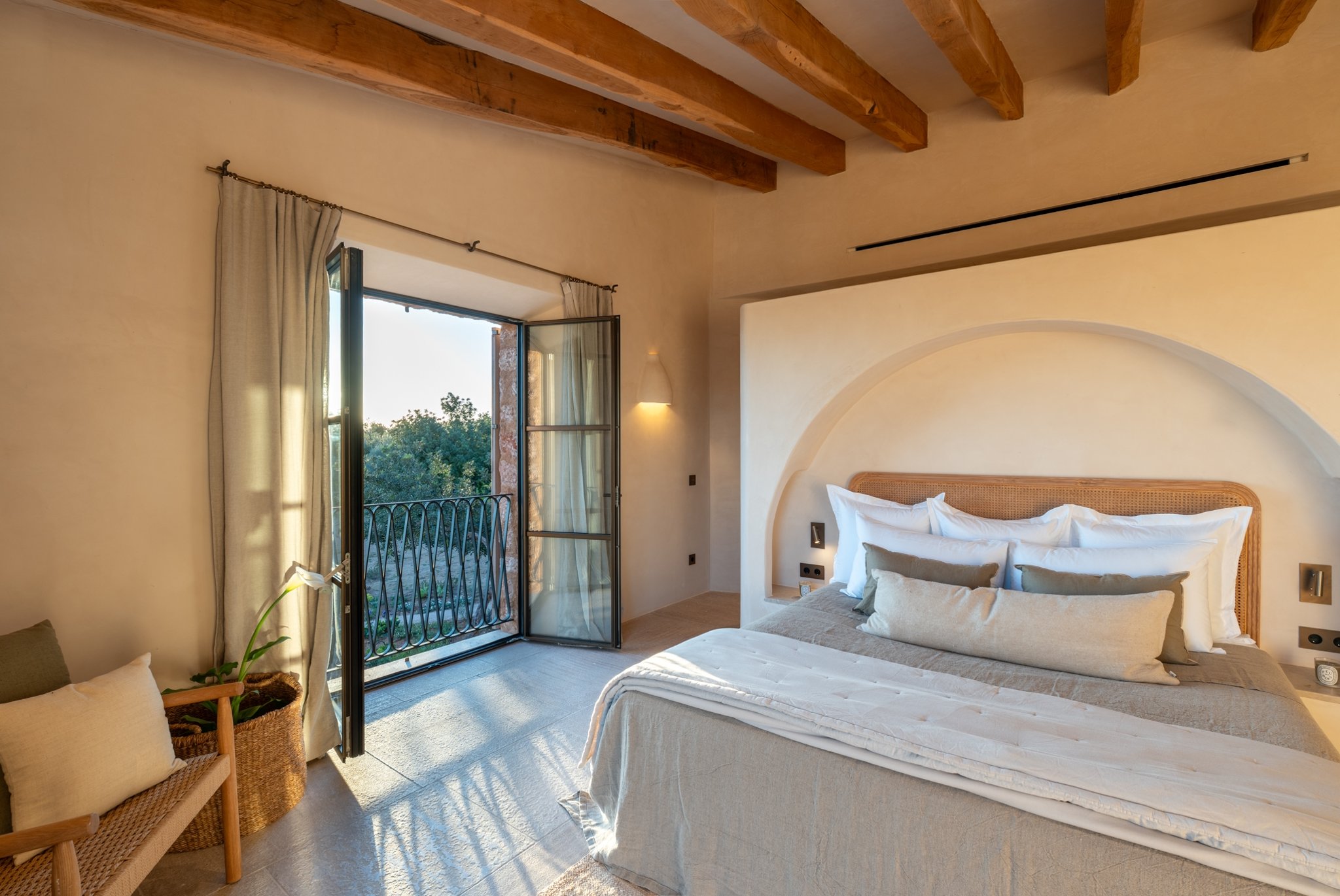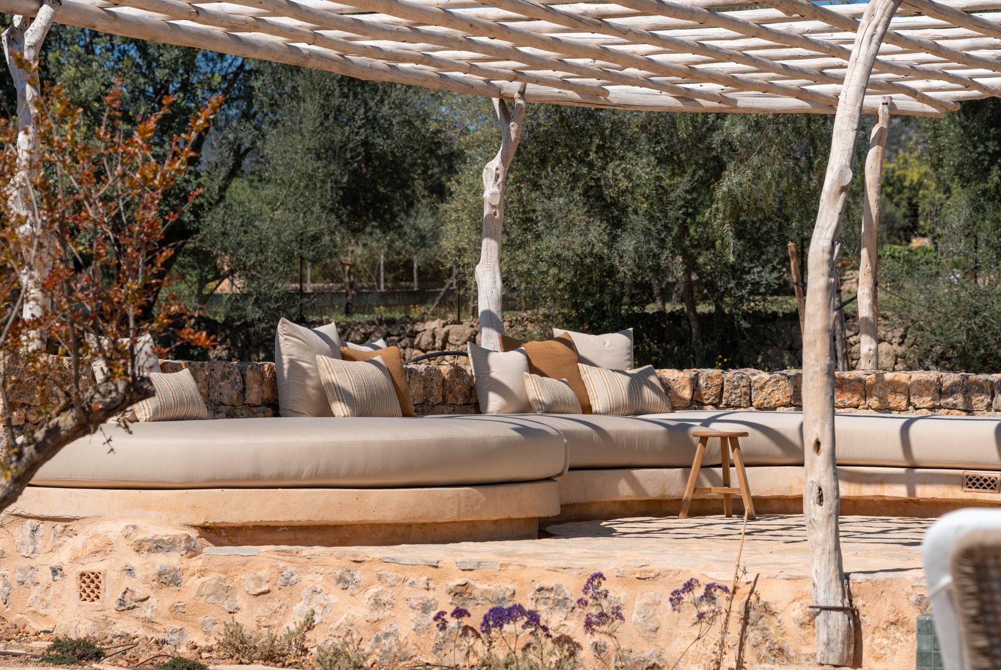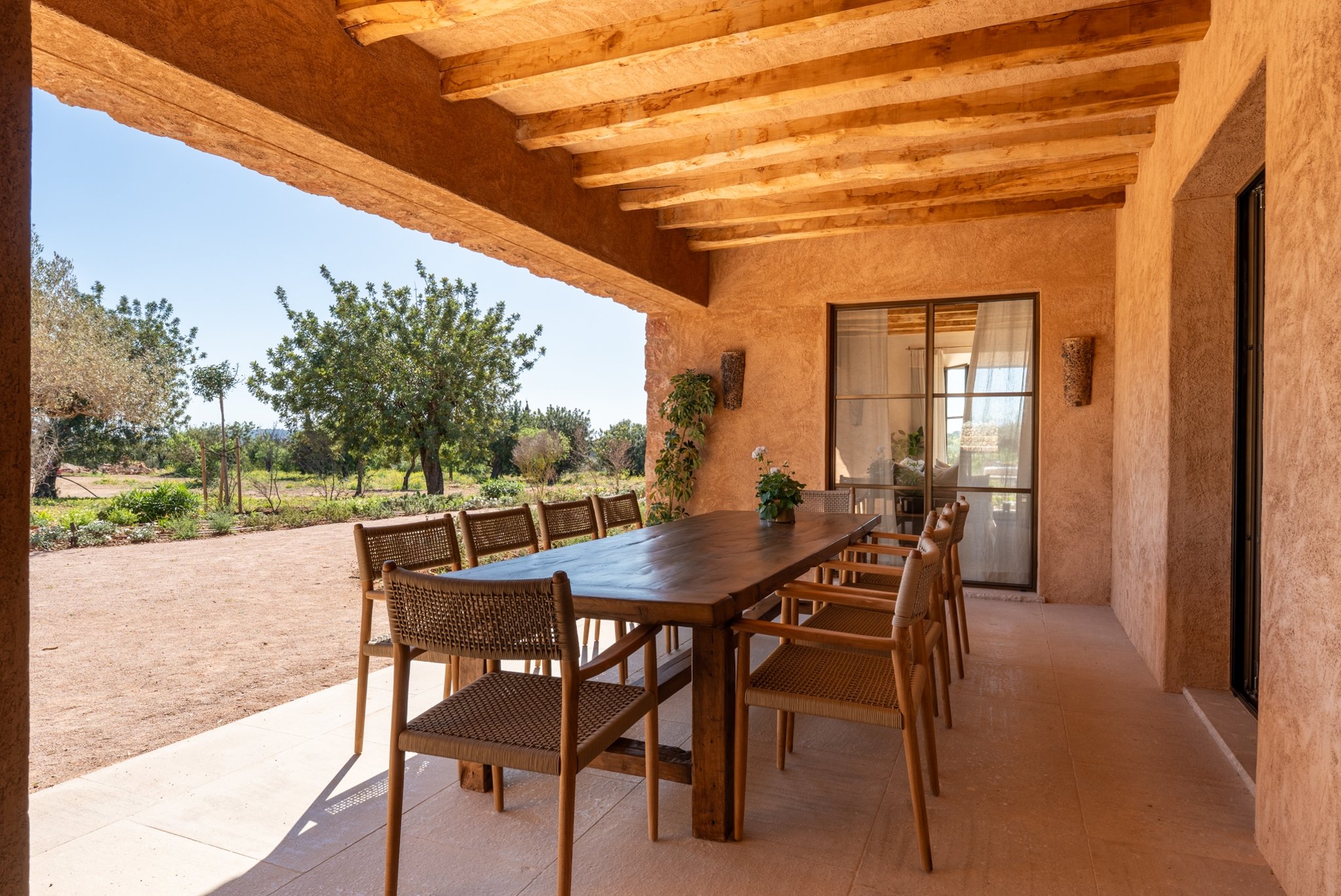 Set on a large plot of 15,191 m² in a beautiful natural setting, you'll find this newly built finca with stunning views of the castle and Puig de Alaró. The property combines modern architecture with a warm, Mallorcan feel and offers both privacy and generous living spaces.