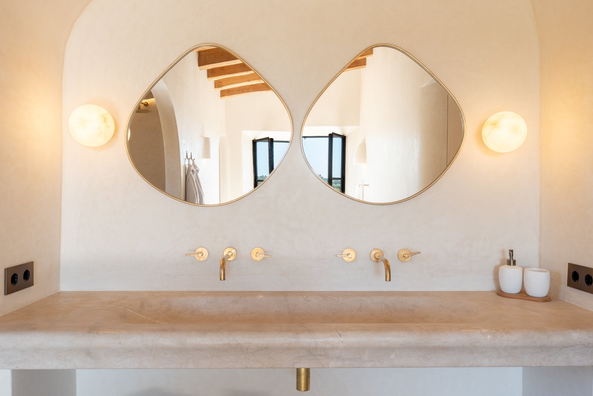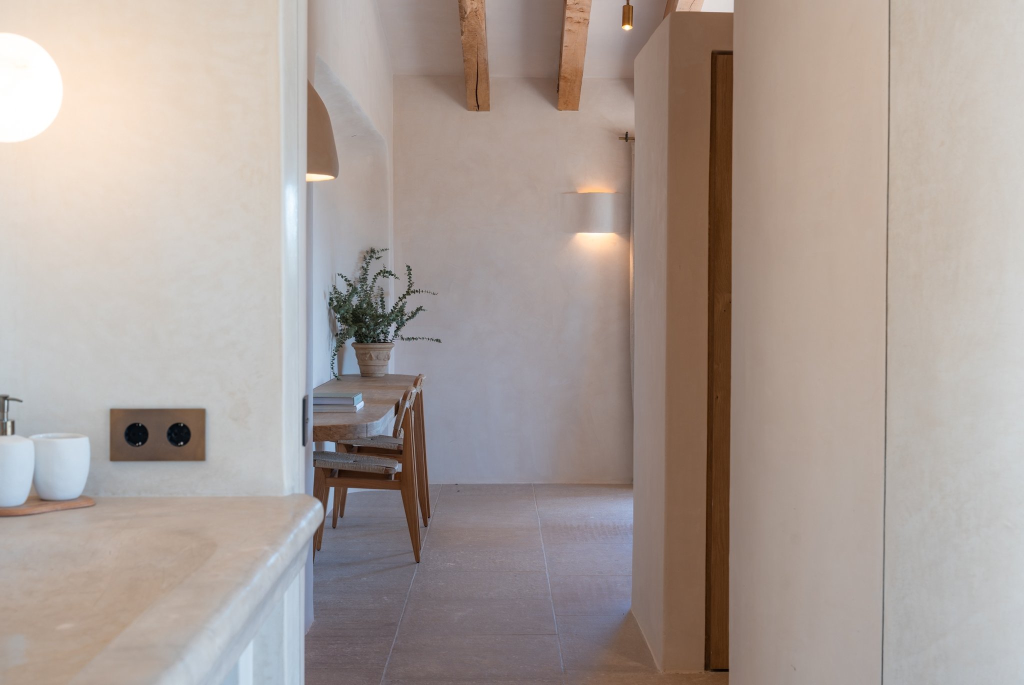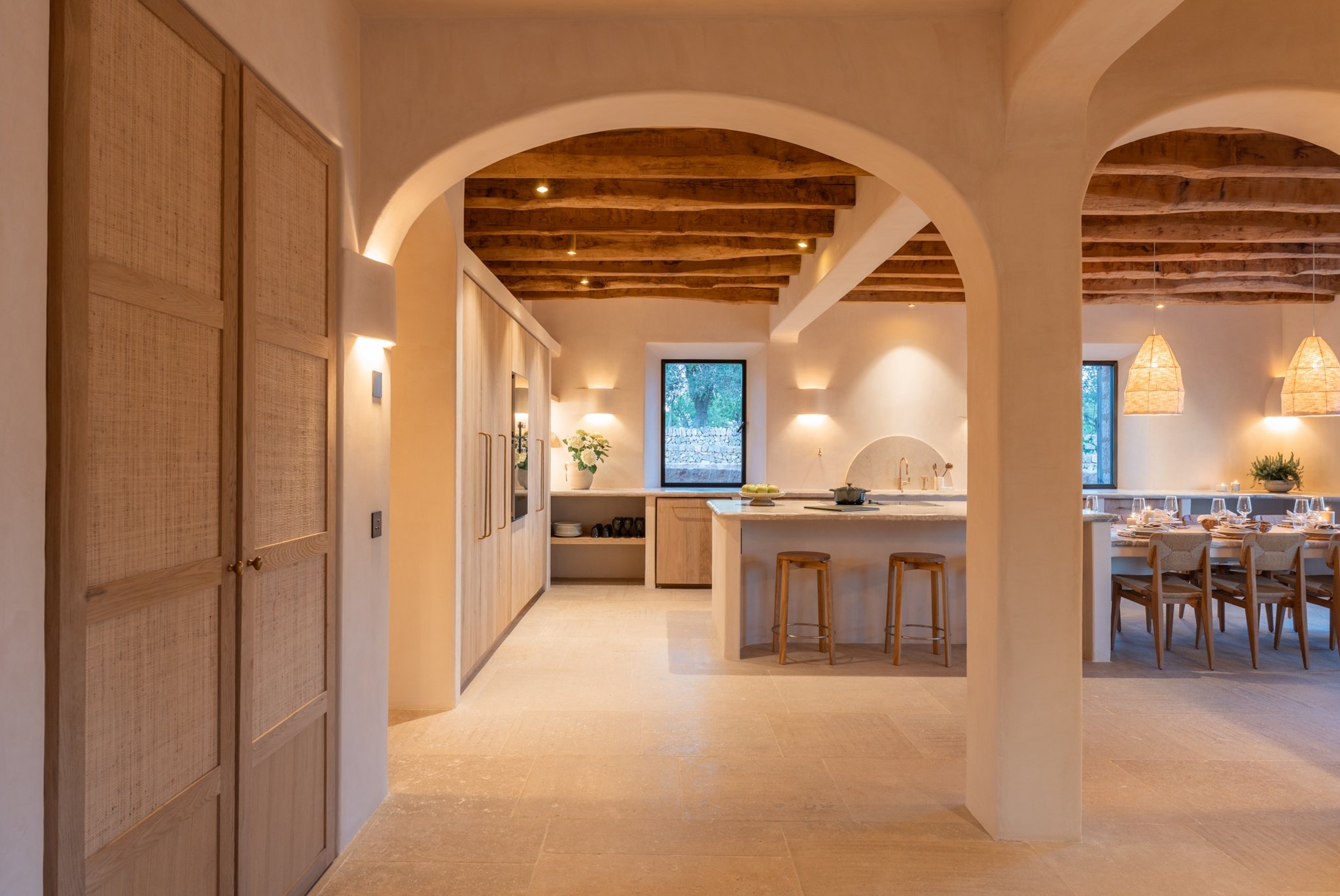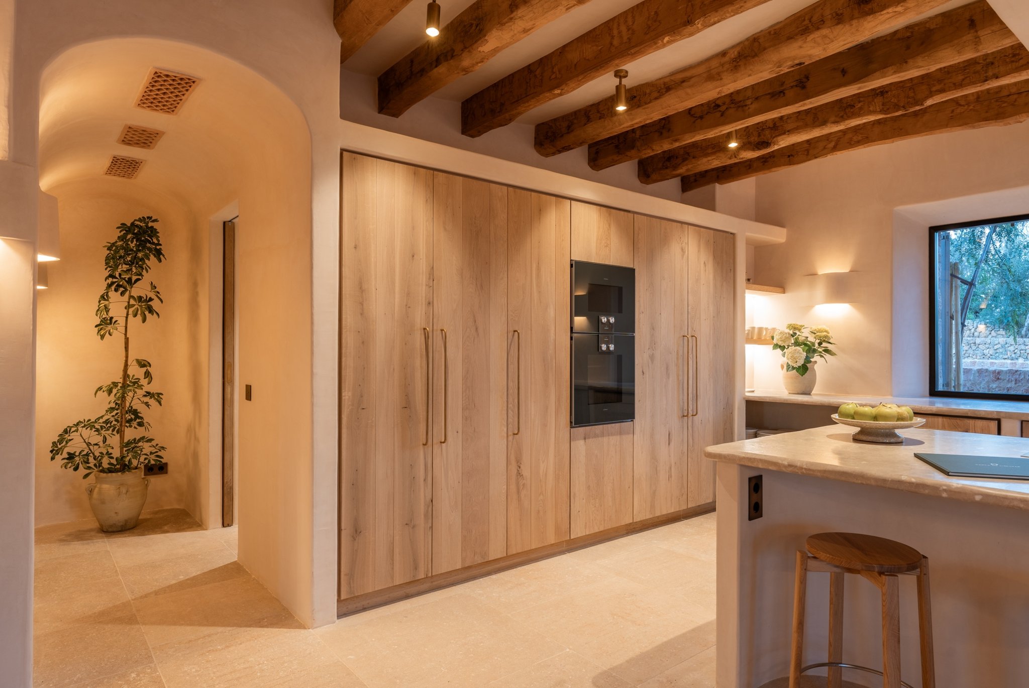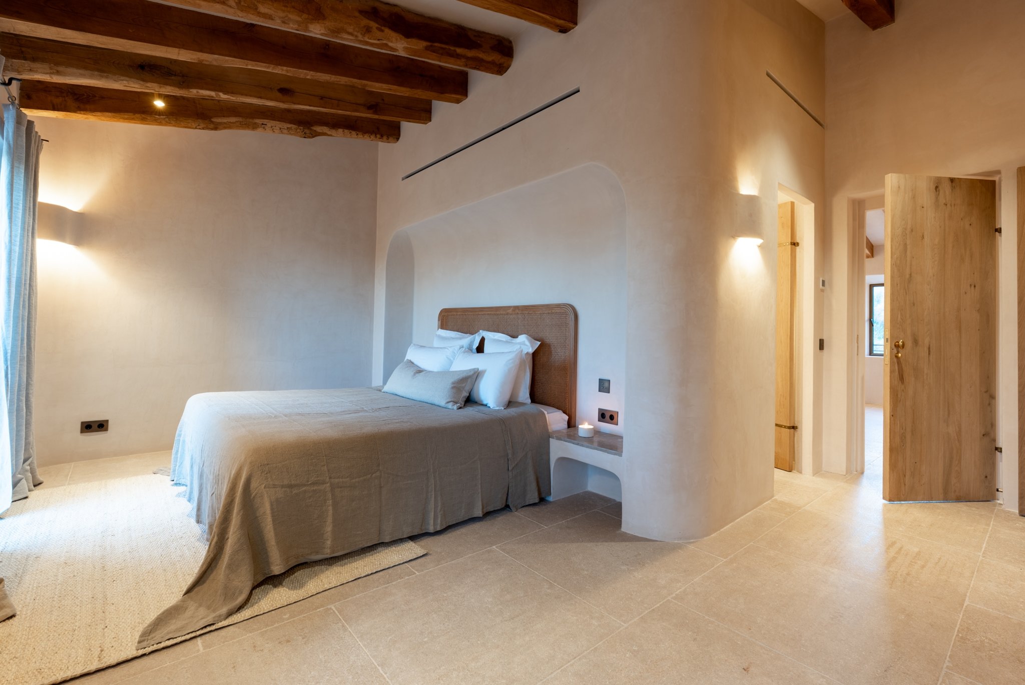 Set on a large plot of 15,191 m² in a beautiful natural setting, you'll find this newly built finca with stunning views of the castle and Puig de Alaró. The property combines modern architecture with a warm, Mallorcan feel and offers both privacy and generous living spaces.