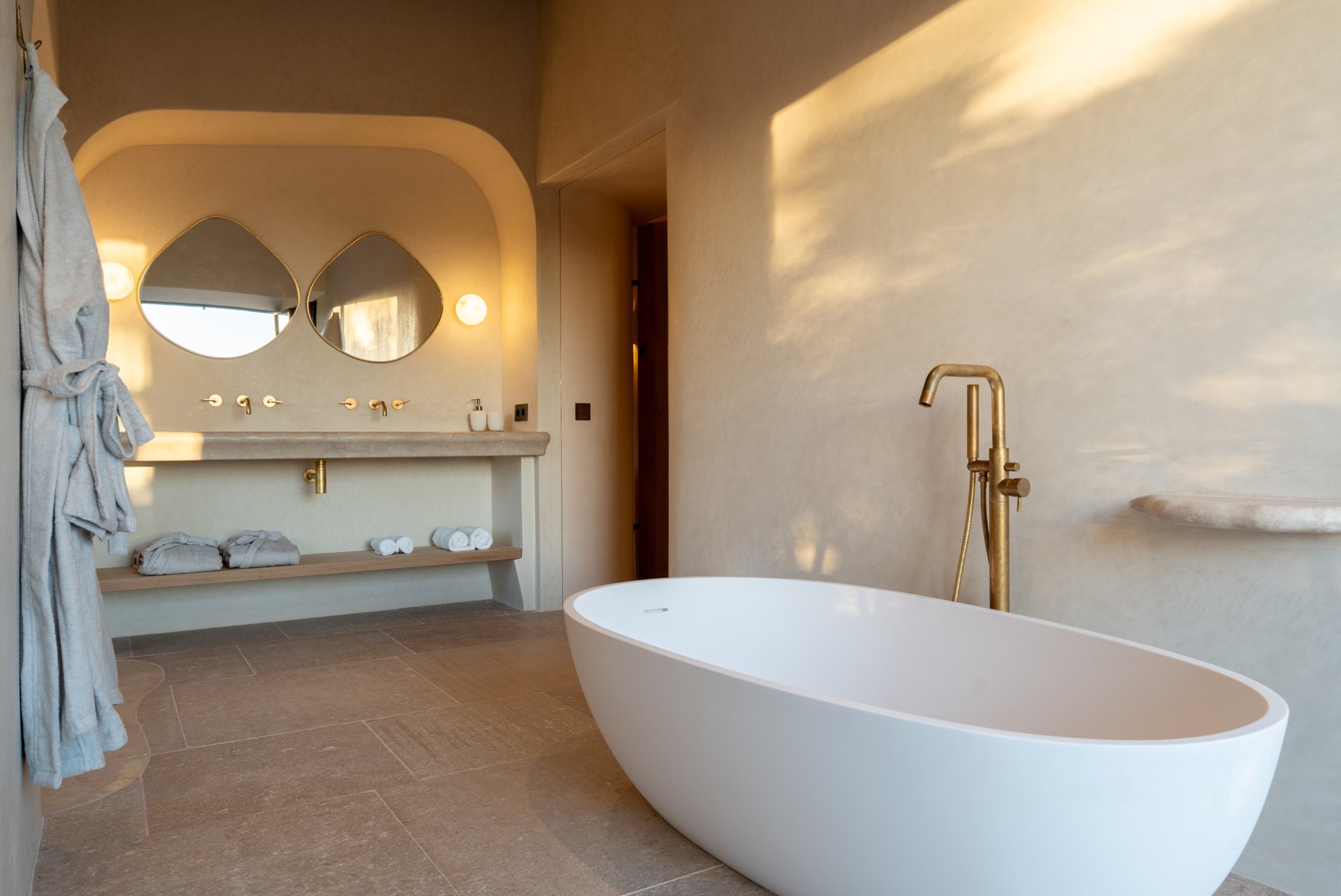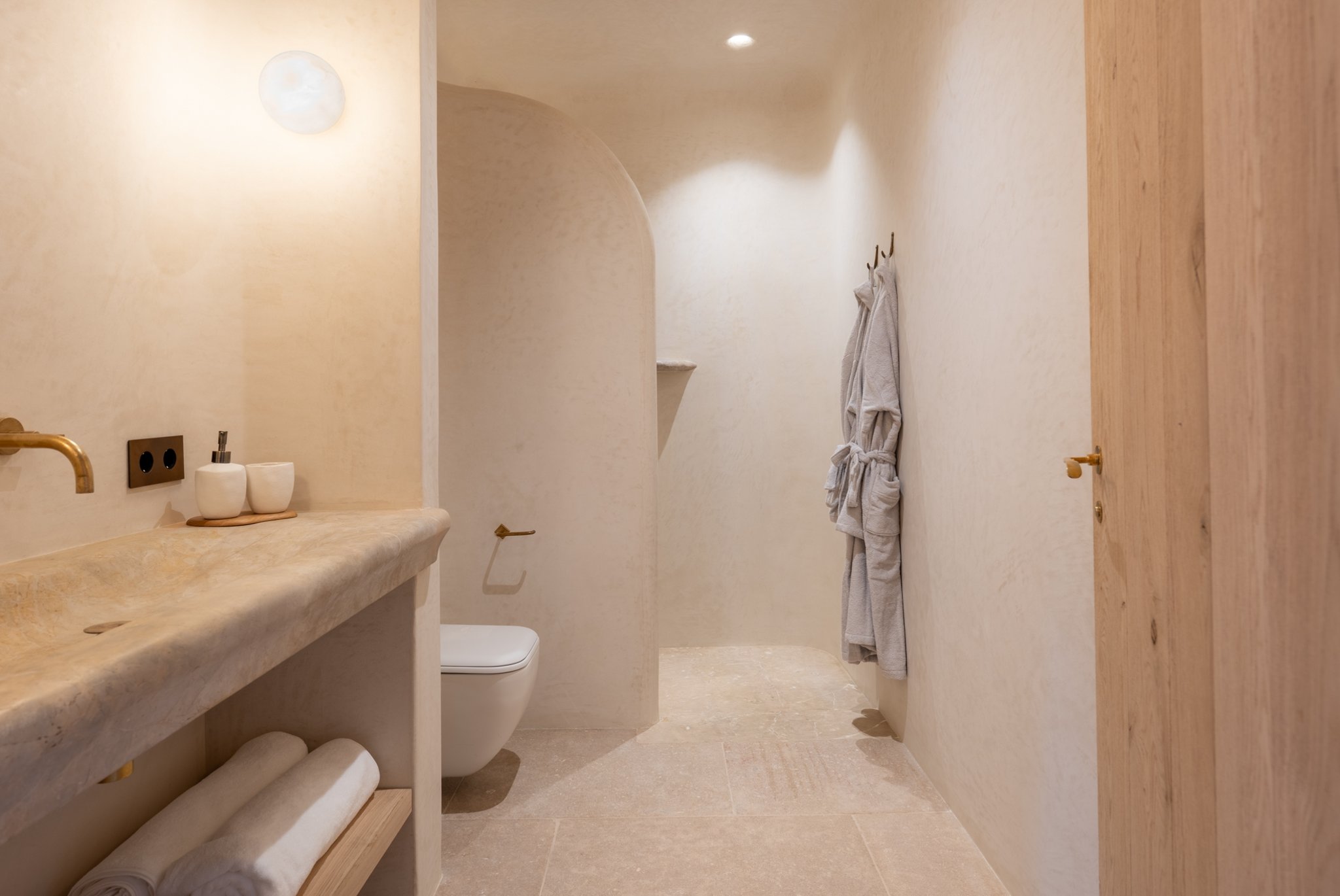 The upper floor offers four bedrooms, all with en-suite bathrooms. Each room enjoys beautiful natural light and open views, creating a calm and private atmosphere.
