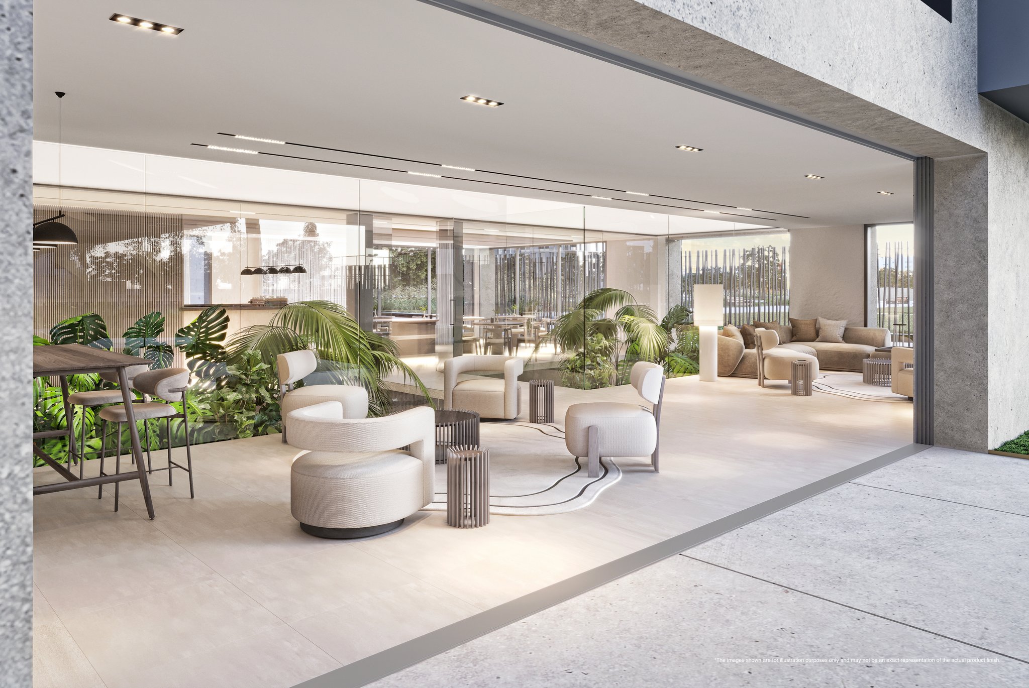 Each apartment is thoughtfully designed with luxurious touches, including private terraces, built-in wardrobes, and sleek interiors. Residents will also enjoy access to an extensive range of high-end shared amenities, such as a stunning infinity pool with sun deck and ambient fire features, a state-of-the-art gym, a wellness area with sauna and steam room, and an indoor/outdoor lounge with dedicated meeting rooms and workspaces. Additional amenities include a staffed reception, landscaped courtyard, screening room, golf simulator, private parking, and a 24-hour security system.