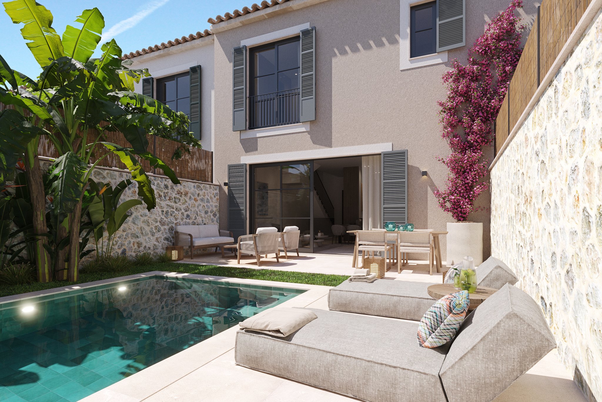Townhouse with private garden & pool
