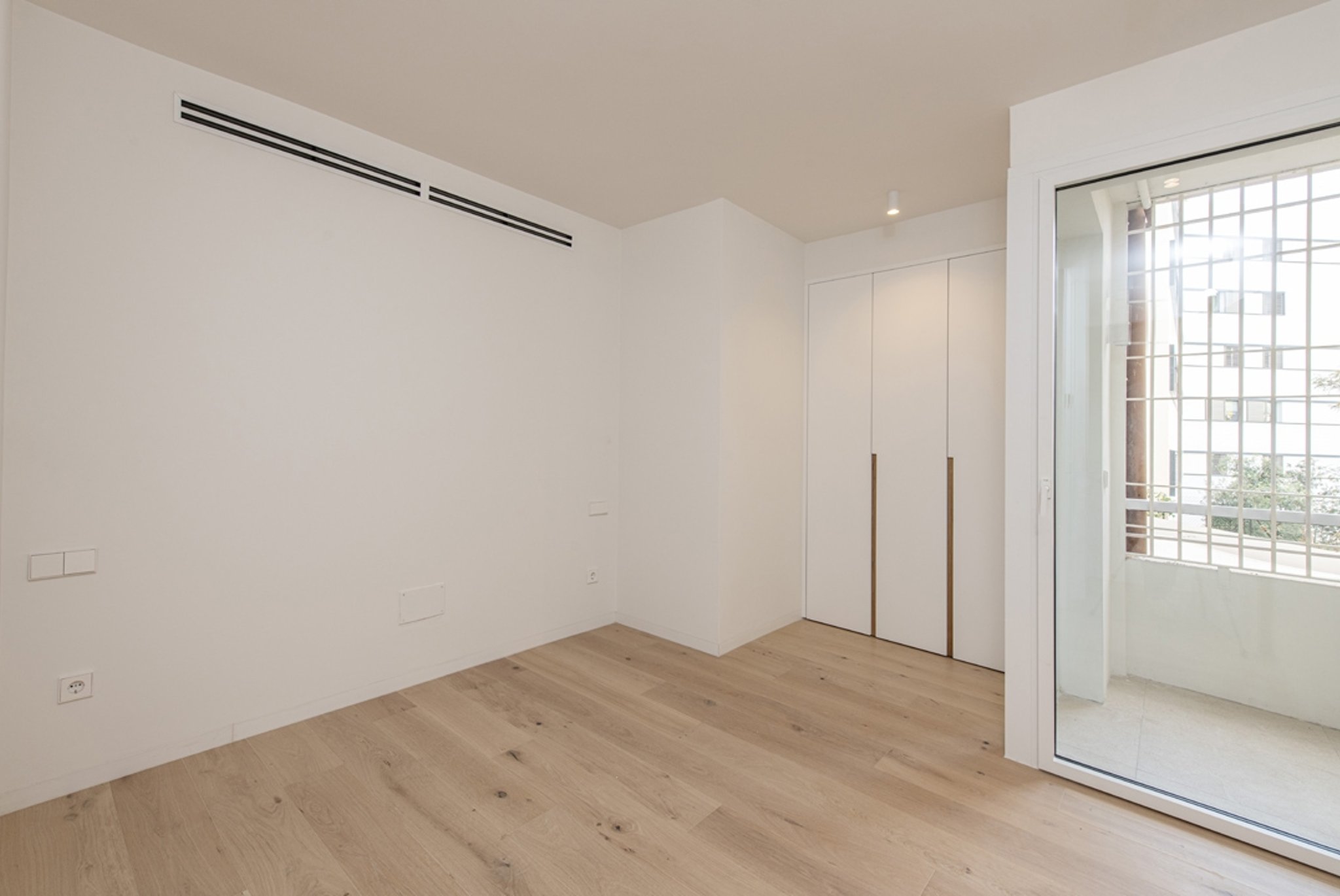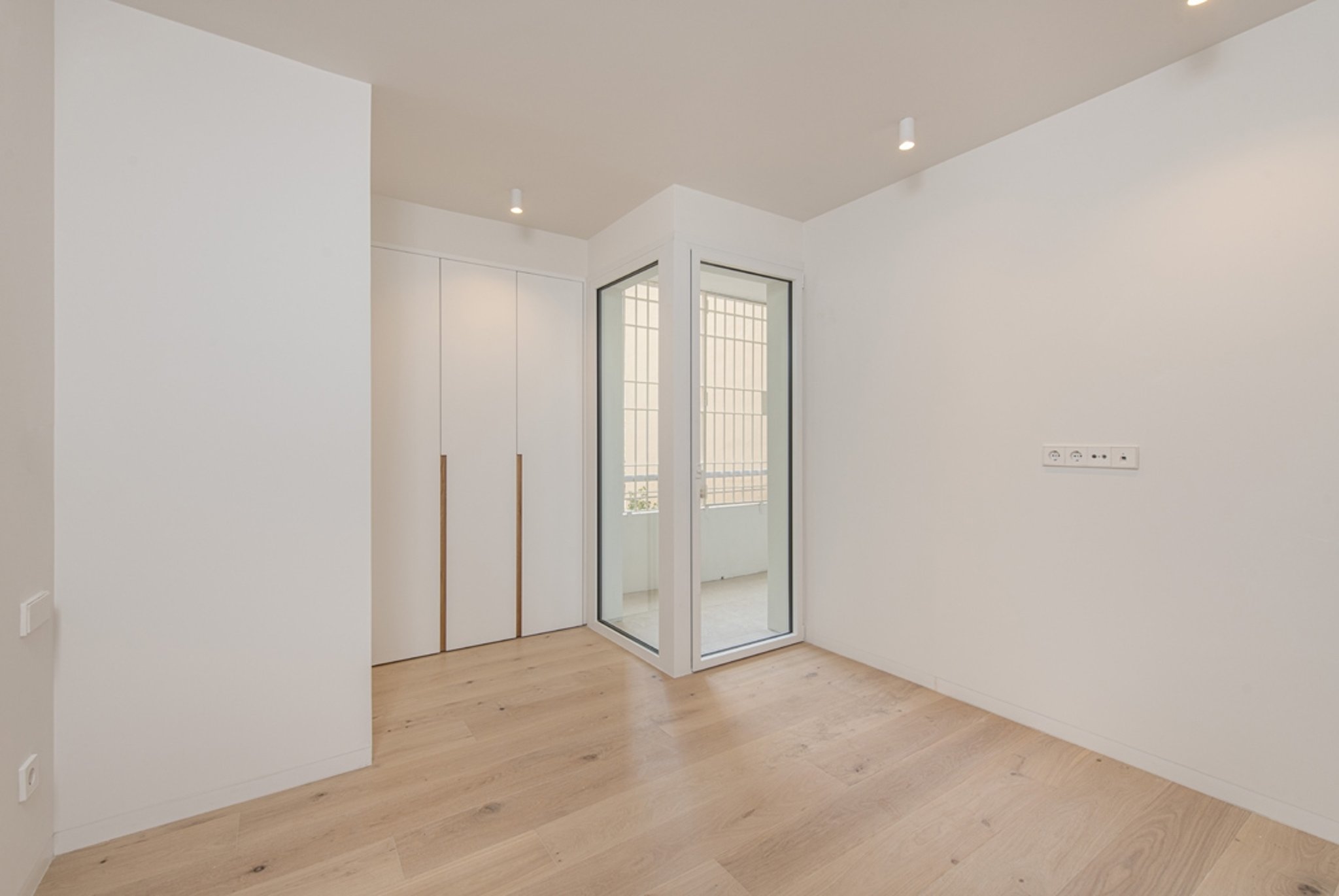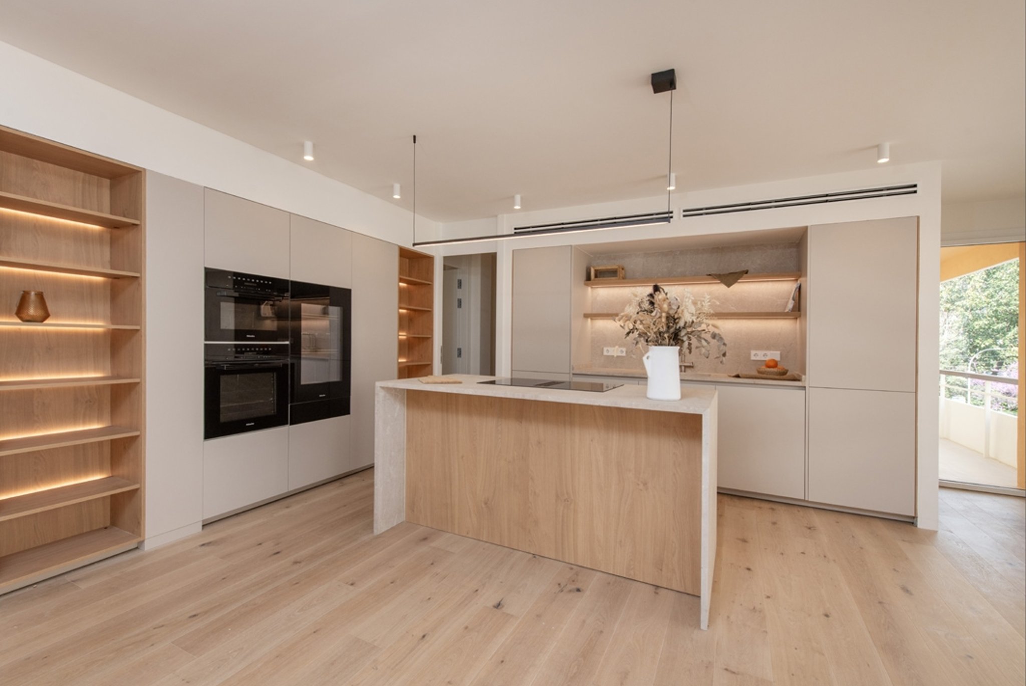 This newly renovated apartment is located very close to the Palma Tennis Club, perfectly placed between the pulse of the city and the beautiful coastline. The property is cleverly planned with a stylish design and well thought-out layout. At 167 square metres, it offers four spacious double bedrooms, all with fitted wardrobes, and four bathrooms, three of which are en-suite. There are also practical amenities such as storage space, a laundry room, an open-plan kitchen, living and dining room, and a large terrace that runs the length of the apartment. The choice of materials is of the highest quality, with natural wood floors, Dekton and natural stone worktops and exclusive Miele appliances. For further comfort, there is underfloor heating and air conditioning.