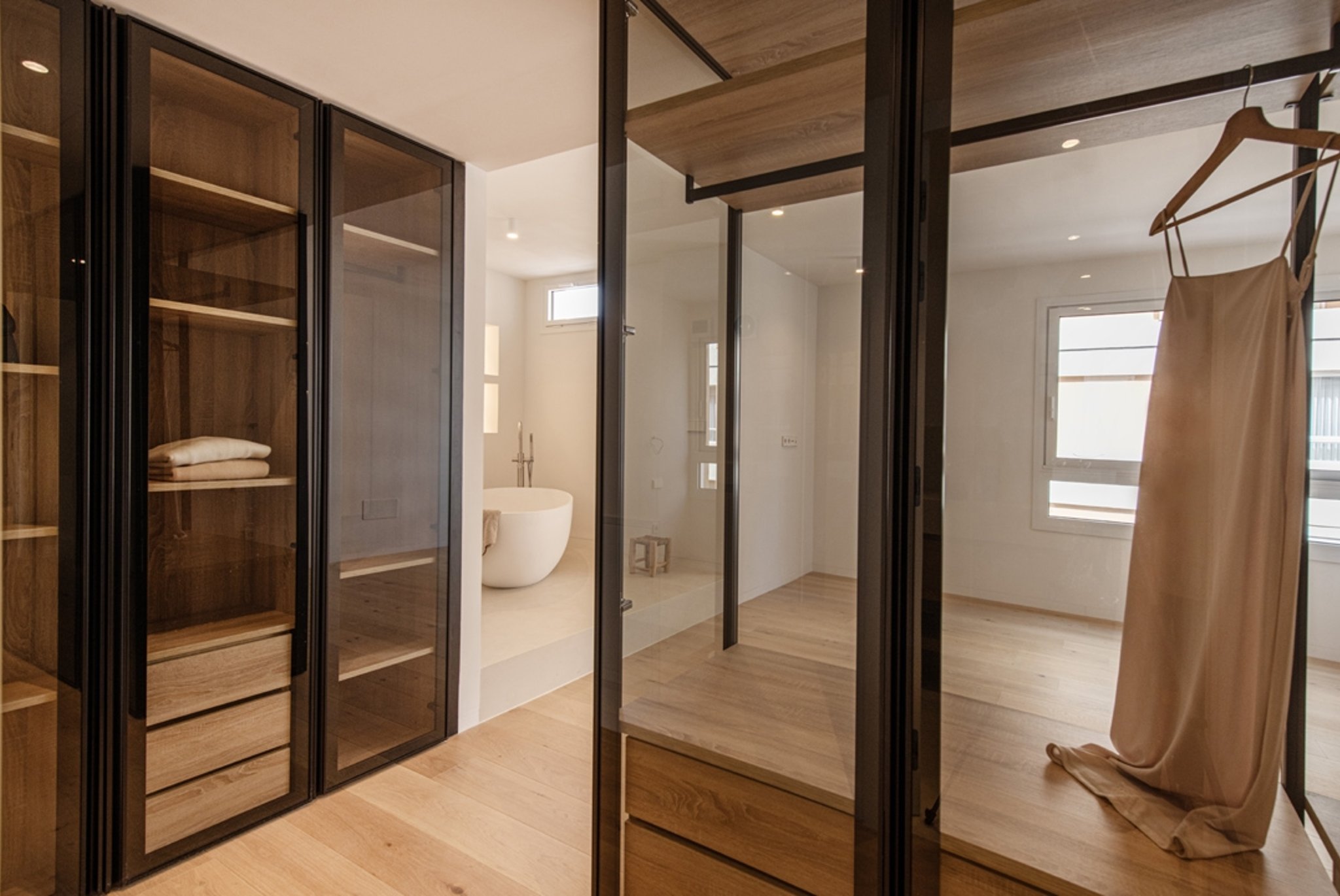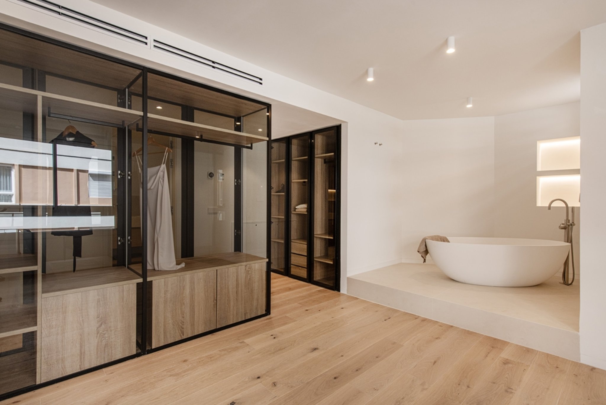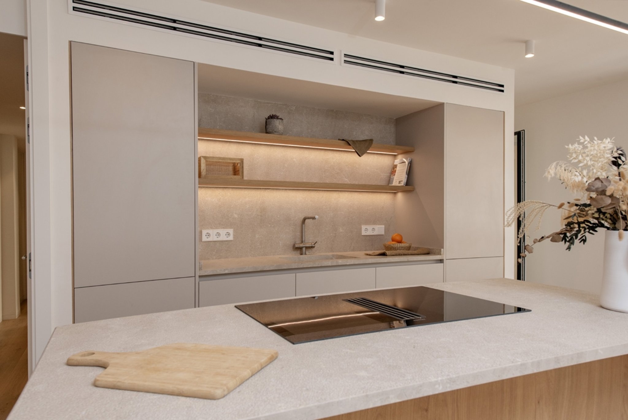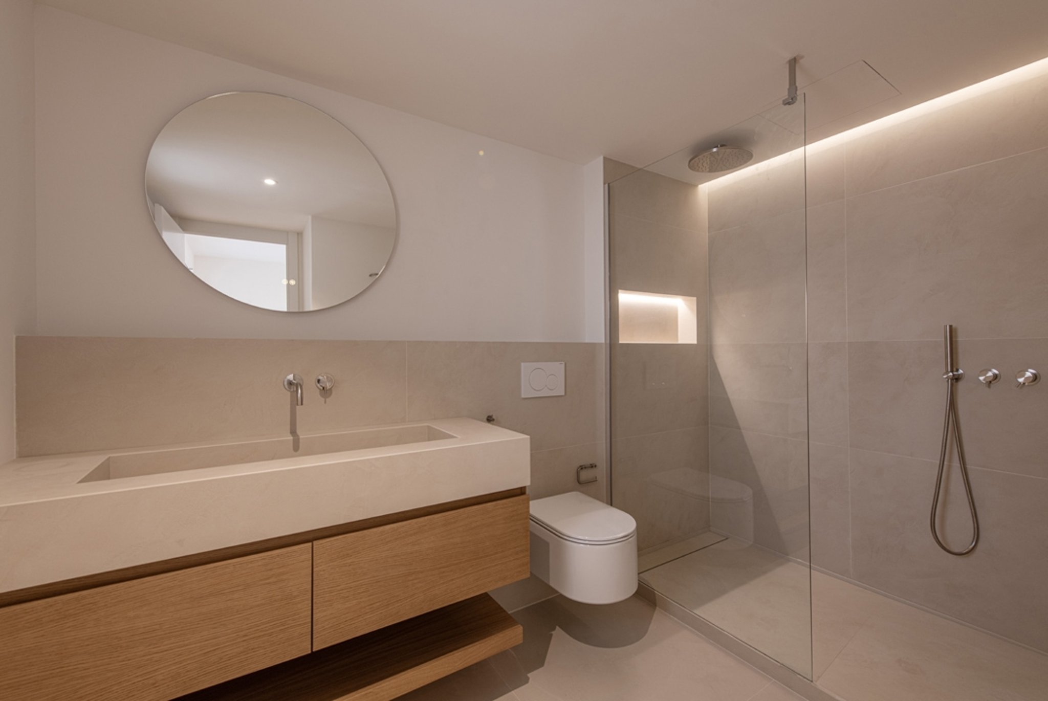 This newly renovated apartment is located very close to the Palma Tennis Club, perfectly placed between the pulse of the city and the beautiful coastline. The property is cleverly planned with a stylish design and well thought-out layout. At 167 square metres, it offers four spacious double bedrooms, all with fitted wardrobes, and four bathrooms, three of which are en-suite. There are also practical amenities such as storage space, a laundry room, an open-plan kitchen, living and dining room, and a large terrace that runs the length of the apartment. The choice of materials is of the highest quality, with natural wood floors, Dekton and natural stone worktops and exclusive Miele appliances. For further comfort, there is underfloor heating and air conditioning.