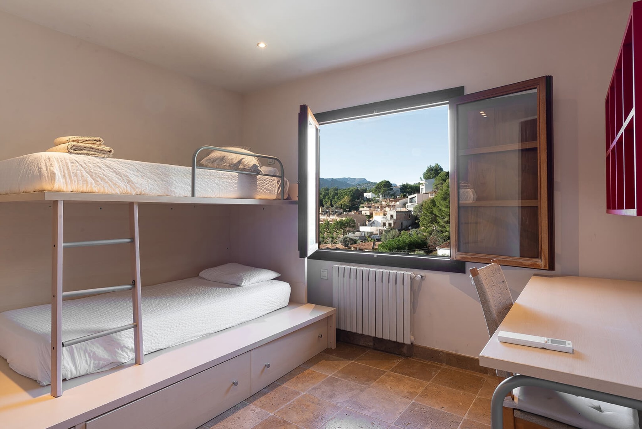 The house has a total living area of 140 m2 and is distributed over 2 floors. It consists of 4 double bedrooms with wardrobes and air conditioning and 3 bathrooms (one is en-suite). On the upper floor we find the living room, kitchen, one of the bedrooms and a guest toilet. From the living room you have access to a terrace of 15 m2 with a view of the valley of Soller and of the sea. On the lower floor are the remaining 3 bedrooms, 2 large bathrooms and a spacious laundry room that can be converted into a fifth bedroom. On this floor you have access to another terrace of 15 m2. The house's garage is another flight down. The property holds a tourist license for 8 beds for short-term rental.