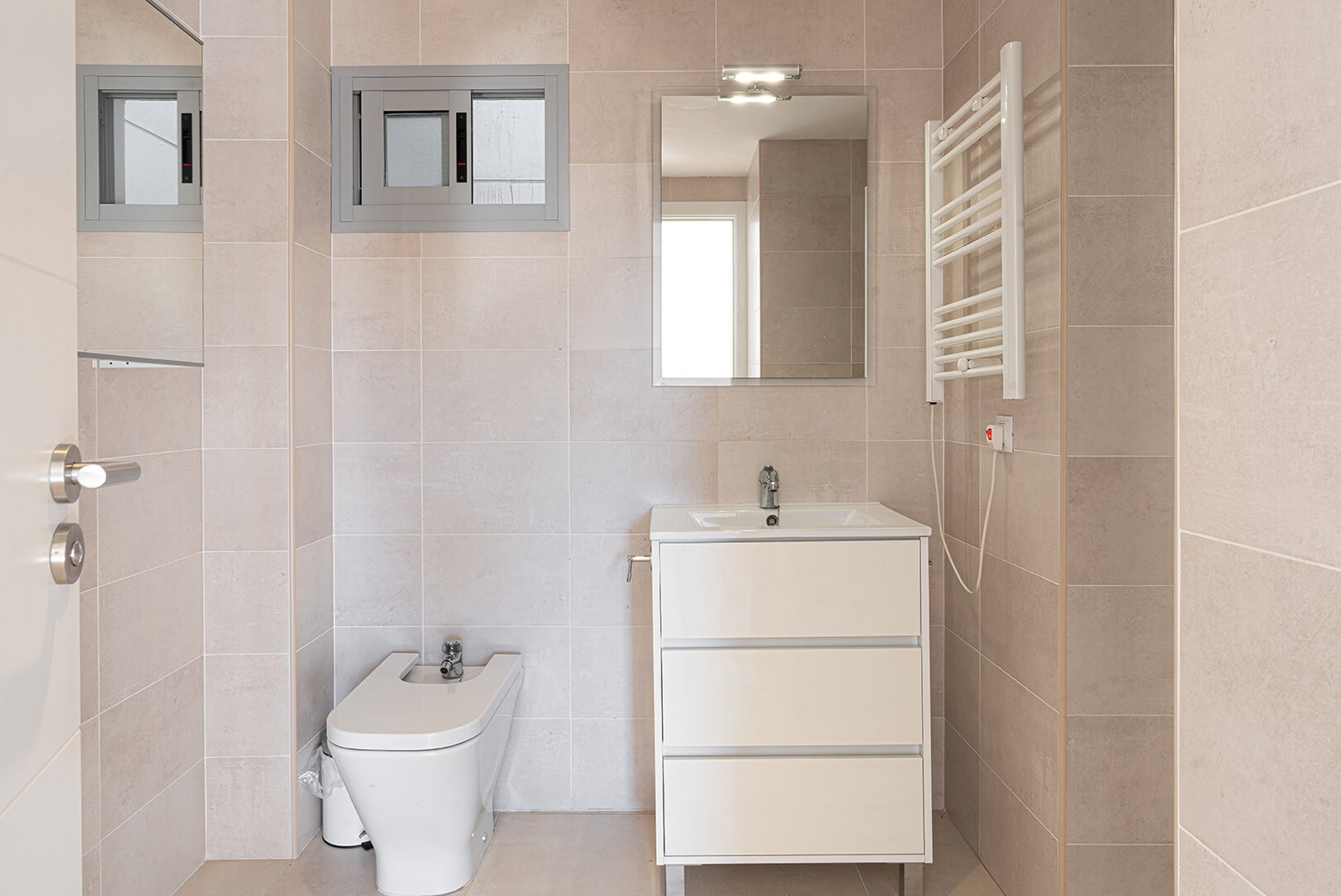 La vivienda de 96 m2 consiste de 3 dormitorios y 2 baños (uno es en-suite). Tiene un luminoso salón con acceso a la terraza de 14 m2, zona de comedor y una cocina independiente completamente equipada. Los tres dormitorios son todos dobles y con armarios empotrados. La vivienda se ha construido con materiales de buena calidad y es una propiedad ideal y muy práctica para vivir en el centro de Palma.