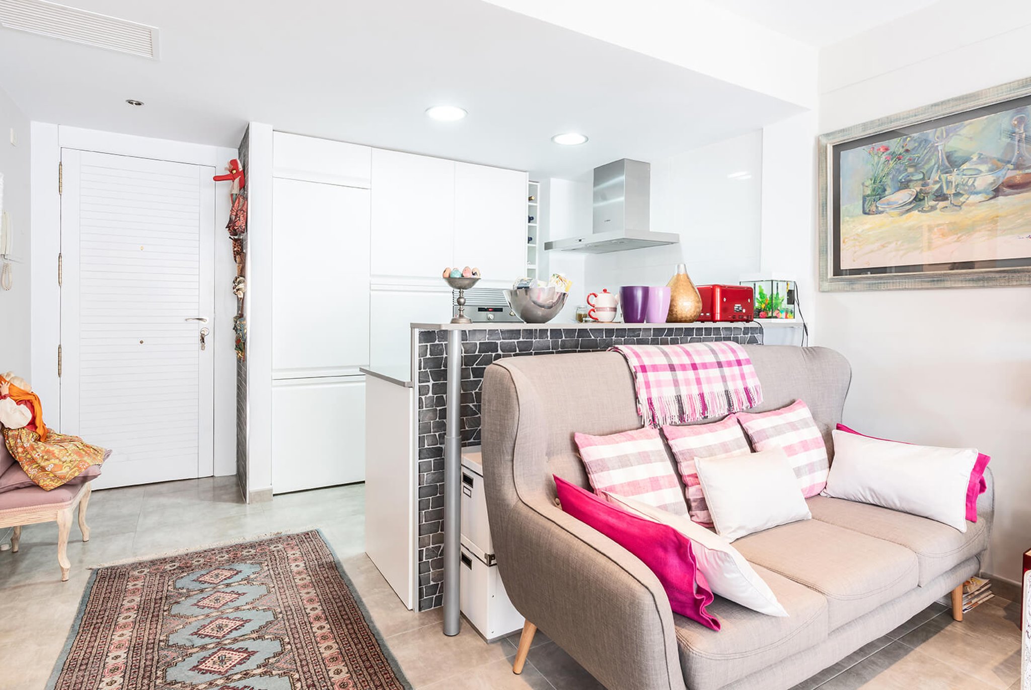Bonito piso en perfecto estado con una excelente ubicación entre Santa Catalina y Paseo Marítimo. Los metros cuadrados perfectamente usados acomodan una cocina abierta y una sala de estar, un baño con ducha, lavadora y secadora, un dormitorio con armarios empotrados y una gran terraza con sol todo el día. La cocina está equipada con electrodomésticos de Bosch. Desde la terraza hay una bonita vista al mar hasta el puerto, que está a sólo unos cincuenta metros de distancia.