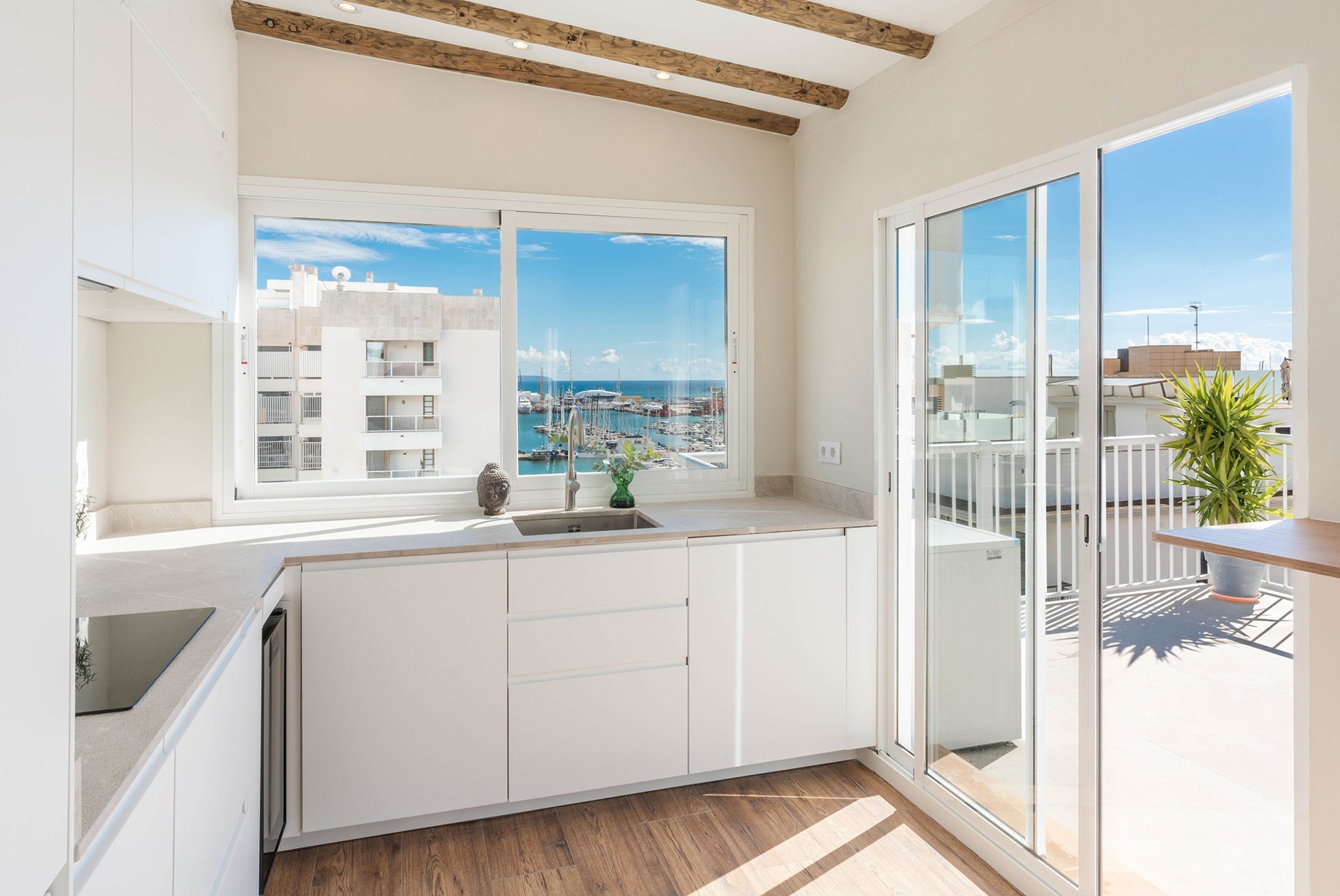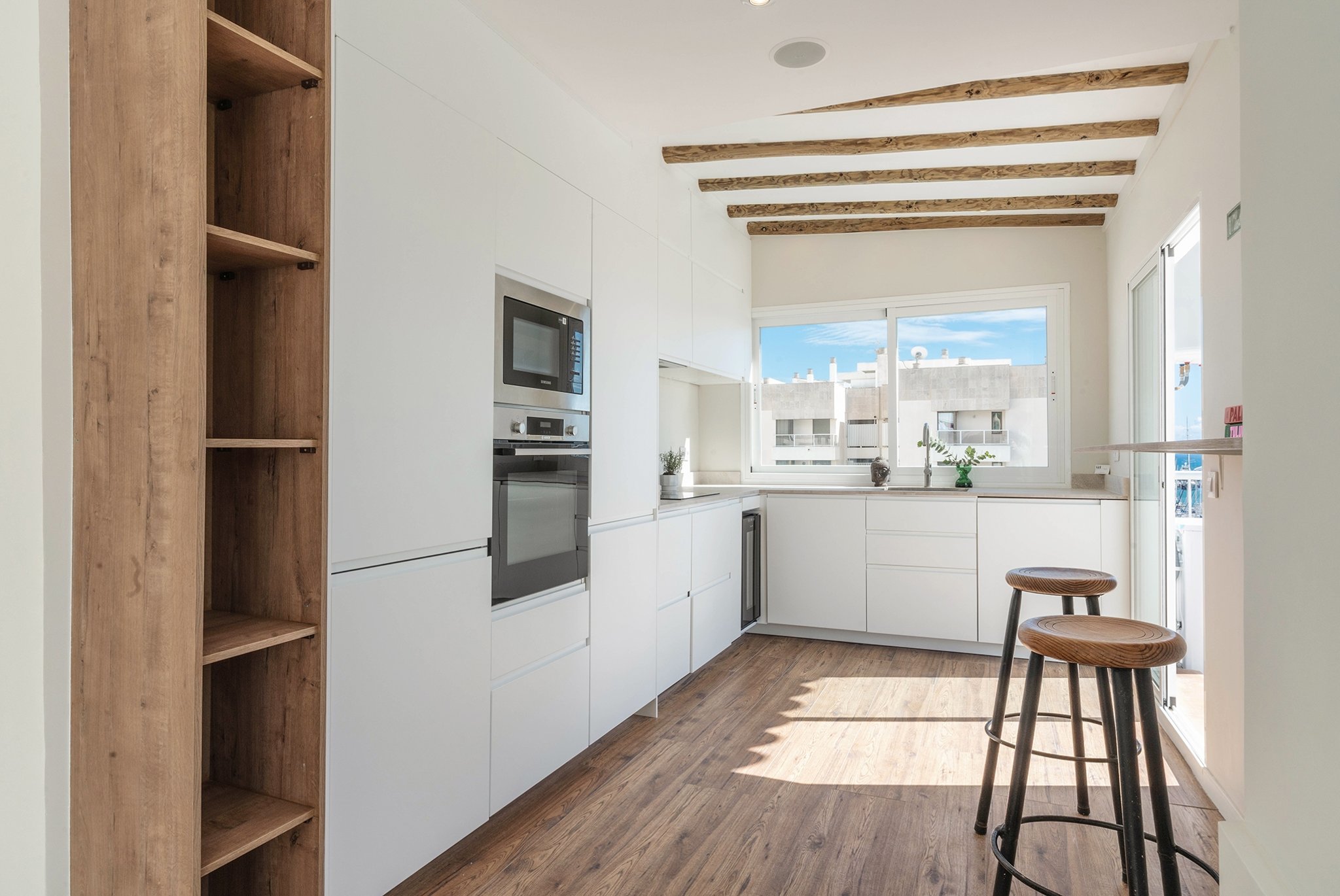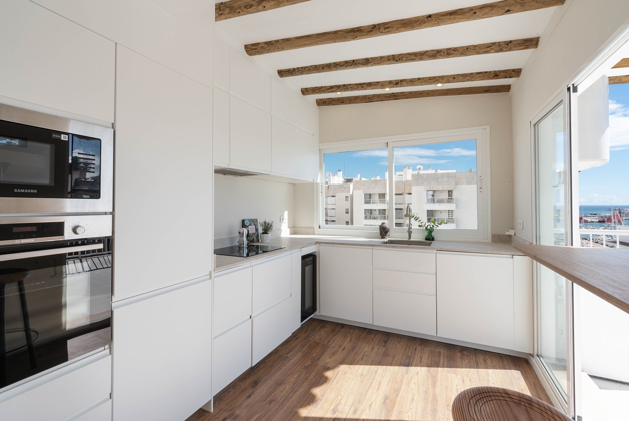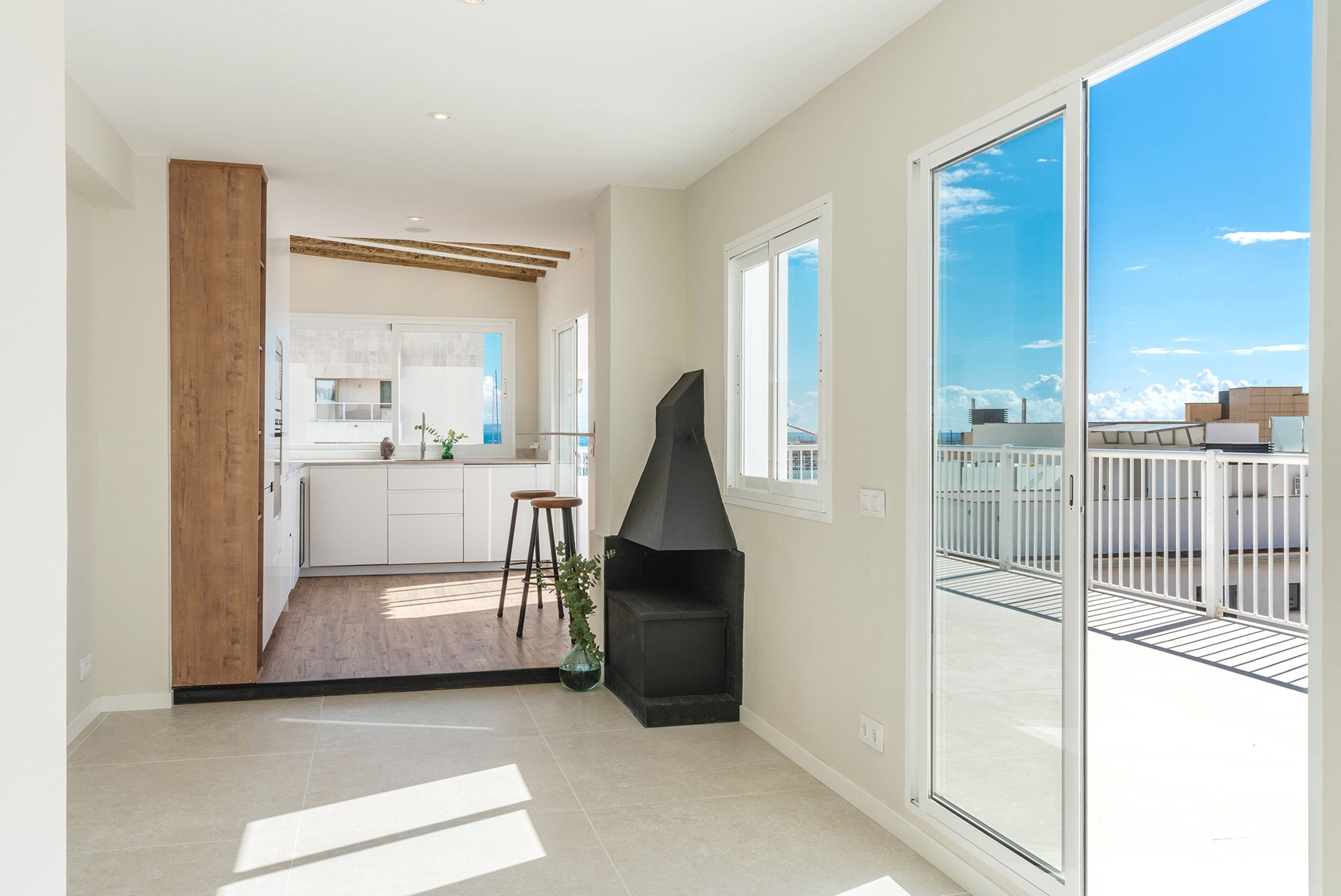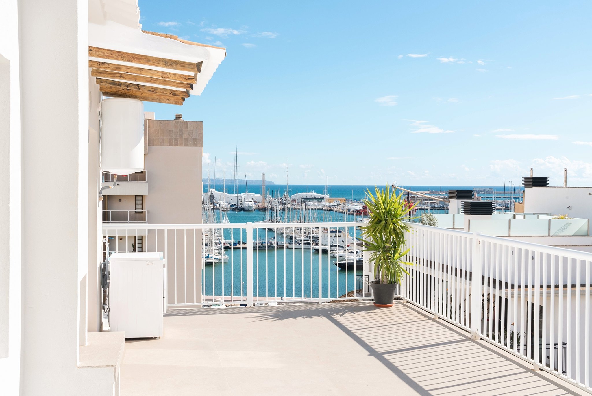 Bienvenido a este luminoso y elegante ático de 2 dormitorios en una de las zonas más codiciadas de Palma, a solo 150 metros del mar. La vivienda de aprox. 60 m² cuenta con una cocina abierta y salón que se integran perfectamente con una generosa terraza de 37 m² orientada al sur, con impresionantes vistas de la marina y el mar.