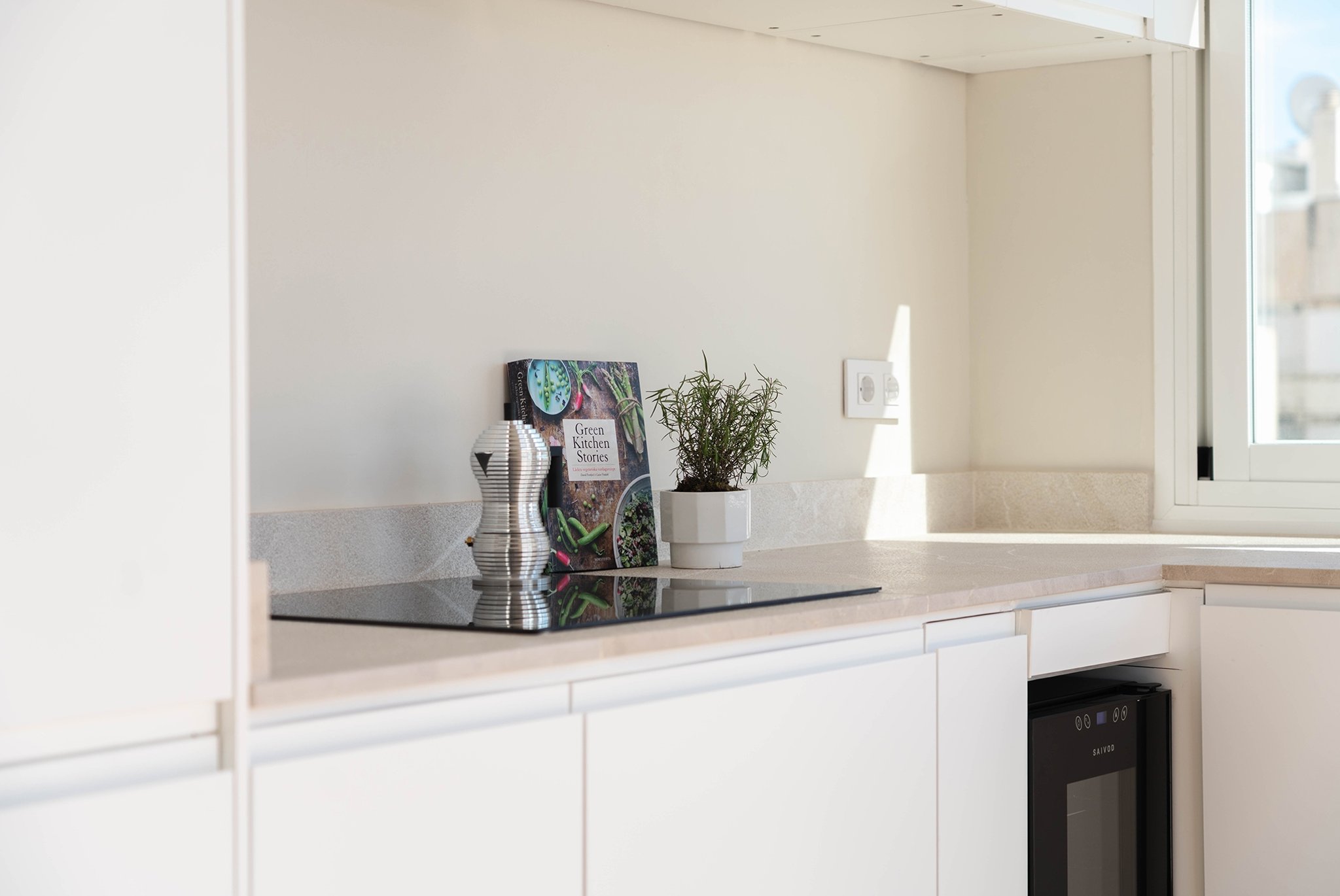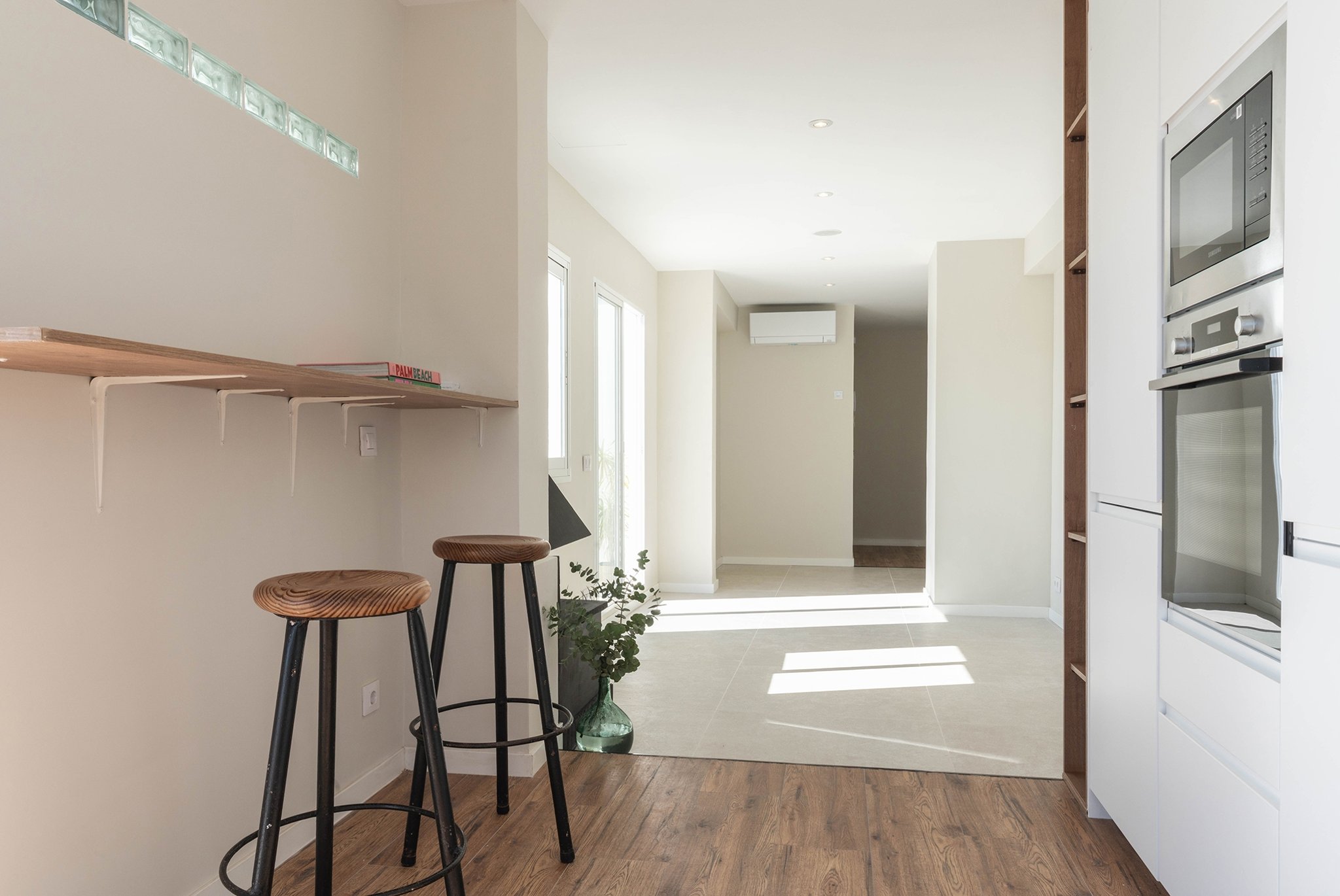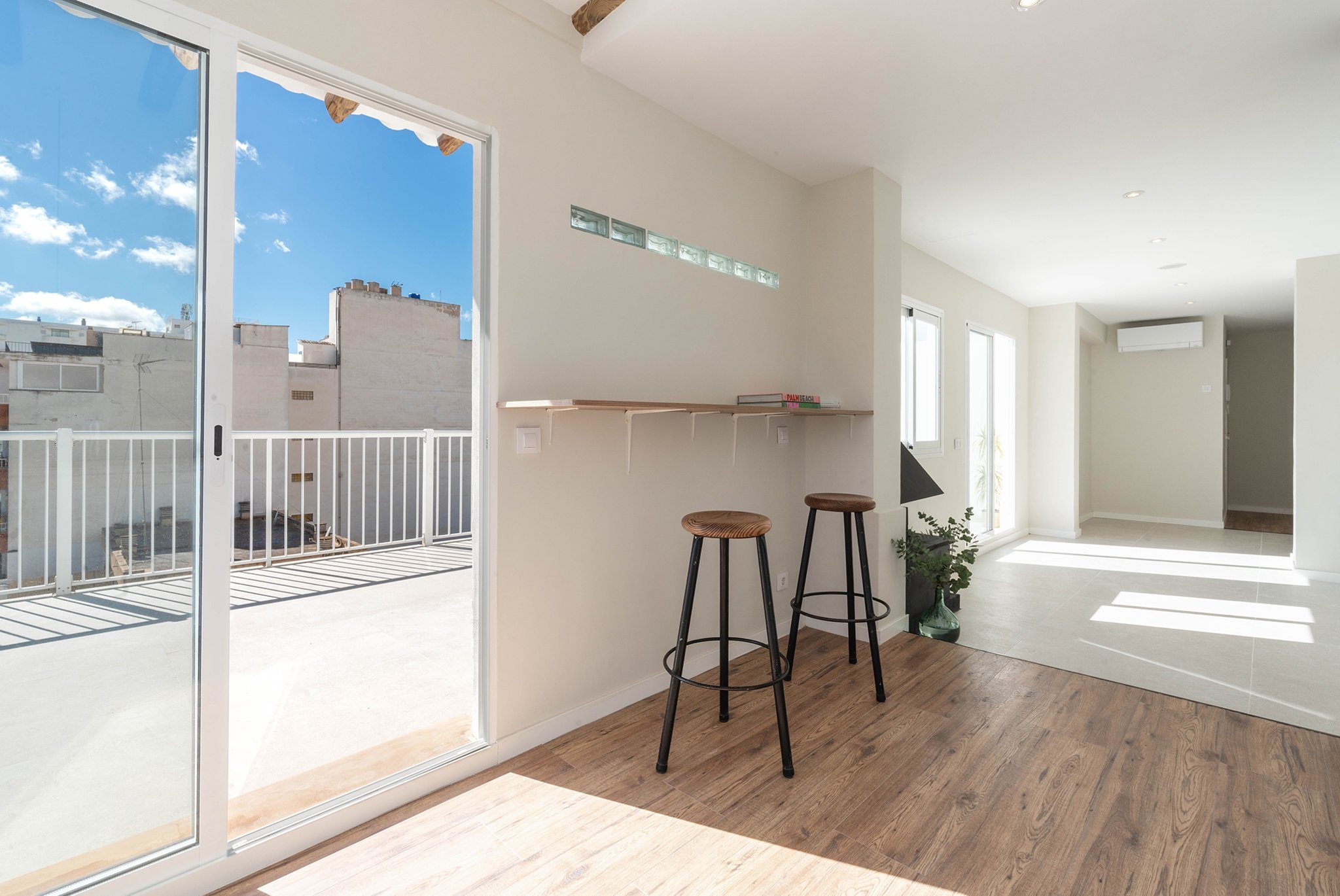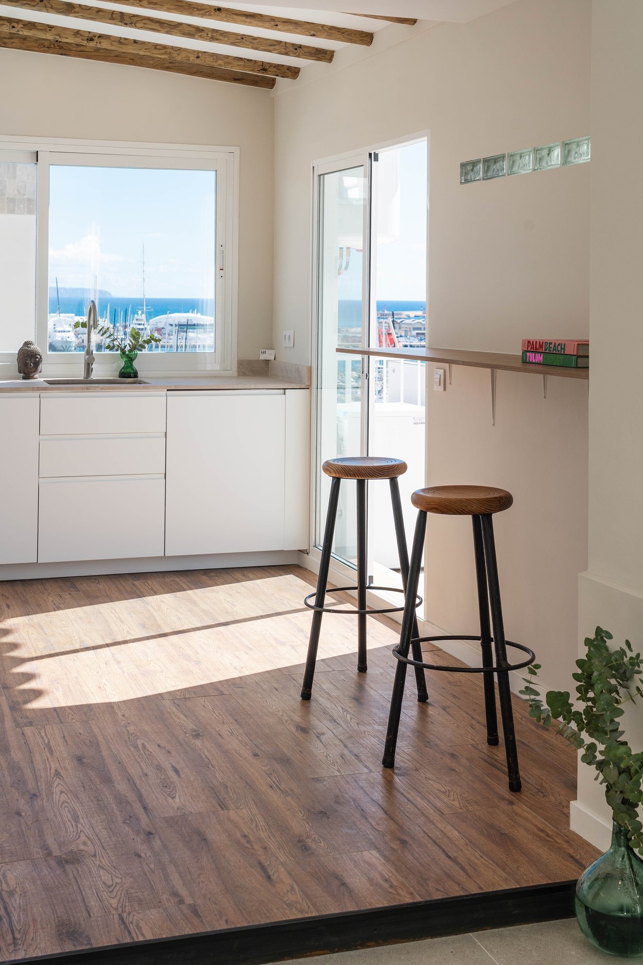 El piso combina diseño moderno con calidez, con suelos de madera, cocina completamente equipada y un baño, todo recientemente reformado con materiales de buen gusto. La terraza es perfecta para comer, relajarse o disfrutar del sol desde la mañana hasta la tarde.