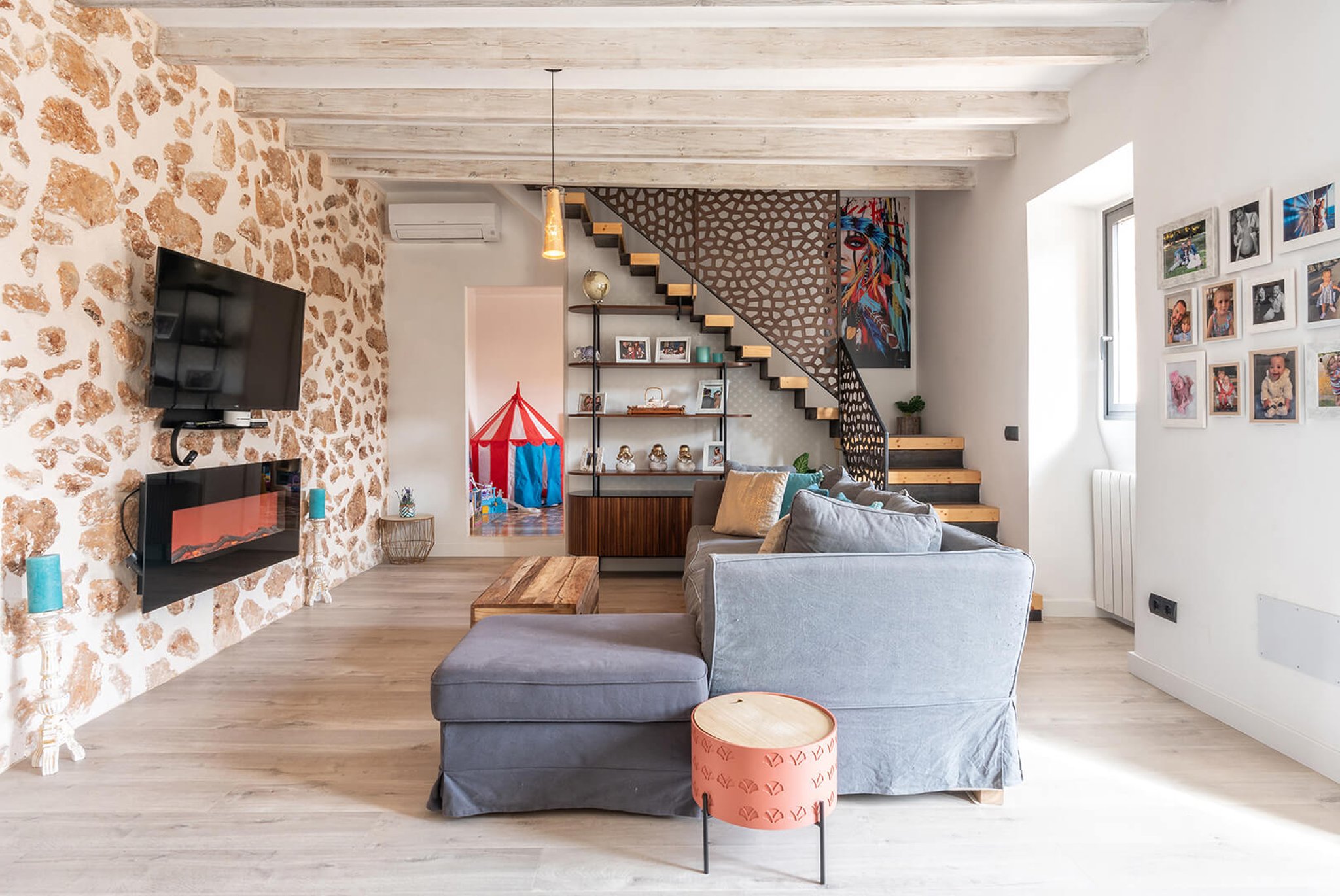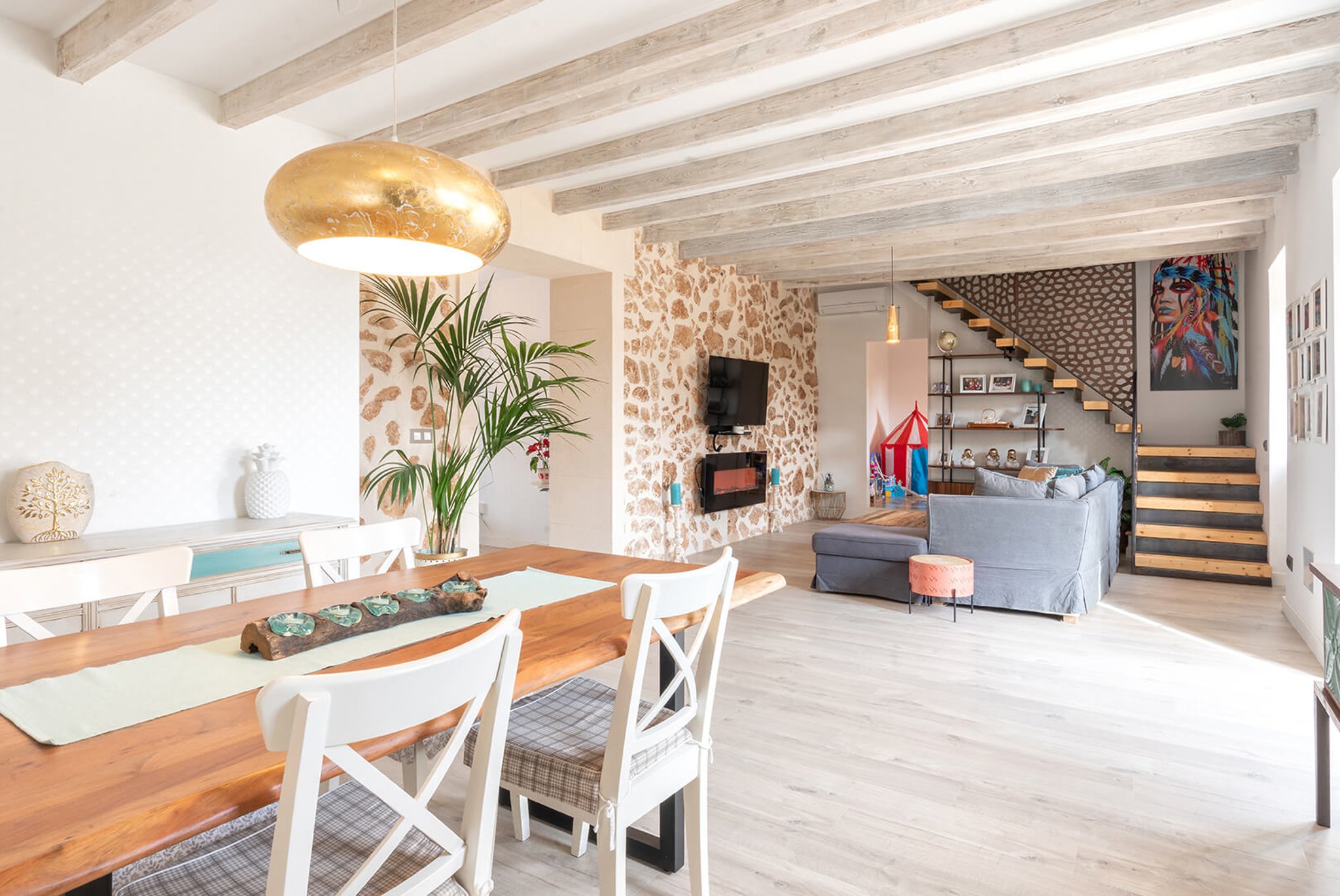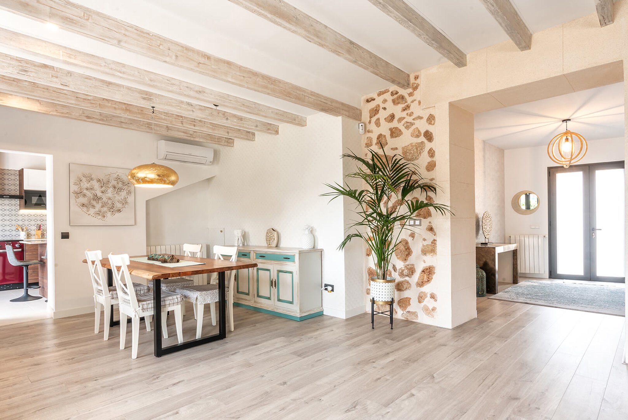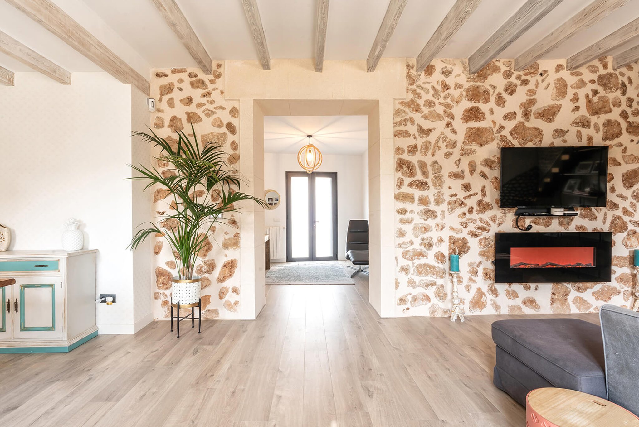 Bonita casa de pueblo situada en una zona tranquila en medio del encantador pueblo de Portol, a poca distancia al supermercado, parques infantiles, restaurantes y cafés. Esta es una casa antigua de piedra construida en dos niveles que ha sido cuidadosamente renovada durante el año pasado. La planta baja tiene todas las modernidades como suelos aislantes, calefacción central y aire acondicionado. En este nivel se encuentra el amplio salón, así como la cocina moderna y totalmente equipada. Además, hay un baño grande y dos dormitorios. En la primera planta encontramos el gran dormitorio principal que tiene baño en suite y una gran terraza. Además, aquí hay otro dormitorio.