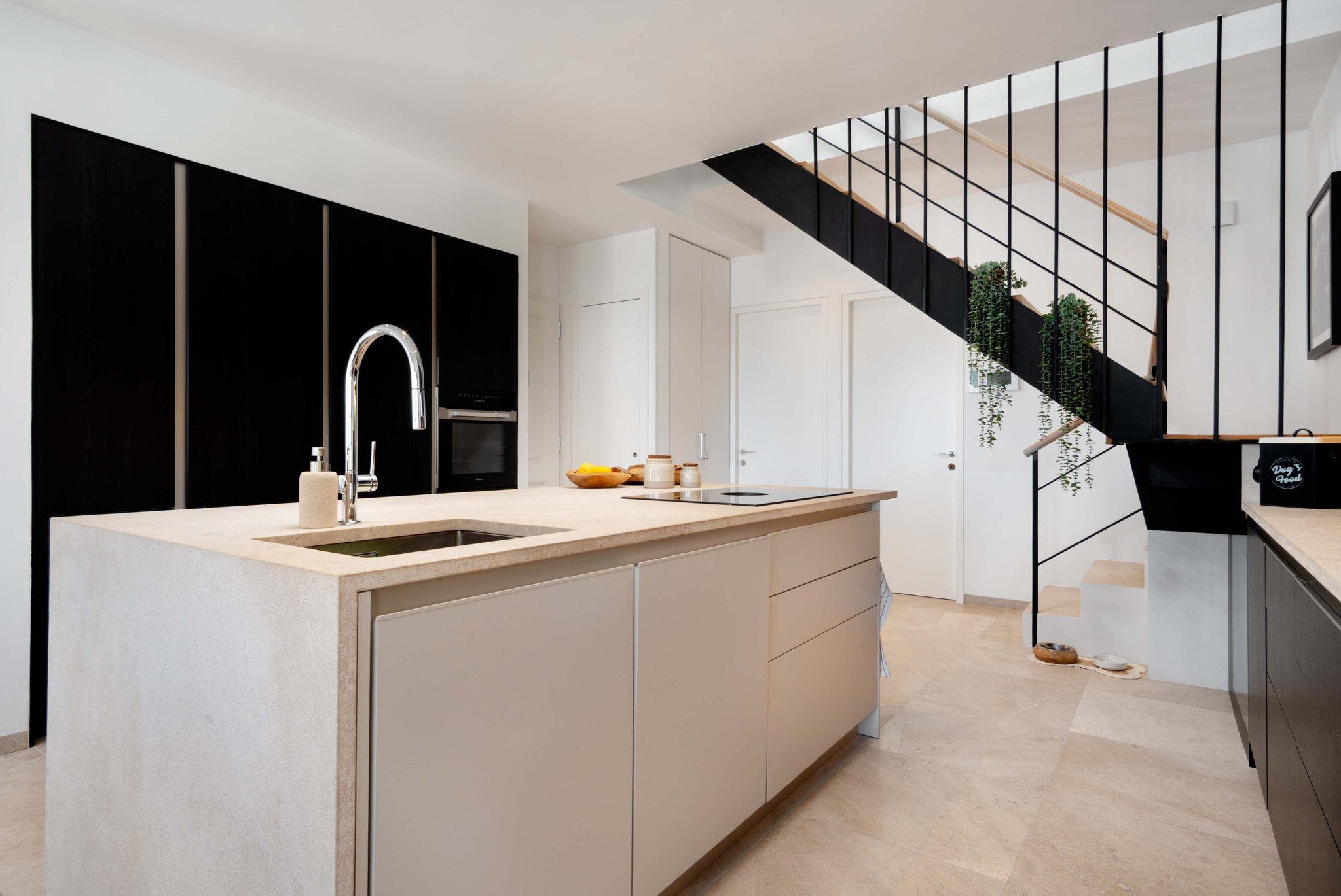 On the first floor, you will find a modern and spacious fully equipped kitchen with a kitchen island, open to a large living room. Large windows allow abundant natural light to fill the space. The apartment features high ceilings, creating a very airy and spacious feel. On this floor you will also find the three bedrooms, all with en-suite bathrooms and their own terrace.