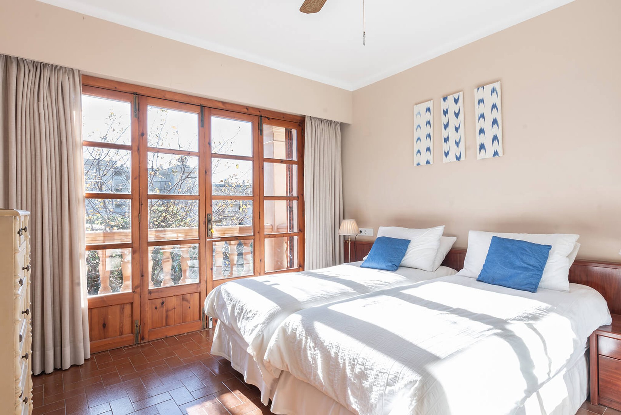 La casa tiene una superficie habitable de 250 m2 que se distribuye en dos niveles que consta de 5 dormitorios, 3 baños y 1 aseo. 2 de los dormitorios tienen baños en suite. La villa encantadora está rodeada por un hermoso jardín mediterráneo con piscina, porche y garaje cubierto. A la planta baja se accede a través de una gran entrada, que se abre a un gran salón y un comedor ambos con grandes ventanales que dan al jardín y puertas de porche que también dan a la terraza pavimentada. La cocina está totalmente equipada y tiene su propia área de desayuno y un lavadero. Dos de los dormitorios se encuentran en la planta baja, uno de ellos con 1 baño en suite. Hay un aseo adicional para invitados. El primer piso contiene 3 dormitorios, el dormitorio principal tiene un baño en suite y un vestidor. Los otros 2 dormitorios de este nivel comparten un baño y 2 de los dormitorios tienen su propia terraza.