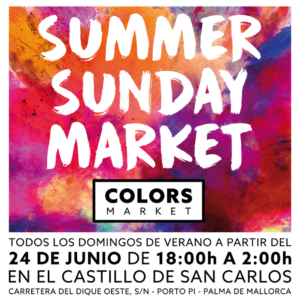 With the soul of a meeting point, and the heart of a pop up market, Colors Market welcomes you to delight in the unique settings of the Castle San Carles, every Sunday the whole summer in Palma. Here you will find genuine articles from the island, handicraft, design, and an interesting gastronomic offer, eco and km 0, as well as activities for the children, live music and DJ:s.