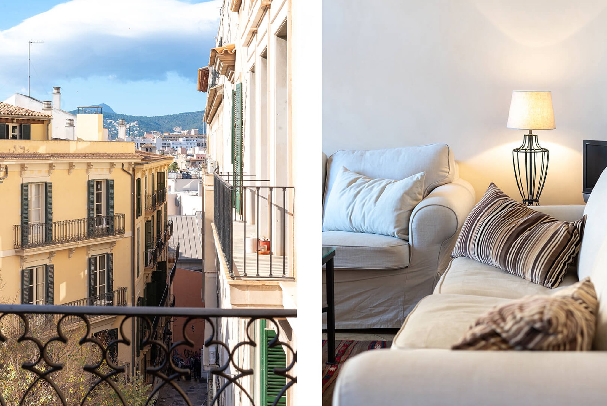 The home has a modern kitchen and bathroom, built-in air conditioning with hot and cold air in all rooms and a nice original floor in the large living room and master bedroom. Two of the bedrooms are located towards the back of the building and therefore you sleep undisturbed without the city noise outside. The kitchen, living room and the main bedroom face the mountains to the west and have lovely afternoon sun. From the two French balconies you have a lovely view of the pedestrian street below as well as other beautiful buildings and the cathedral.