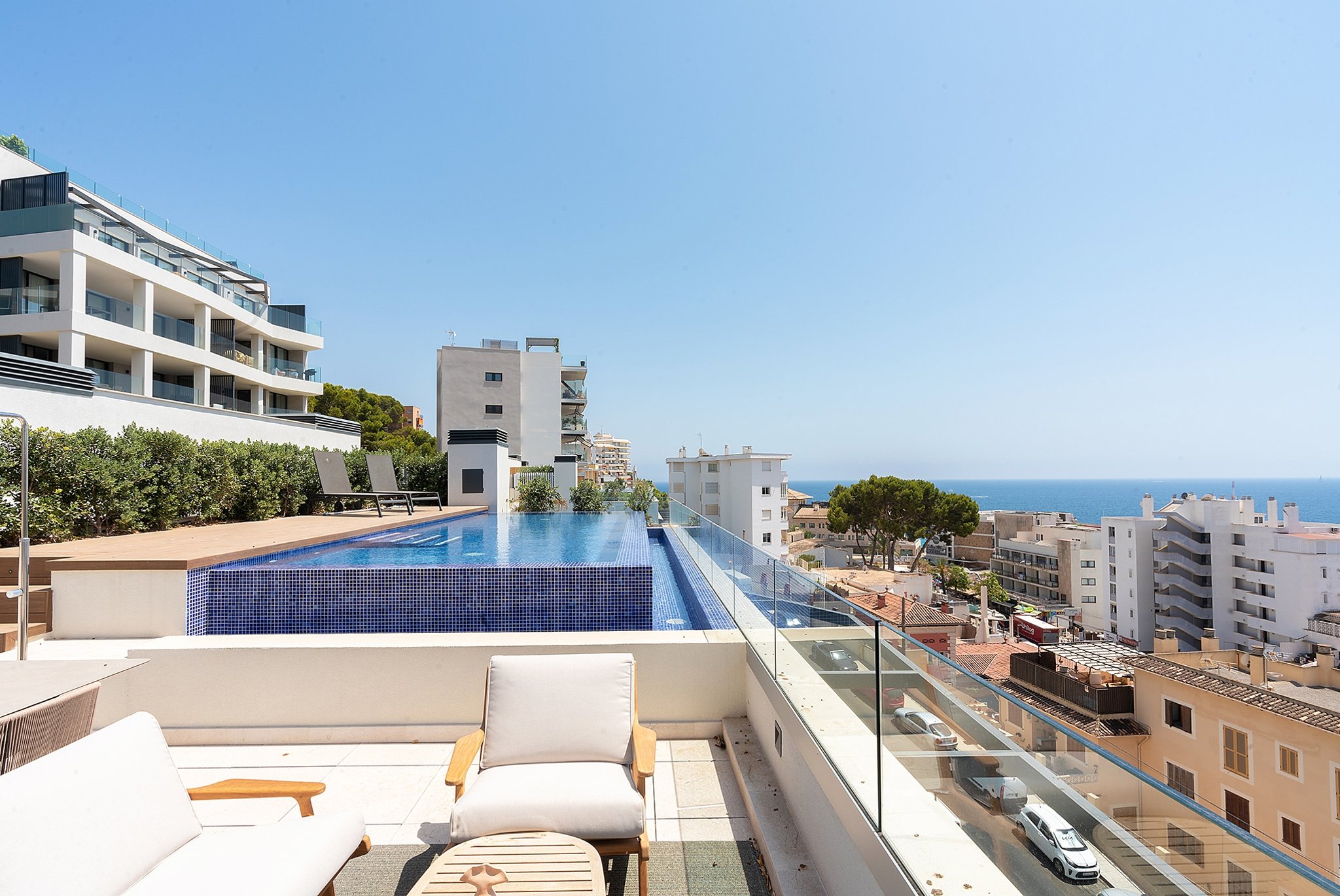Newly built penthouse with private rooftop terrace, pool and sea view in Cala Major
