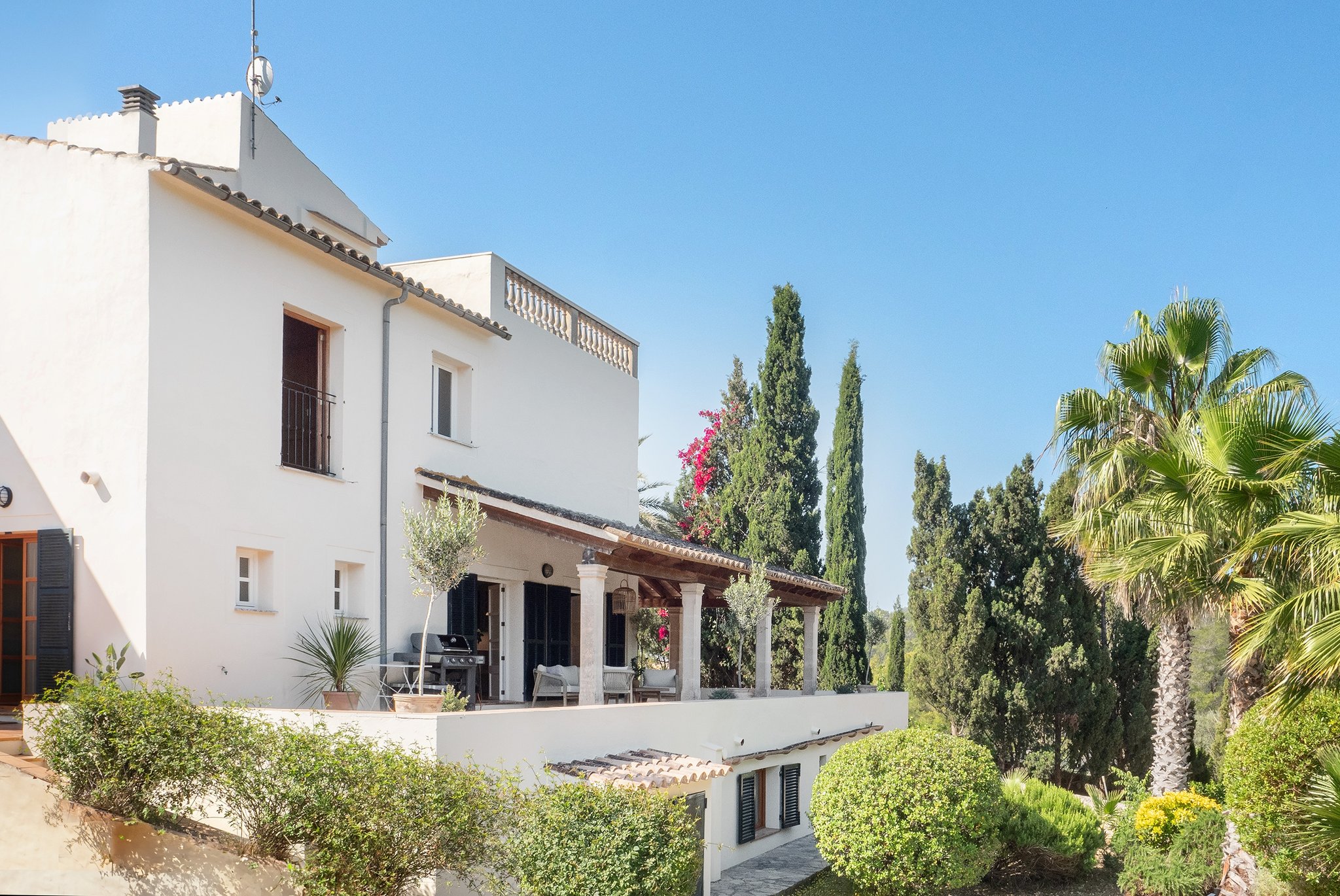 I det sjarmerende Son Rapinya, like utenfor Palma, finner du denne unike villaen. Her bor du bare noen minutters kjøring fra Palma sentrum og de koselige bydelene Son Espanyolet og Santa Catalina. Området tilbyr også nærhet til flere internasjonale skoler, butikker, restauranter og kafeer.