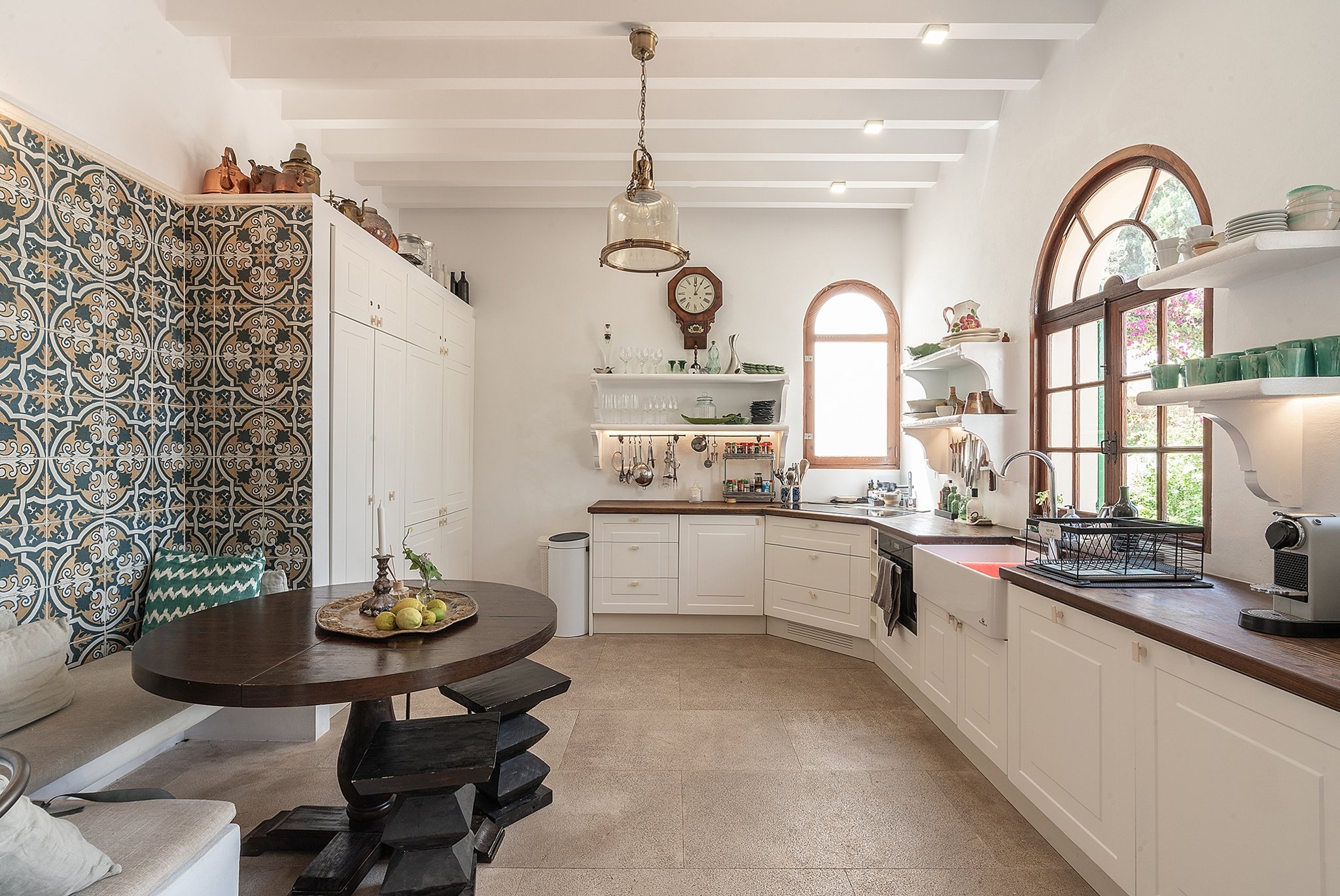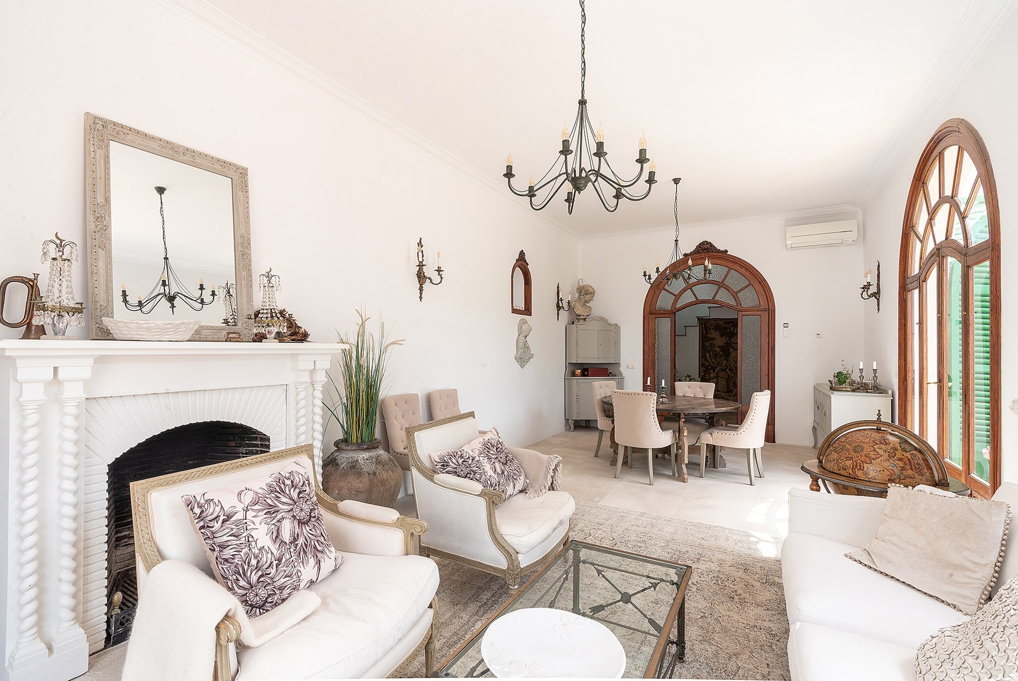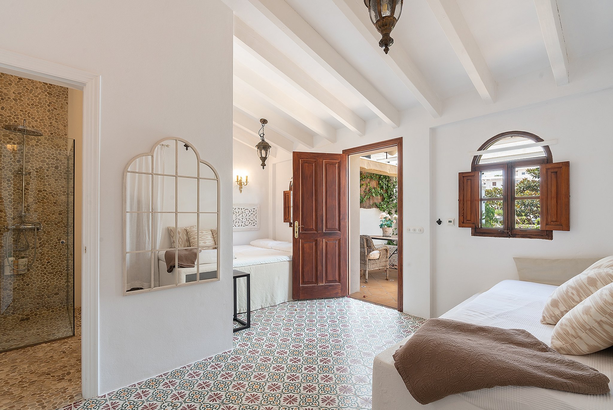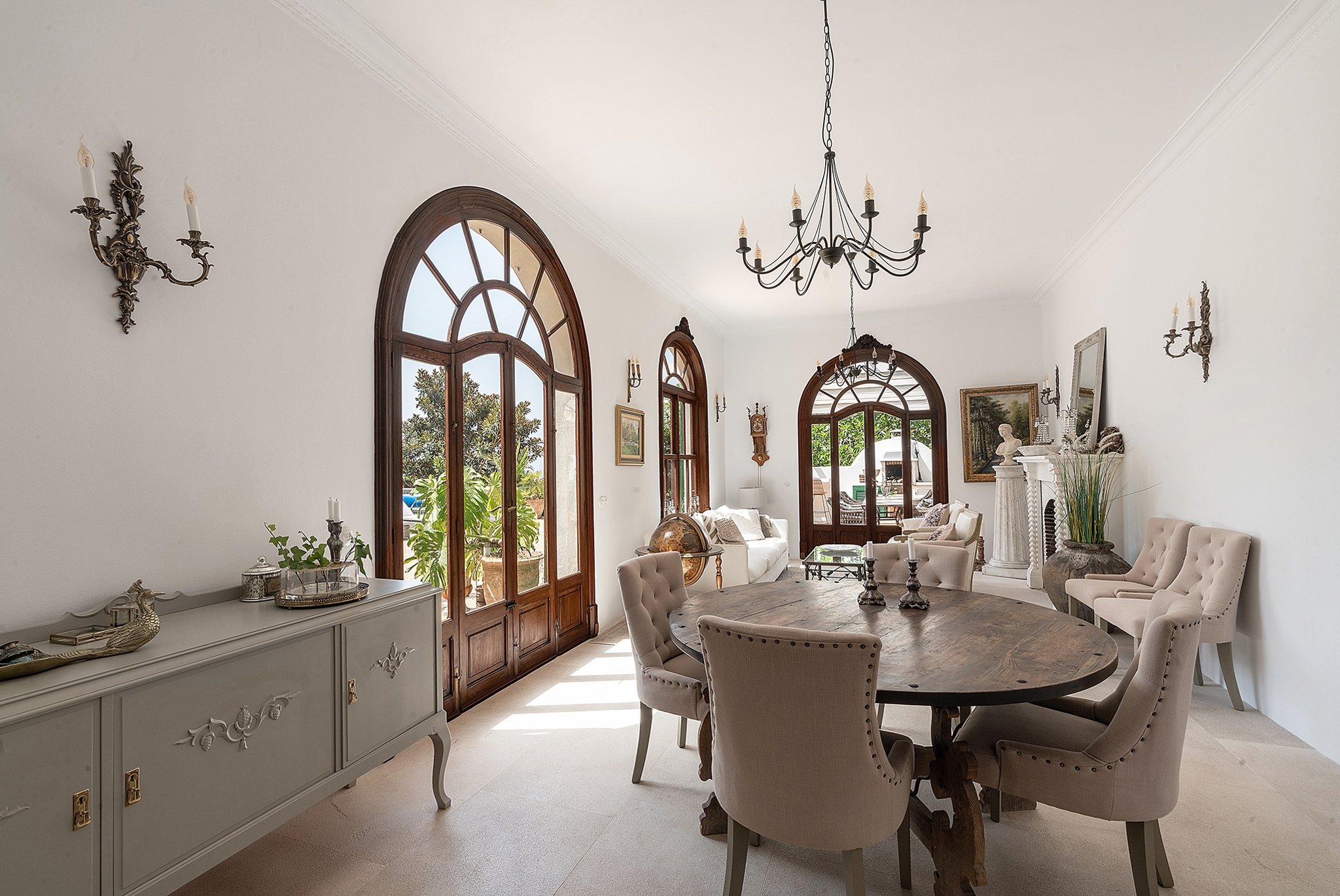 Denna unika och förtrollande villa är belägen bara några steg från den natursköna sandstranden i Cala Major, precis utanför Palma stad.Det magnifika huset, som har anor från 1920-talet, genomgick en omfattande renovering år 2018, där man varsamt bevarade antika och karaktärsfulla detaljer samtidigt som man tillförde moderna inslag. Den oemotståndligt charmiga villan nås genom en privat grind, där man färdas längs en allé omgiven av frodiga växter och vackra fruktträd, vilket leder fram till parkeringsområdet med plats för upp till fem bilar. Dessutom finns det en elegant garagebyggnad. Villan kan nås genom att man promenerar uppför en vacker stentrappa.