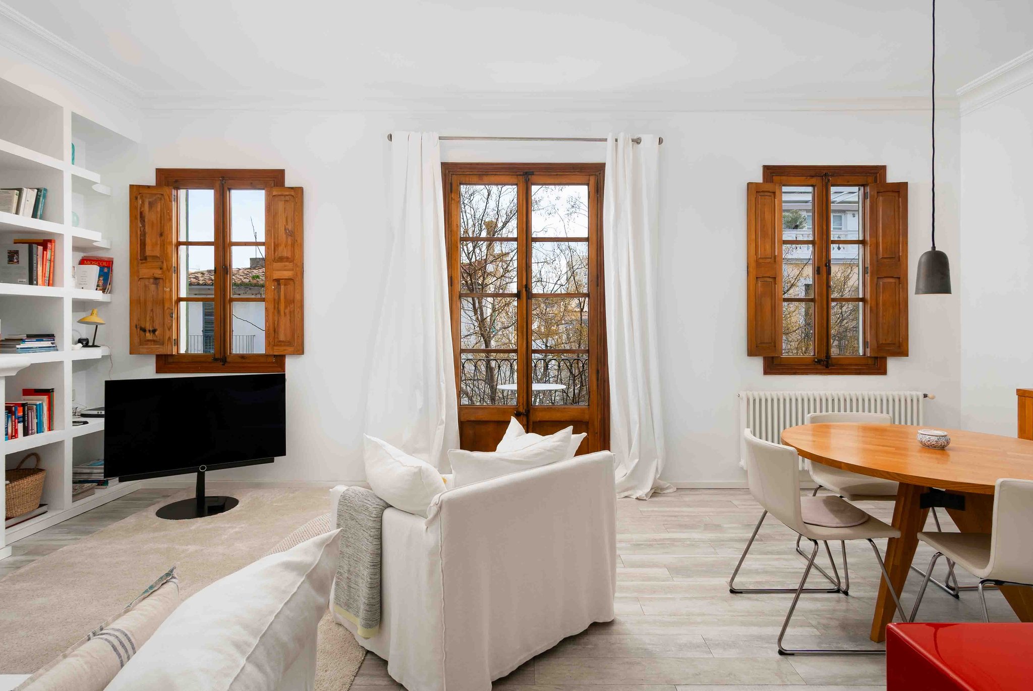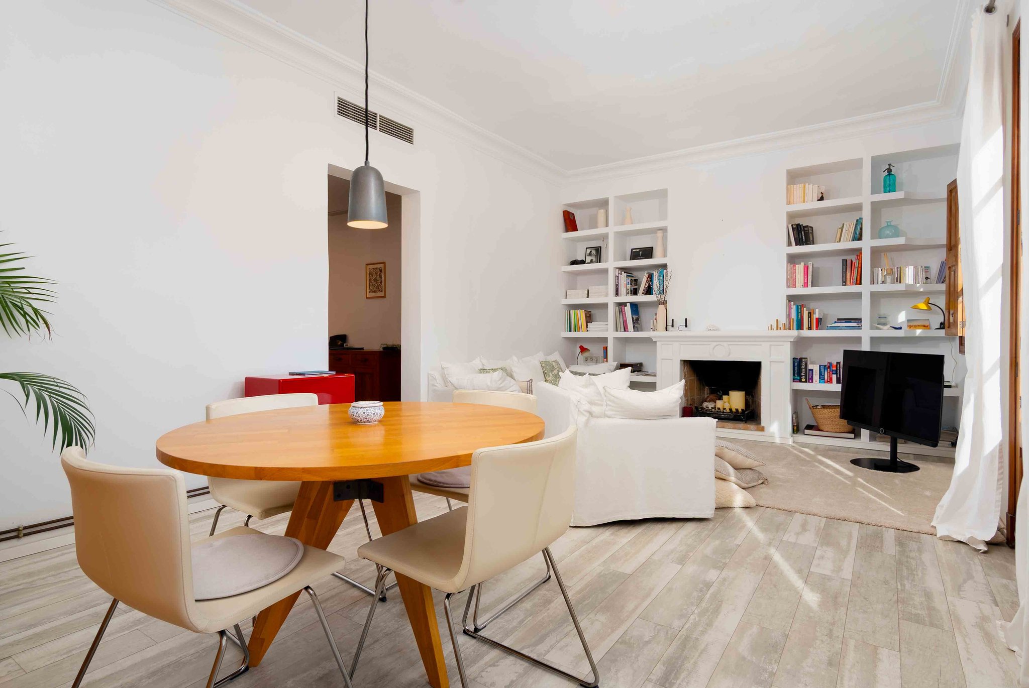 Lägenheten har en boyta på 104 m2, fördelat över ett fullt utrustat kök och ett ljust och rymligt vardagsrum med eldstad. Här har du även en lite mindre balkong med plats för ett litet bord och två stolar.