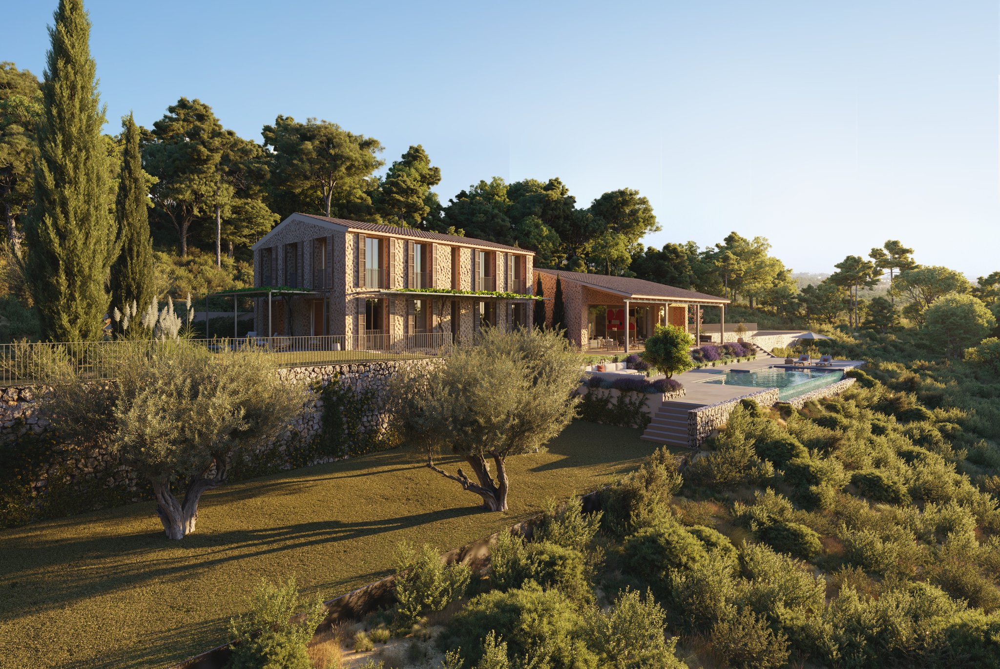 I Bunyola växer denna exklusiva villa fram, i fantastisk natur med vacker utsikt över bergen. Här kombineras absolut högsta kvalitet med en klassisk Mallorkinsk touch.