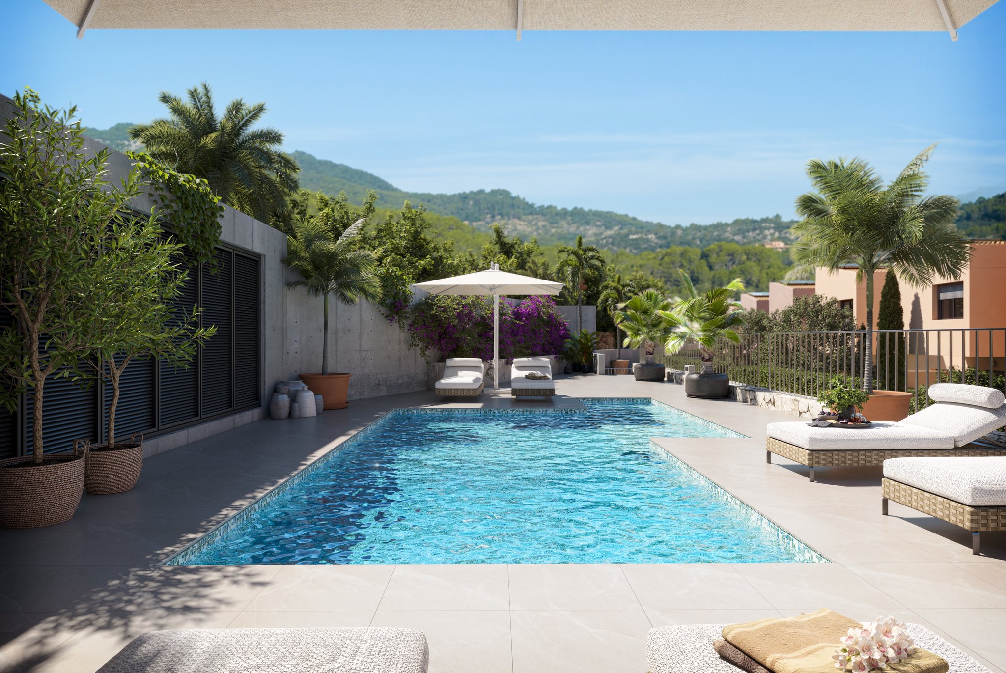 Dessa 13 townhouse i två våningar ligger i Esporles, en pittoresk by i hjärtat av Tramuntanabergen, och är en perfekt blandning av traditionell charm och moderna bekvämligheter. Omgivna av historiska villor och lummiga trädgårdar erbjuder detta projekt en lugn och naturskön boendeupplevelse.