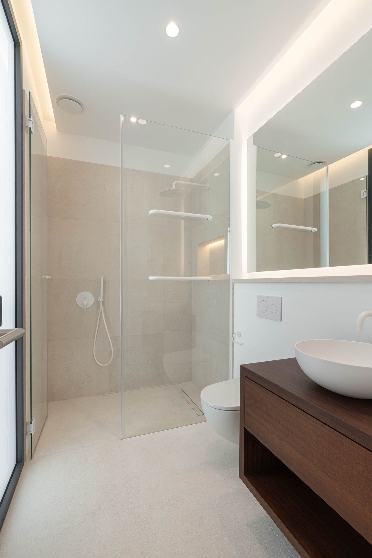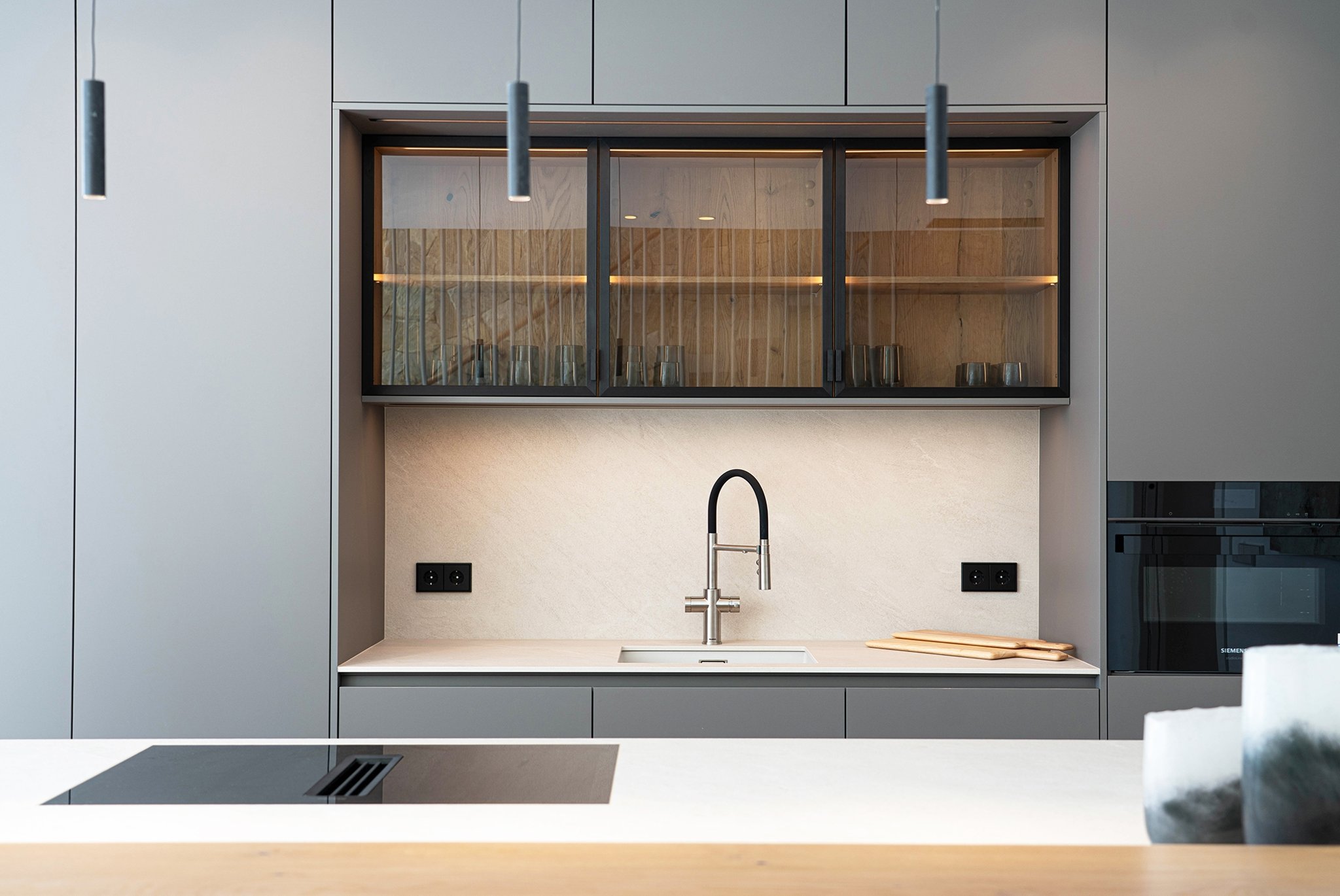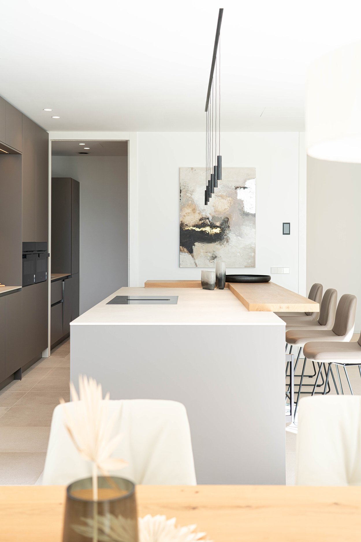 Bostäderna håller genomgående hög standard med kök från LEICHT samt vitvaror från Miele och Siemens. Panoramafönster släpper in rikligt med ljus och komforten är maximal med AC, golvvärme, KNX-hemutomationssystem, fullt utrustade tvättstugor och privat parkeringsplats. Golven i natursten och ekparkett bidrar till en exklusiv och harmonisk känsla genom hela hemmet.