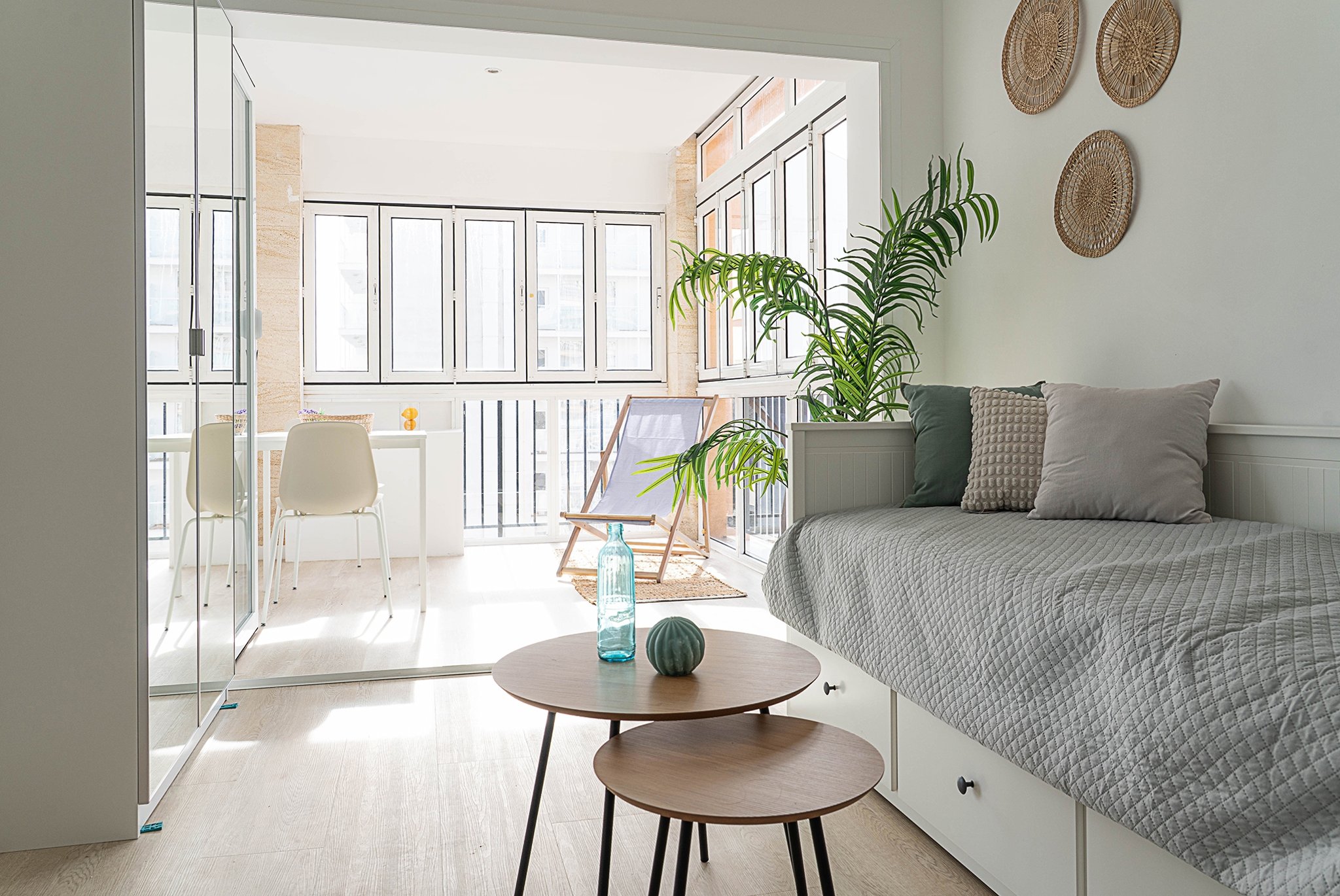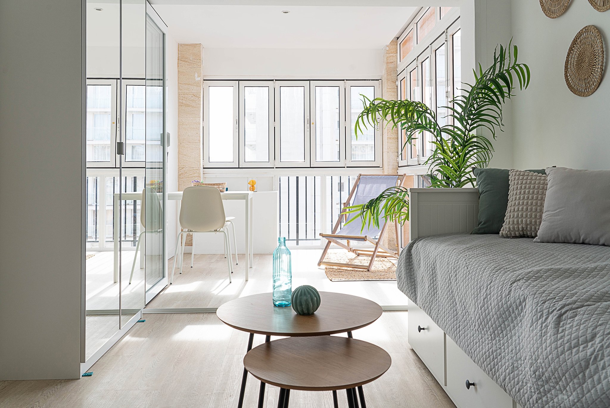 Lägenheten har nyligen genomgått en totalrenovering med fokus på stil och funktion. Den erbjuder en boyta om 24 m² samt en härlig inglasad terrass på 9 m², som förlänger bostaden och skapar en luftig känsla. Planlösningen är öppen och väl genomtänkt, med hall, kök, vardagsrum, sovdel och matplats i ett. De stora fönsterpartierna släpper in rikligt med naturligt ljus och bidrar till en modern och inbjudande atmosfär.