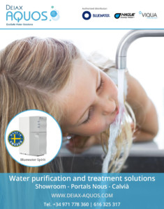 Det svensk-mallorkinska företaget DEIAX-AQUOS ® specialiserar sig i högteknologiska metoder för att kunna erbjuda dricksvatten på ett säkert och hållbart sätt. Deras service inkluderar analys av vatten, rådgivning, installation av vattenrenare såväl som underhåll.De erbjuder också vattenautomater bland andra produkter från det svenska varumärket Bluewater® som de är officiella och auktoriserade leverantörer av på Balearerna.