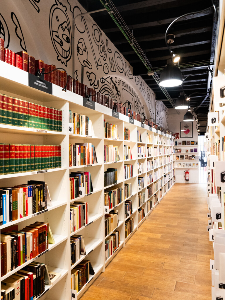 En av världens 20 bästa bokhandlare enligt Financial Times. Uppkallad efter en novell av Borges, är La Biblioteca de Babel en plats där du kan njuta av litteratur och vin i en historisk miljö med över 25 000 böcker och ett mysigt café med uteservering. Böckerna är huvudsakligen på spanska och katalanska, men de har även en internationell avdelning. De anordnar också andra aktiviteter såsom konserter och bokpresentationer.