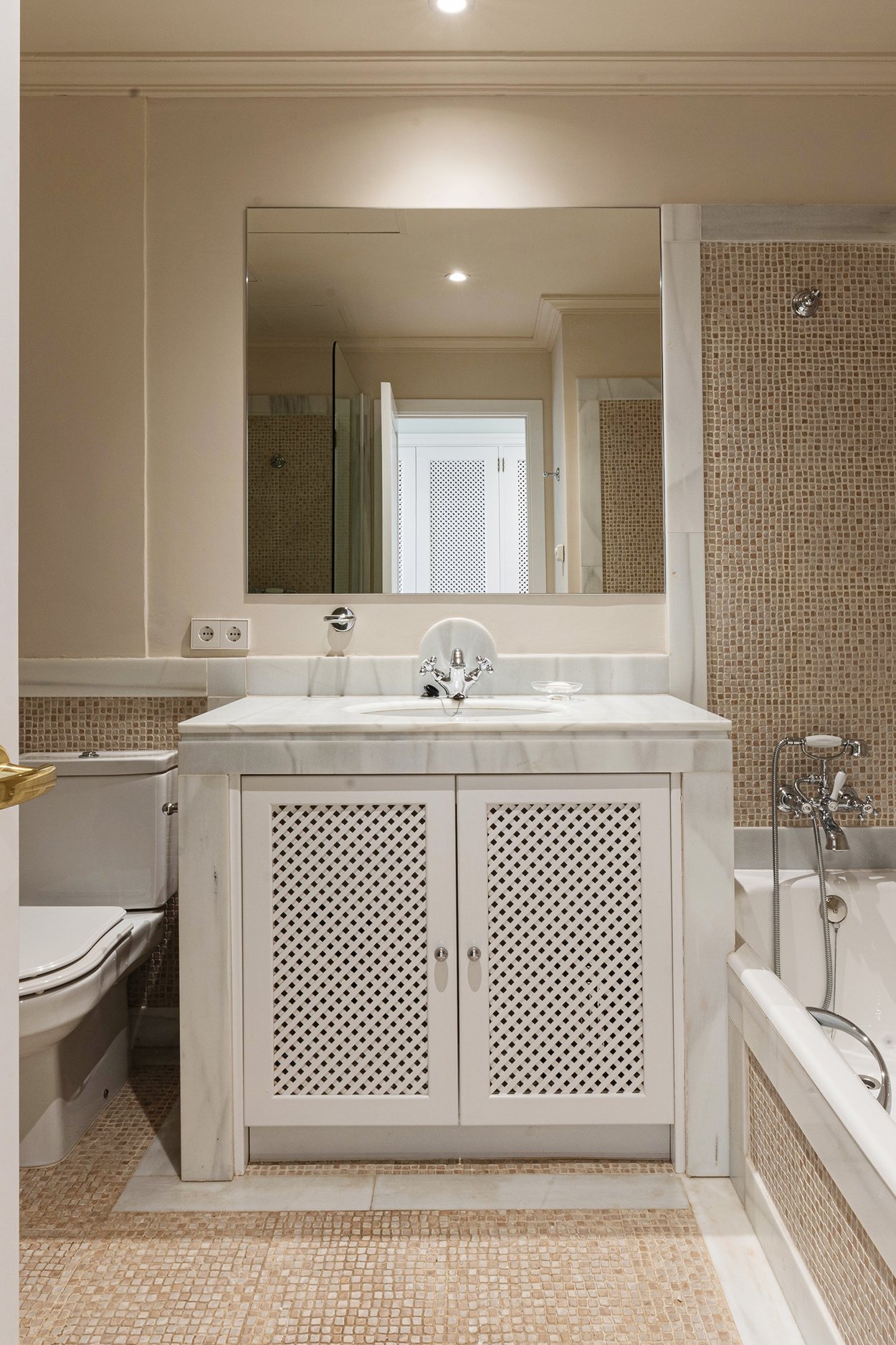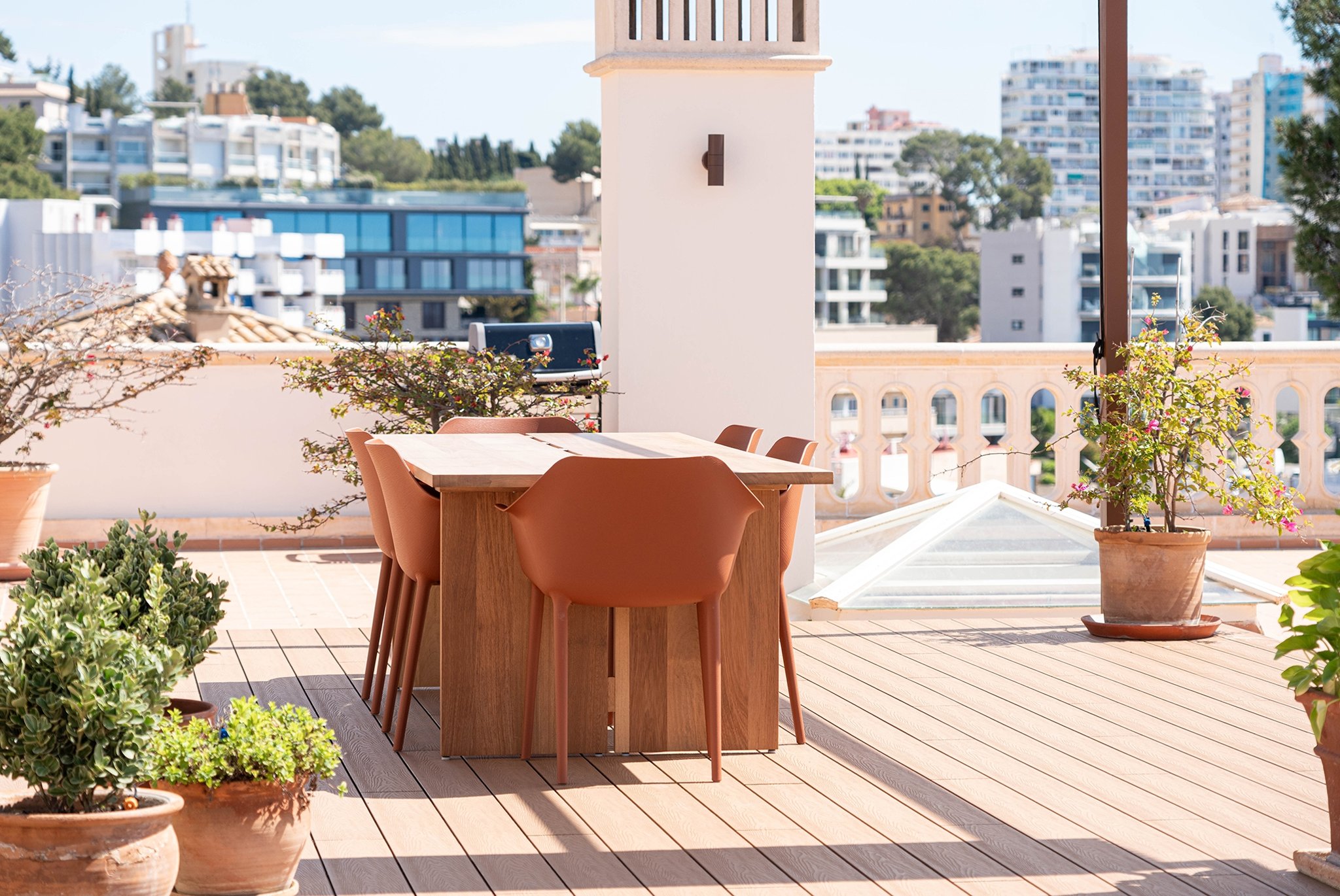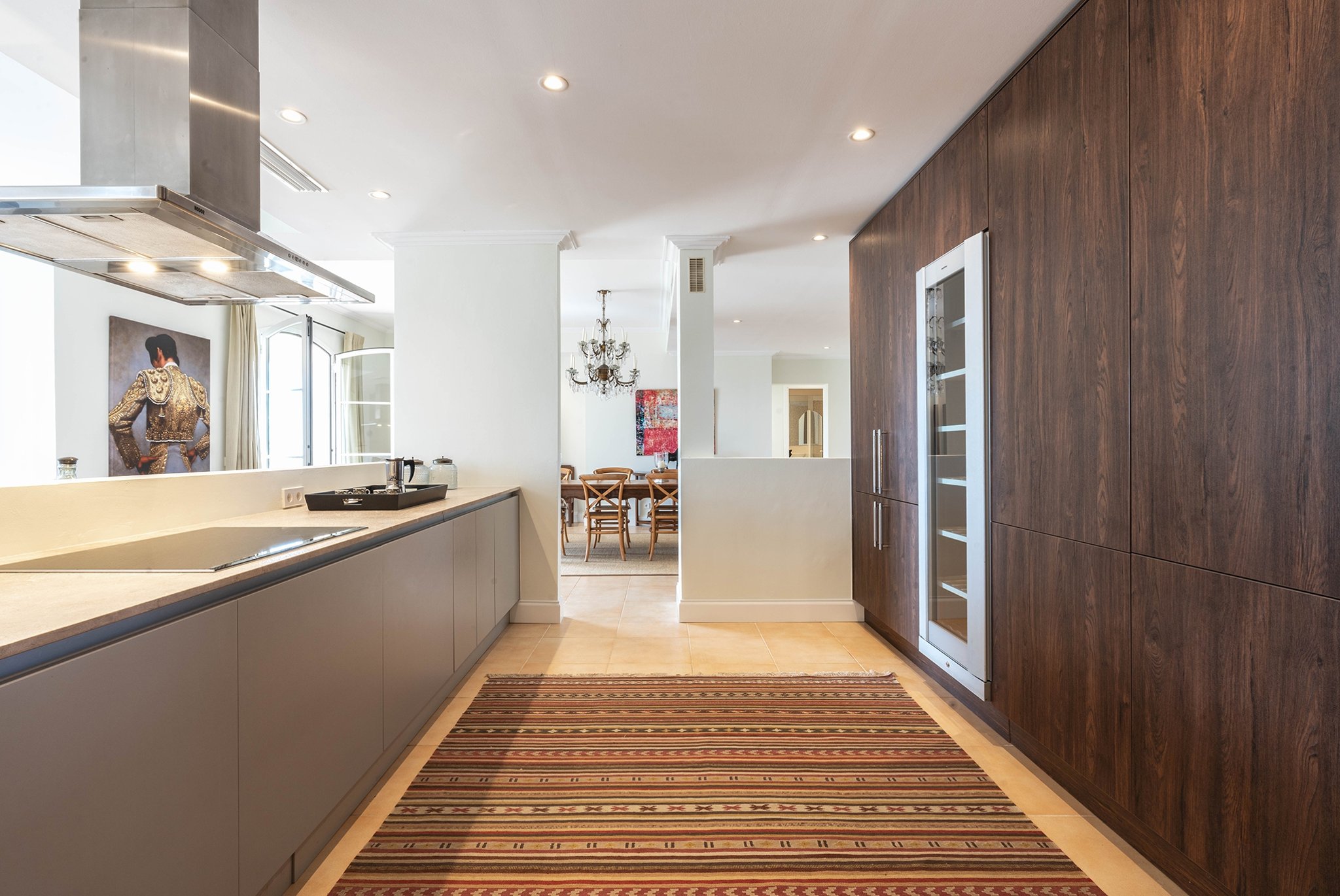 Das Penthaus bietet 253 m² Wohnfläche, aufgeteilt in vier großzügige Schlafzimmer, drei Badezimmer (zwei davon en-suite), ein Gäste-WC, eine hochwertige und voll ausgestattete Küche sowie ein großes und helles Wohnzimmer mit Essbereich. Entworfen vom bekannten Architekten Luis von Waberer, besticht die Immobilie durch einen durchdachten Grundriss und elegante Details auf der gesamten Wohnfläche.