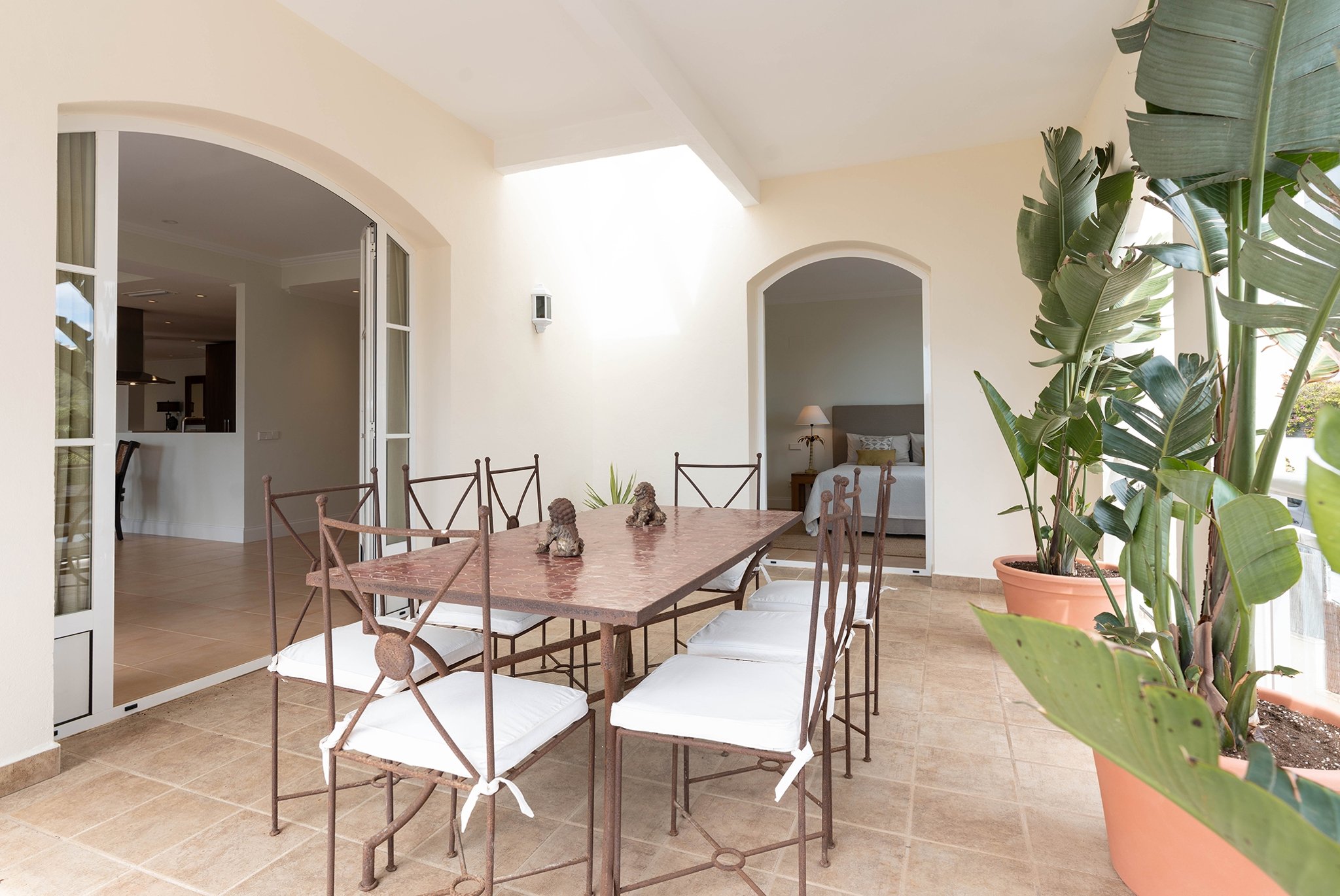 Von einem der Schlafzimmer sowie vom Wohnzimmer aus gelangen Sie auf eine 15 m² große Terrasse. Außerdem führt eine Treppe vom Wohnzimmer hinauf zur privaten Dachterrasse, die beeindruckende 260 m² misst. Die gesamte Wohnung ist von Tageslicht durchflutet und ausgestattet mit sorgfältig ausgewählten Materialien, Details wie rundbogigen Balkontüren und hellen Oberflächen, die eine einladende und stilvolle Atmosphäre schaffen. Den Bewohnern steht außerdem ein gemeinschaftlicher Poolbereich sowie ein Fitnessstudio zur Verfügung.