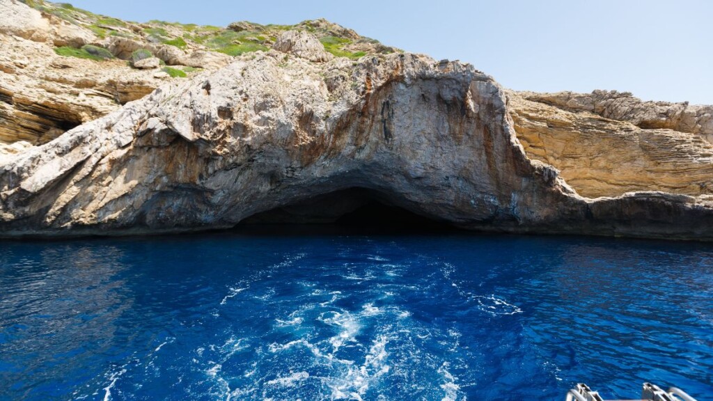 With the clear bottom, the sea gets a dreamy blue color that gives the cave its name. Especially when the sun is going down and reaching the inside of the cave and filling it with light. Bring your snorkel and enjoy the spectacle of the sea. A dip in the crystal clear waters of the Mediterranean is the perfect end to the day.