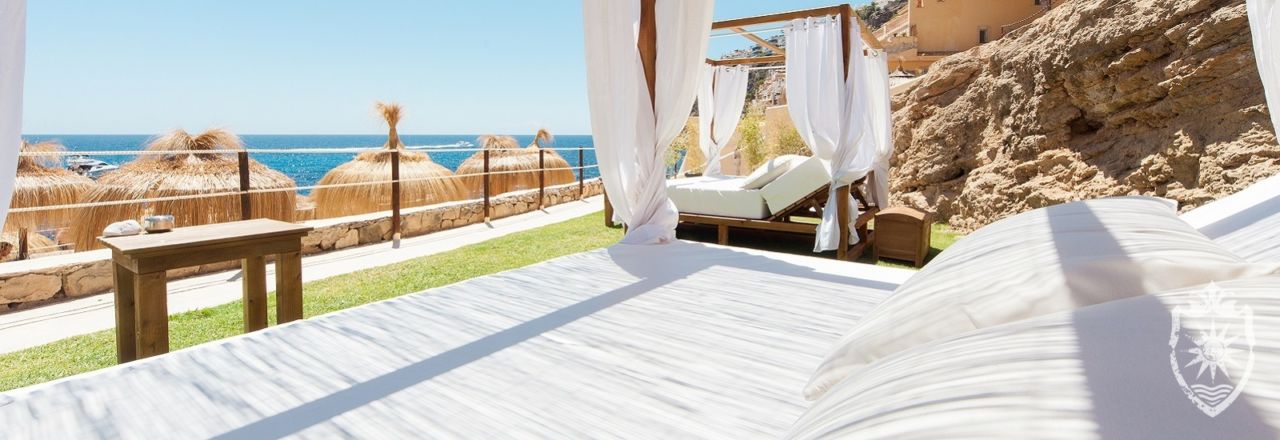 Few other places on the island enjoy such a wonderfully private atmosphere, with spectacular views over the bay and visibility only from the sea. The beach club is built in a graceful arc, both the bar and the restaurant are inserted among rocks which have formed with the movements and erosion of the sea.