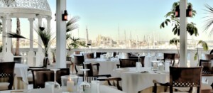 On the plaza behind Plaza Gomila is Bahía Mediterraneo, a lovely dining experience in a captivating location. Enjoy “top level haute cuisine”, in a luxurious 1930s environment and with stunning views over the yachts and sailing boats in the harbor. The setting is just extraordinary, could be taken out of the “great Gatsby” movie. High stucco ceilings, décor in gold and white, large drapes and parquet floors, the restaurant gives you the feeling of an old ballroom.
