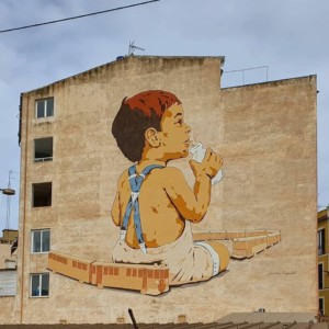 Mallorcan artist Joan Aguiló often reflects childhood memories from his summers in Mallorca. He is the artist behind the almost 100 m2 large wall in the Mercat del l’Olivar, which pays homage to Mallorcan farmers and fishermen who make it possible to consume local produce. Other famous creations are for example the large mural at the train station in Palma of a child with a train, the large wall at the Hotel Whala in Arenal of a typical mallorquin afternoon snack in the summer.