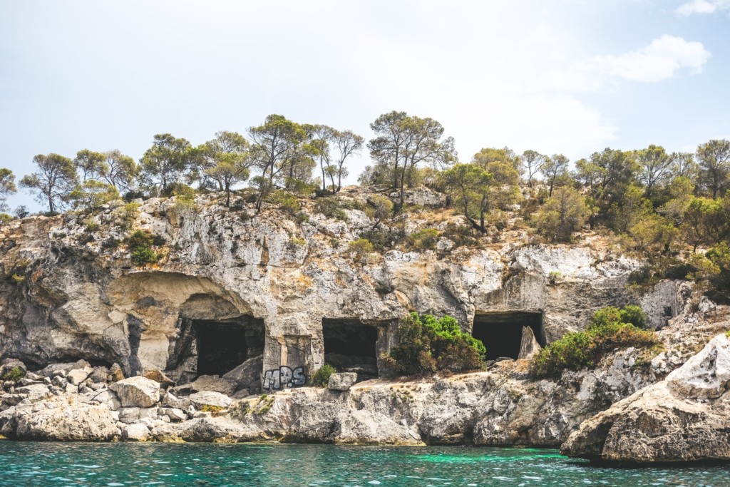 Portals Vells is a wonderful beach with lots to discover in the southwestern part of Mallorca not far from Magaluf. A plus is that it is child-friendly and provides shade in the early afternoon. Many boats choose to dock in the bay to spend the day at the beach or to have lunch at the nice restaurant at the water’s edge. There are several caves and cliffs nearby to discover.