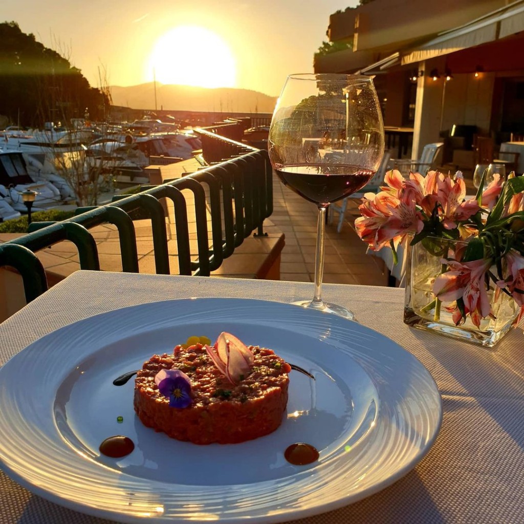 The port of Santa Ponsa “Club Nautico de Santa Ponsa” is one of the most picturesque ports in Mallorca. It is located in a natural inlet and has more than 500 berths. Here we find the restaurant 7Fuegos which serves creative Mediterranean food with excellent ingredients.