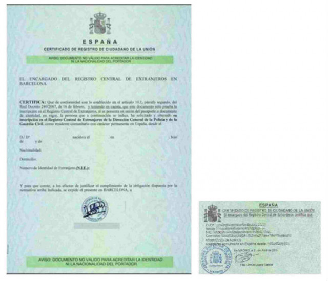 • Foreigner identification number and certificate (número de identificación de extranjeros NIE)