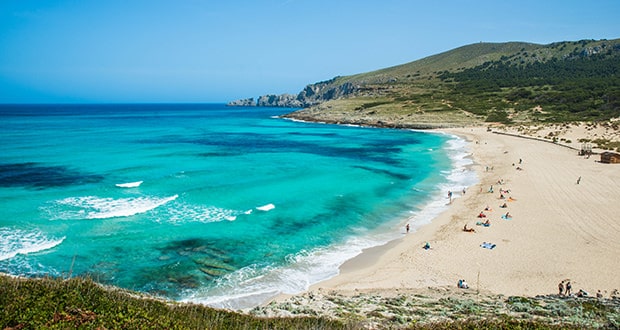 La Playa de Formentor se encuentra en el top 3 de las playas de Europa situada en el noreste de Mallorca. Es una playa de arena blanca de aproximadamente 1 kilómetro de largo y aguas de un azul verdoso, enmarcada por un paisaje boscoso y vistas a la Tramuntana. Los casi 300 días de sol al año y una temperatura media de 18,2 grados la convierten en una playa paradisíaca. La playa es muy popular entre los turistas que también se dirigen hacia el norte para disfrutar de las vistas panorámicas del Cap de Formentor, el punto más lejano de la isla que desemboca en un faro, y desde donde en ciertos días se puede divisar Menorca. El agua es poco profunda y rara vez hay olas aquí, lo que es agradable para los niños pequeños. Algunas zonas de la playa pueden ser rocosas, pero por lo demás son de fácil acceso. Gente de todas las edades disfruta de esta playa.